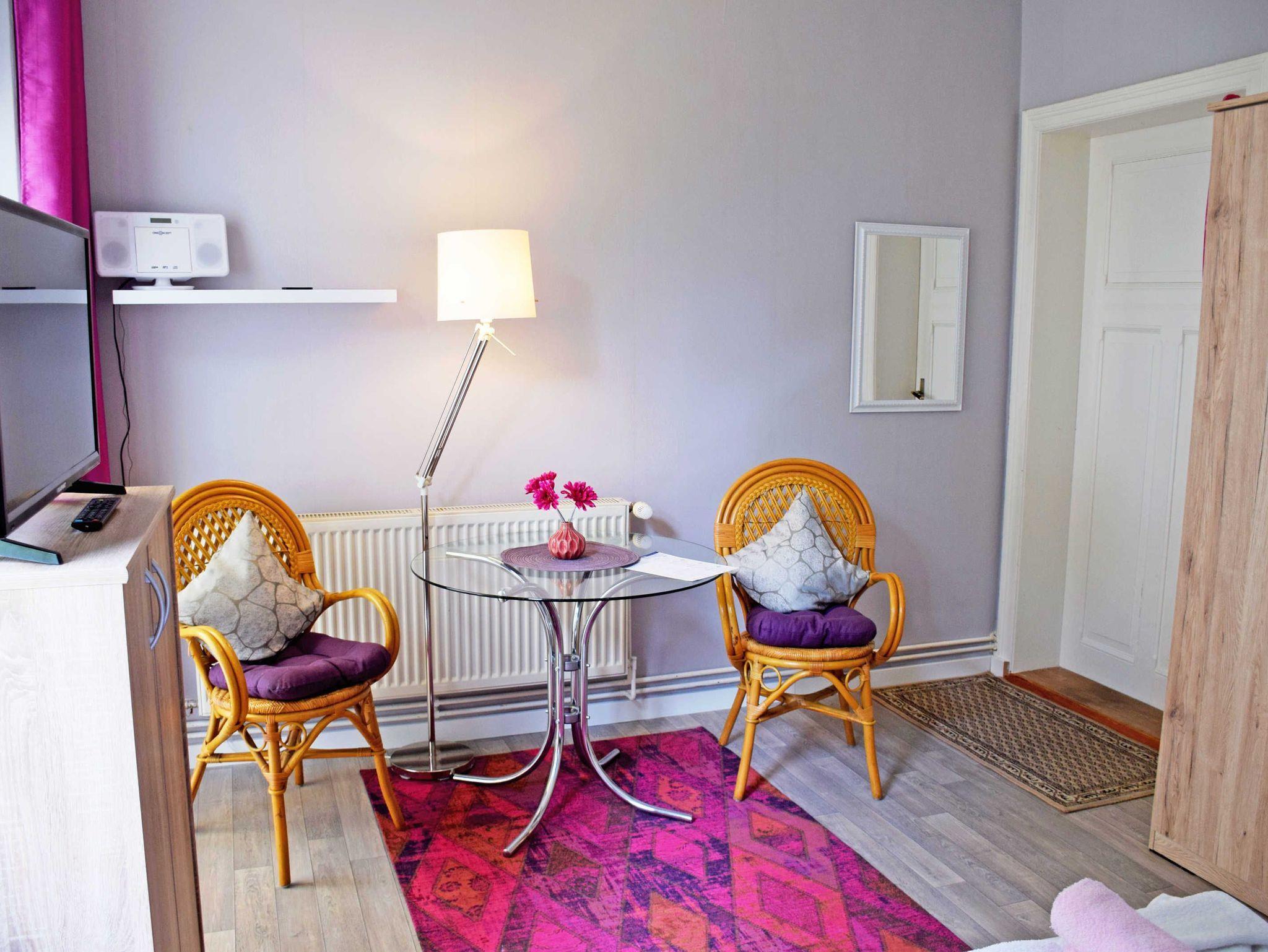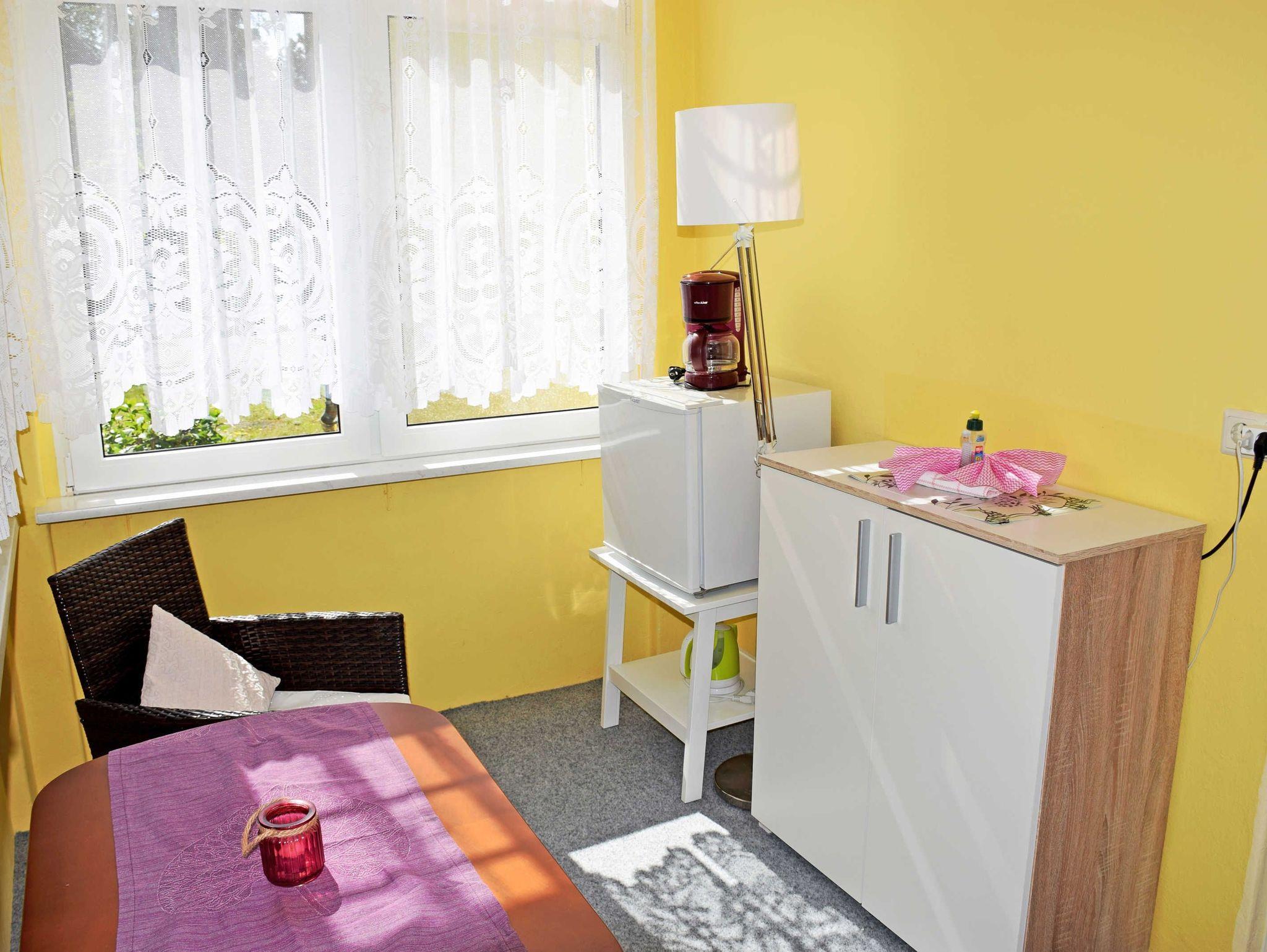 Die liebevoll eingerichteten Ferienzimmer bieten Platz für maximal 2 Erwachsene. Im kombinierten Wohn-/schlafraum befinden ein bequemes Doppelbett mit Nachttischen und Leselampen, ein Kleiderschrank, zwei Stühle und Tisch, sowie ein modernes Flachbild-TV-Gerät. WLAN steht Ihnen inklusive zur Verfügung.