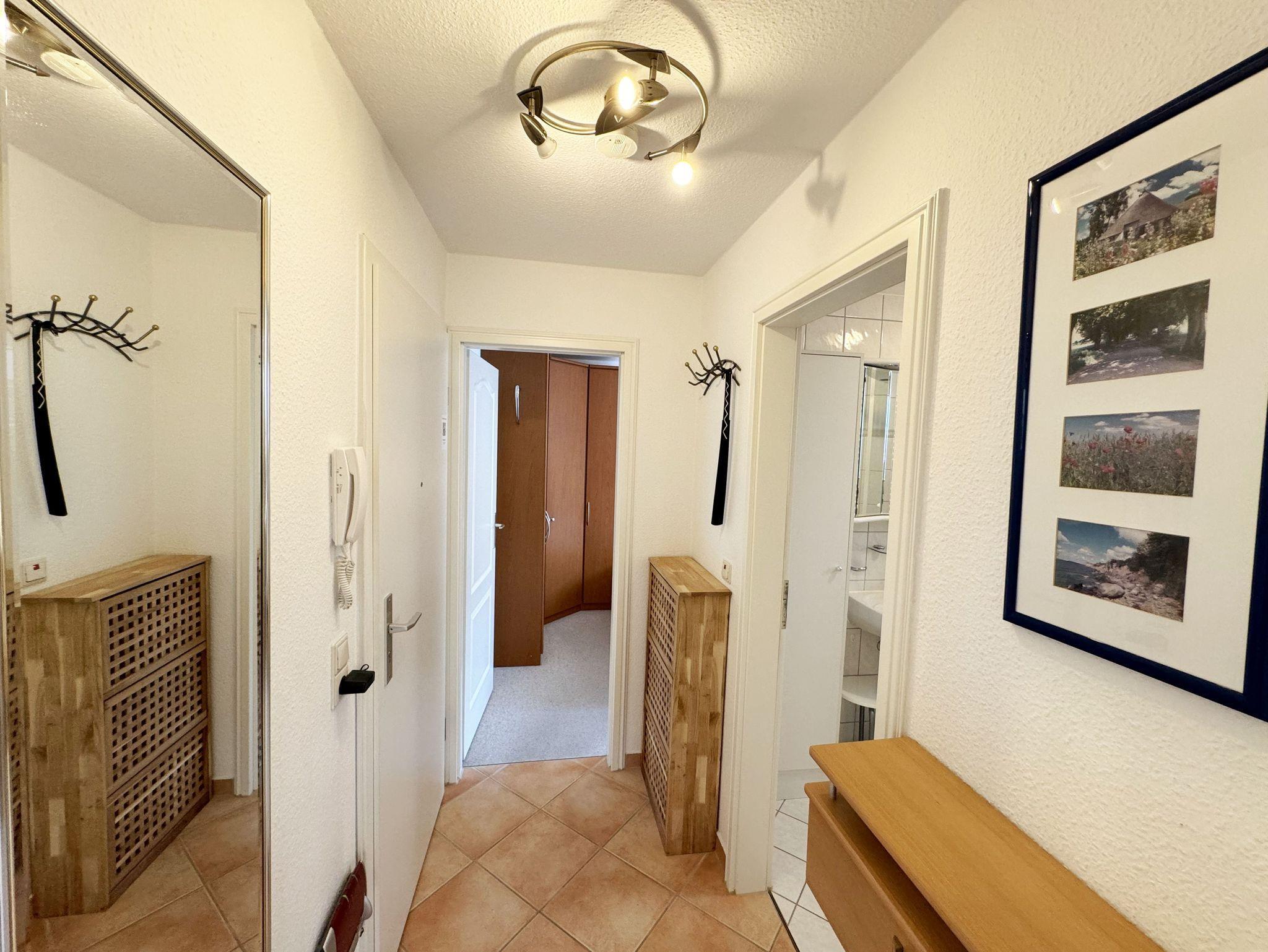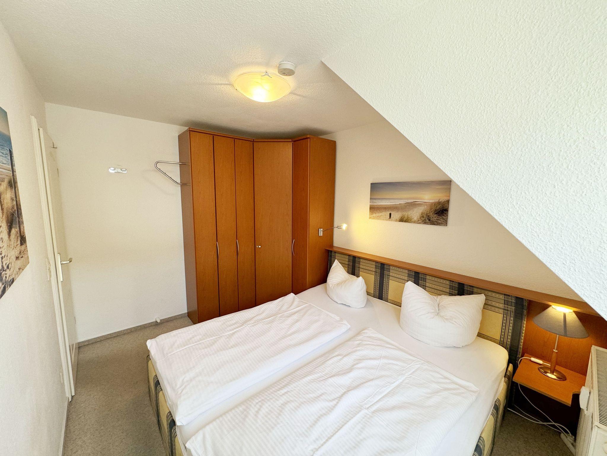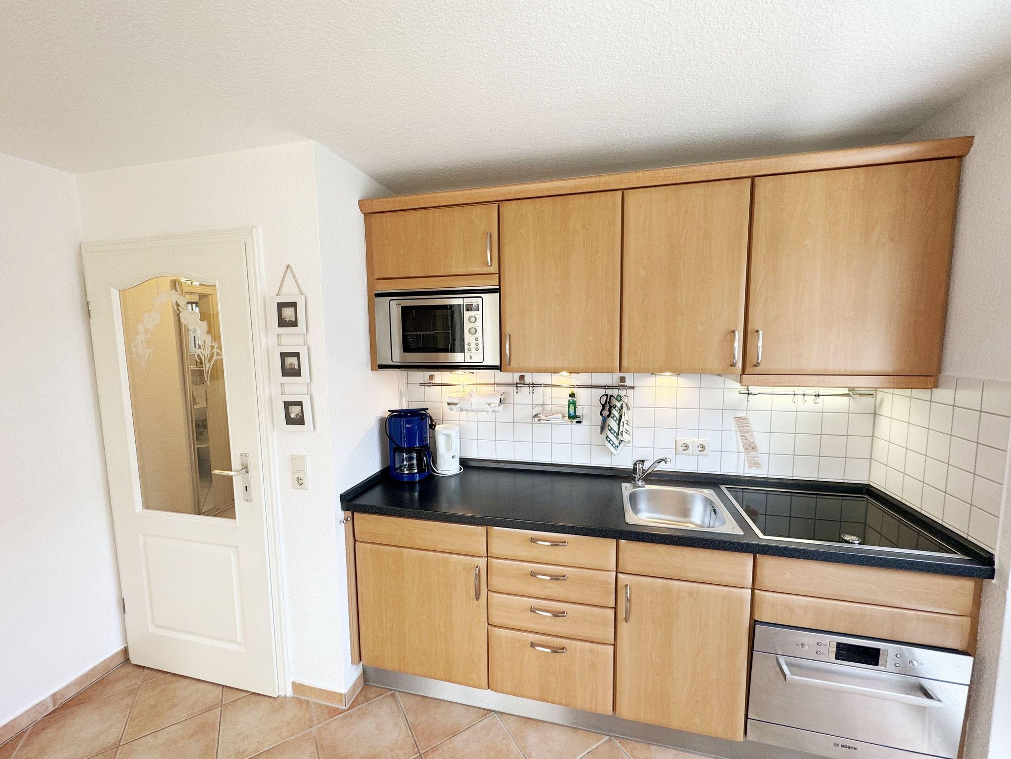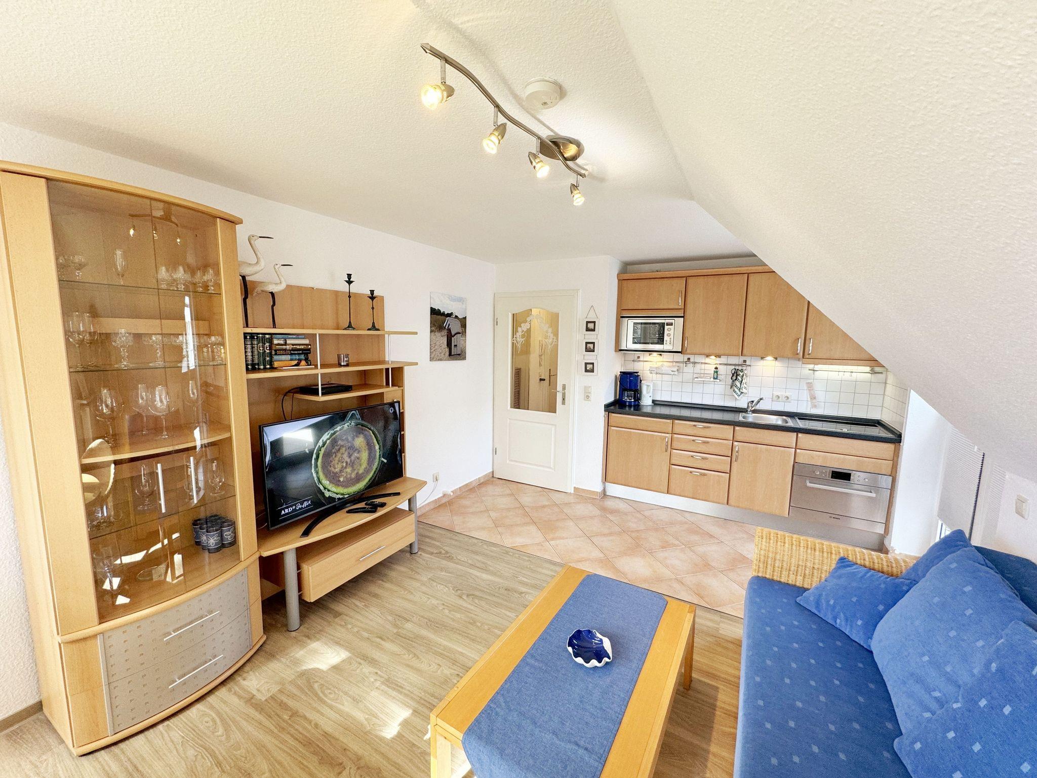 Die gut eingerichtete 2-Raumwohnung (Nichtraucher) Strandmöwe Whg. 08 befindet sich in der 2. Etage und bietet mit ca. 41 qm Platz für max. 2 Erwachsene und 1 Kleinkind bis 3 Jahre im Kinderreisebett. Der geräumige Wohn- und Essbereich ist mit einer Couch, Couchtisch, Leselampe sowie einen TV-Board mit Smart-TV, Blue Ray-Player und Mini-Stereo-Anlage ausgestattet. Auch auf einen Internetzugang WLAN brauchen Sie im Urlaub nicht verzichten. Dieser ist für Sie inklusive. Der angrenzende Essbereich passt sich dem Raum an. Das helle Schlafzimmer verfügt über ein Doppelbett mit Einzelmatratzen (2 x 0,90 m x 2,00 m) und verstellbaren Lattenrosten, Nachttischablage und einem Kleiderschrank. Für einen angenehmen Schlaf sorgen Verdunklungsplissees. Die Küchenzeile enthält einen Kühlschrank mit Eisfach, Induktionsfeld, Geschirrspüler, Mikrowelle mit Grillfunktion, Wasserkocher, Kaffeemaschine, Toaster und diverse Küchenutensilien. Das Bad rundet mit einem Waschtisch, WC, Fön und Dusche den Wohnkomfort ab. Der Wohn- und Schlafbereich wird durch ein Insektenschutzgitter abgerundet. Den bestuhlten und großzügigen Balkon (Süd/Ost) erreichen Sie über den Wohnbereich. Vom Tiefgaragenstellplatz (Nr. 08, Einfahrtshöhe 1,90m) gelangen Sie mit dem Aufzug bequem in die 2. Etage. Eine Fahrradabstellmöglichkeit befindet sich in der Tiefgarage im wohnungseigenen Keller. Haustiere sind in der Wohnung nicht erlaubt. Die Erstausstattung eines Wäschepaketes (komplette Bettwäsche, 1 Duschhandtuch, 1 kleines Handtuch) können Sie bis 14 Tage vor Anreise gegen einen Aufpreis dazu buchen oder durch eigene ergänzen. Ab 2 gebuchten Paketen erhalten Sie einmalig 1 Geschirrhandtuch und 1 Duschvorleger dazu.