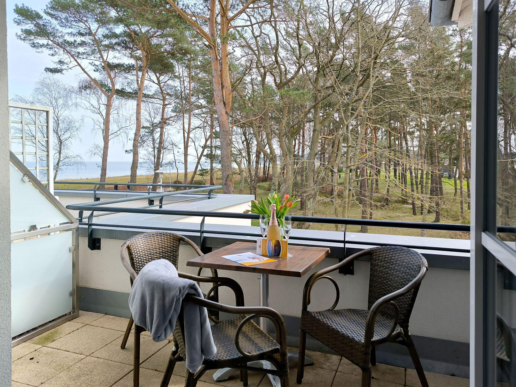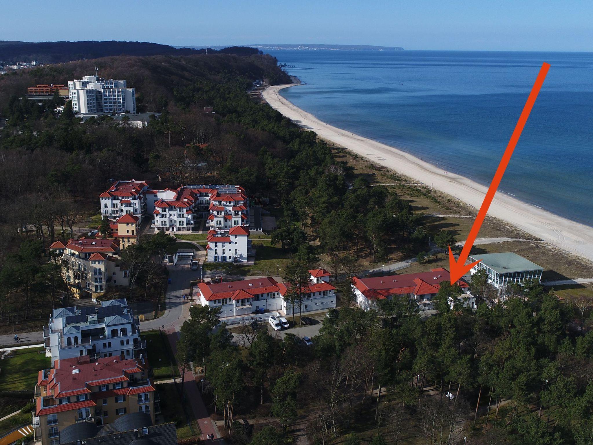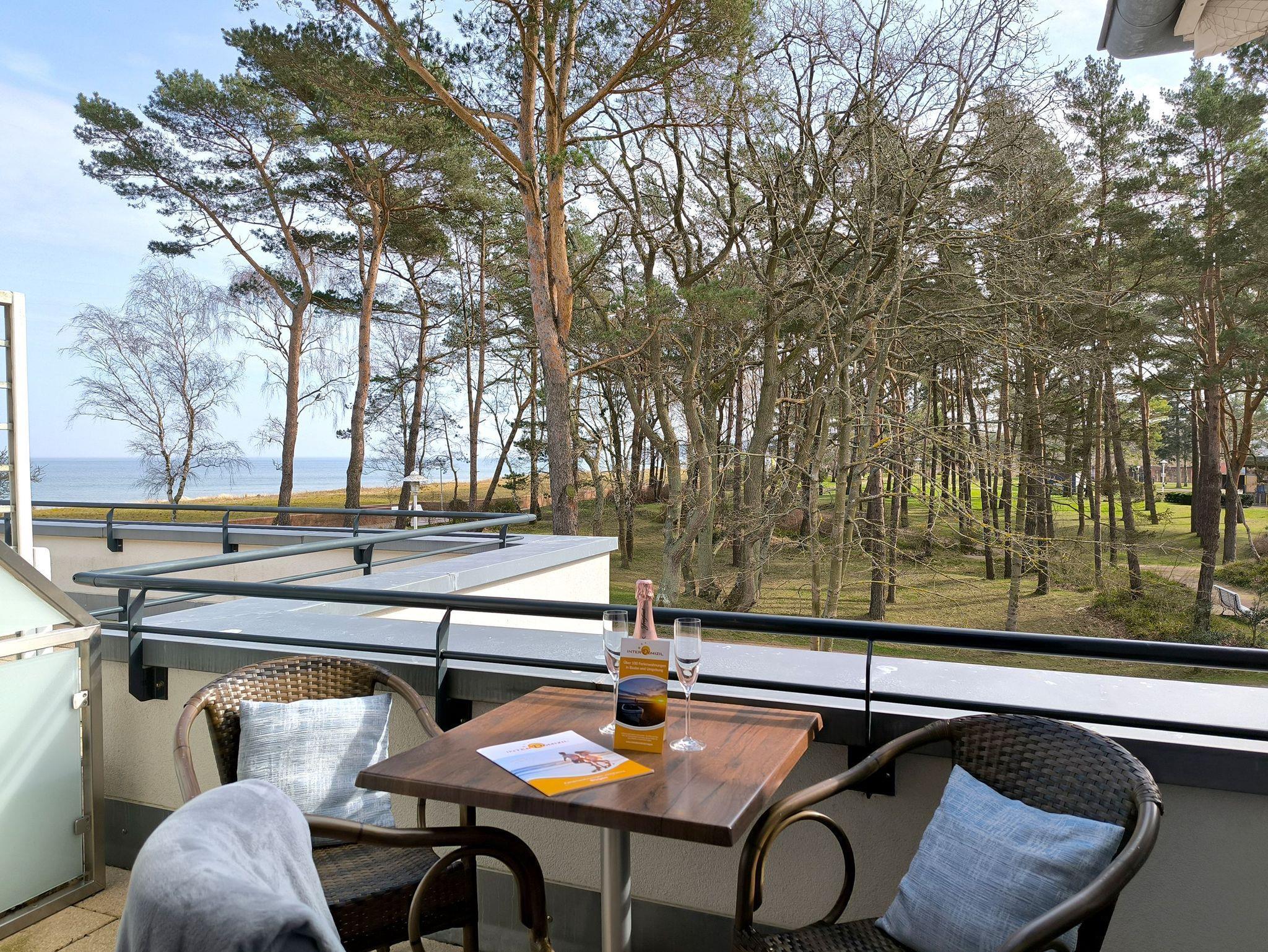 2 Zimmer Ferienwohnung in Baabe für 2-4 Personen mit tollen Meerblick für bis zu 4 Personen in einer kleinen Residenz direkt am Meer mit nur 13 Wohneinheiten. Alle Wohneinheiten haben Balkon und einen Tiefgaragenstellplatz.