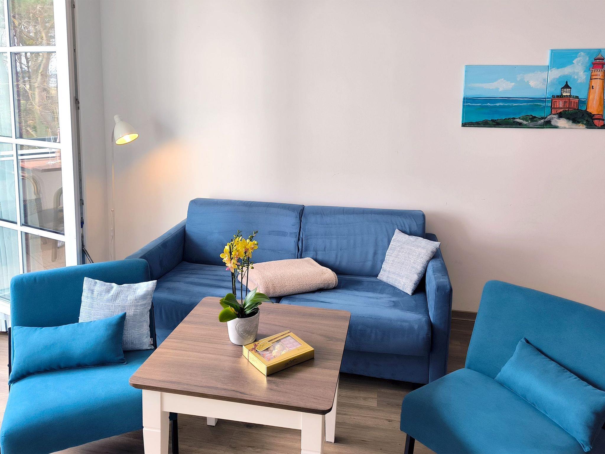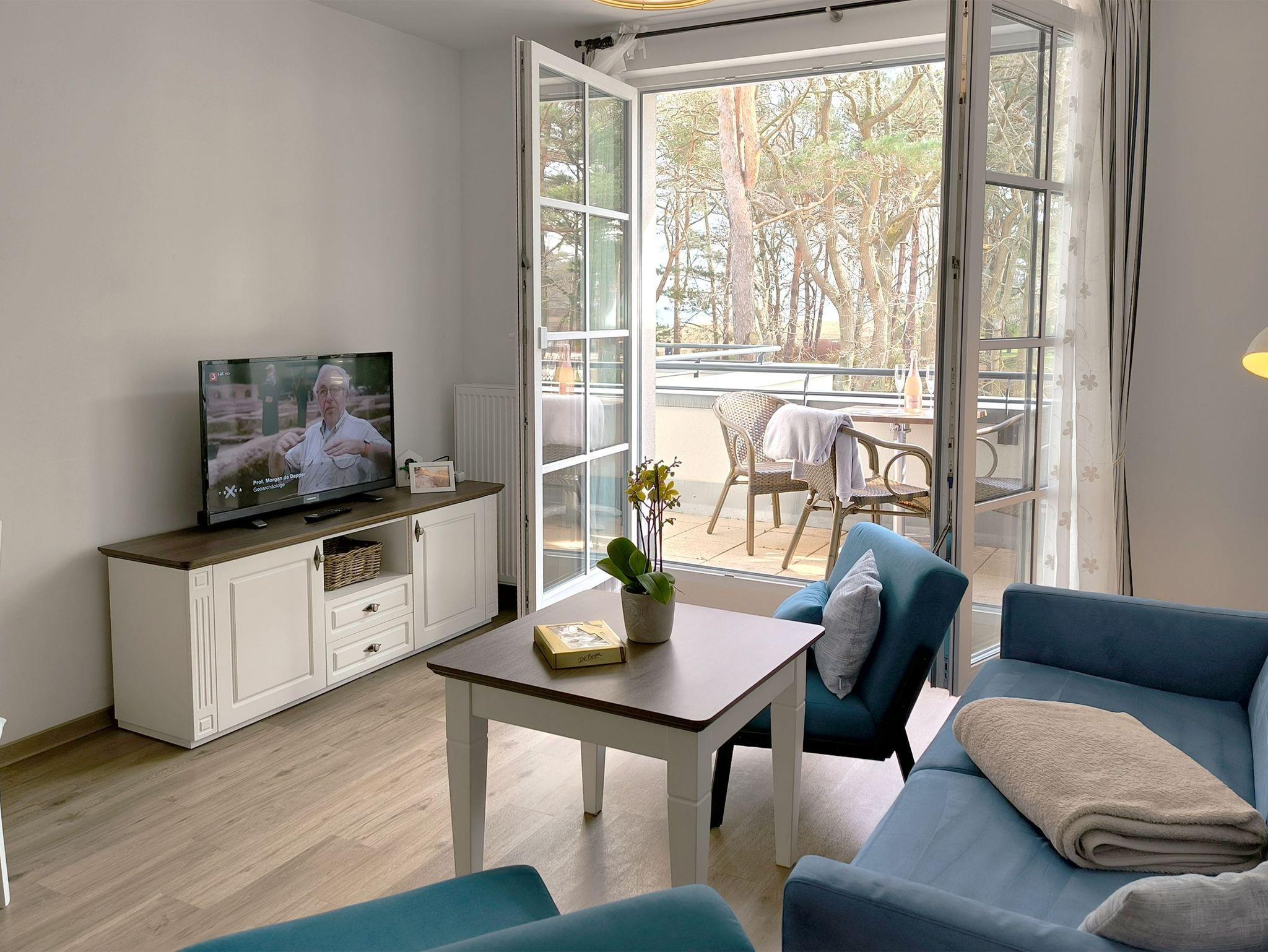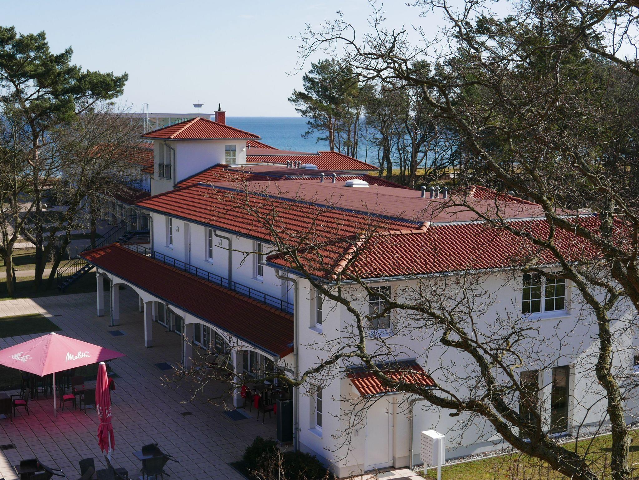 2 Zimmer Ferienwohnung in Baabe für 2-4 Personen mit tollen Meerblick für bis zu 4 Personen in einer kleinen Residenz direkt am Meer mit nur 13 Wohneinheiten. Alle Wohneinheiten haben Balkon und einen Tiefgaragenstellplatz.