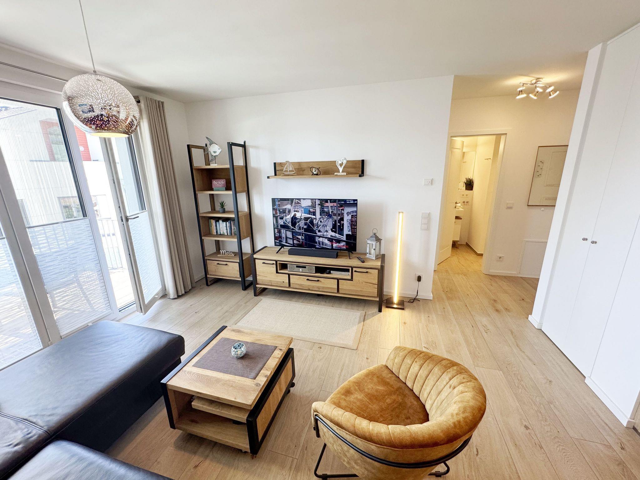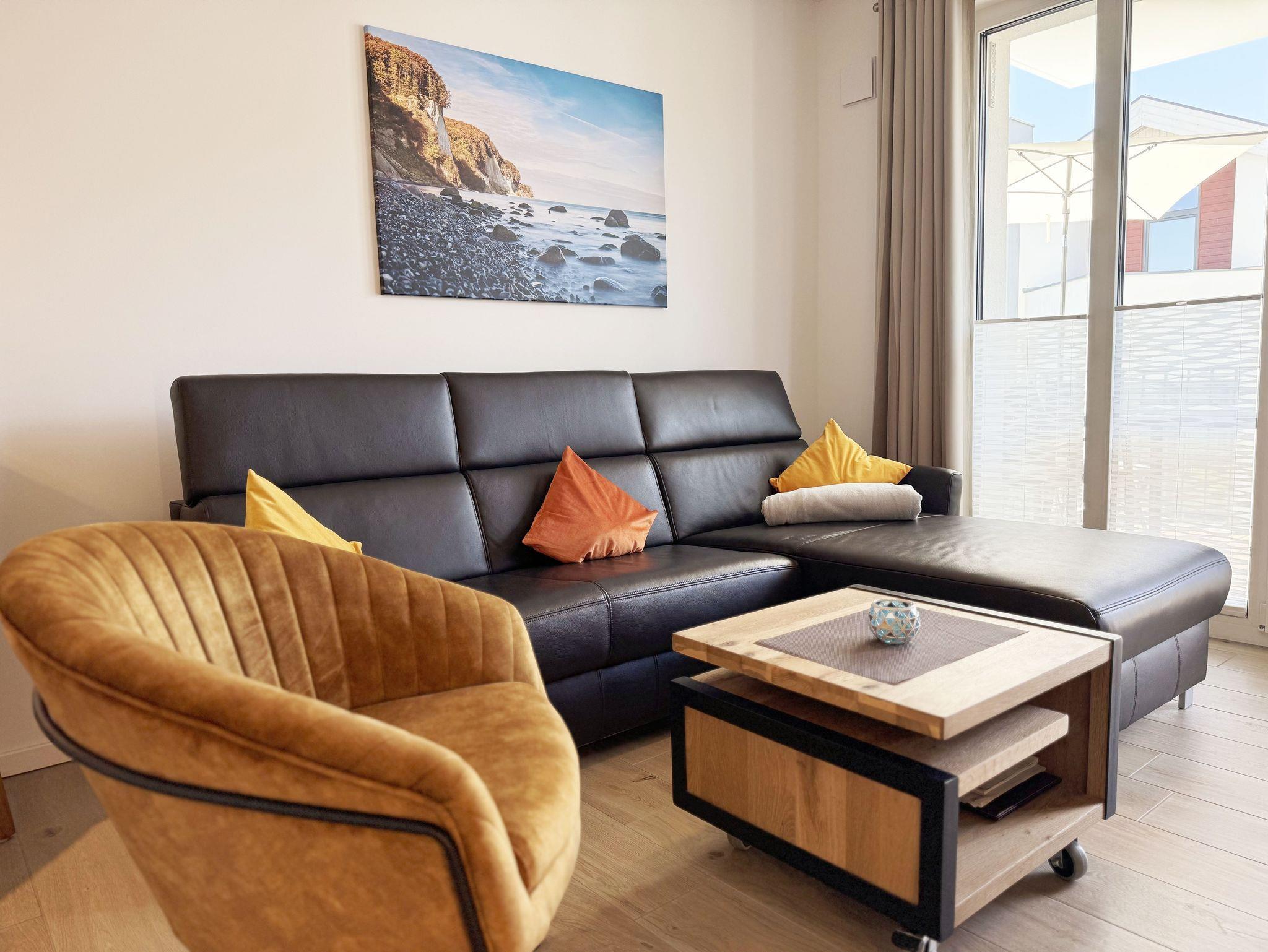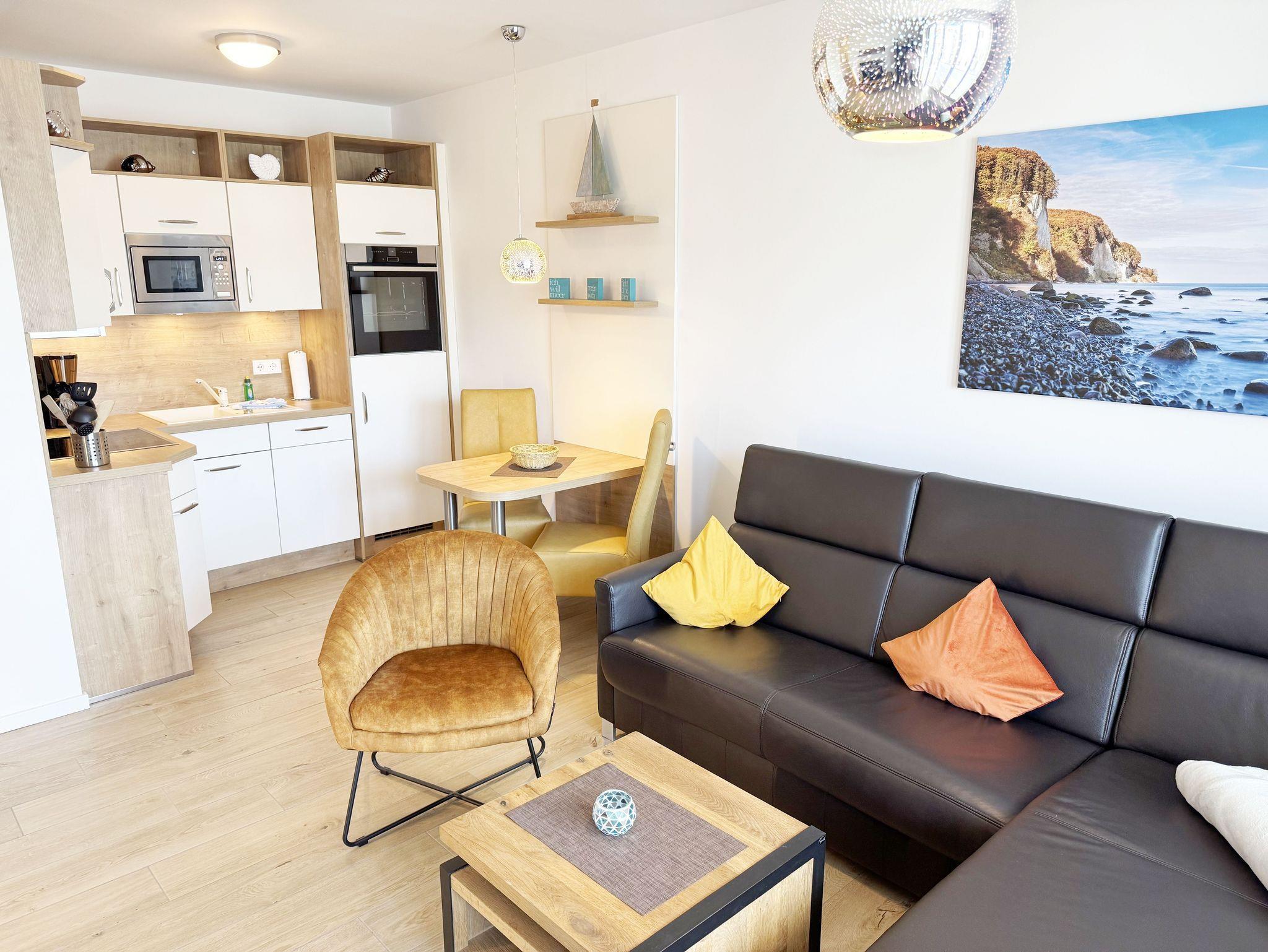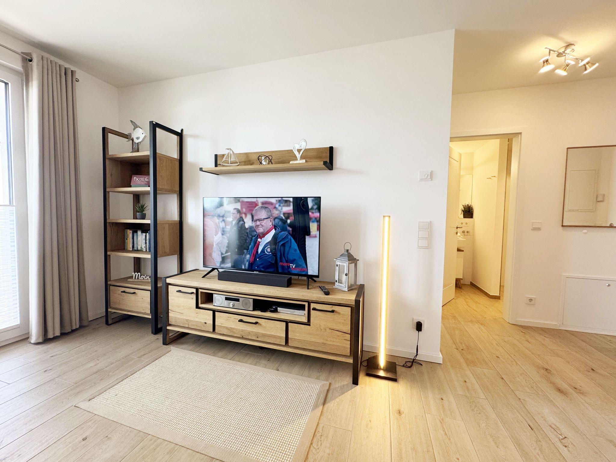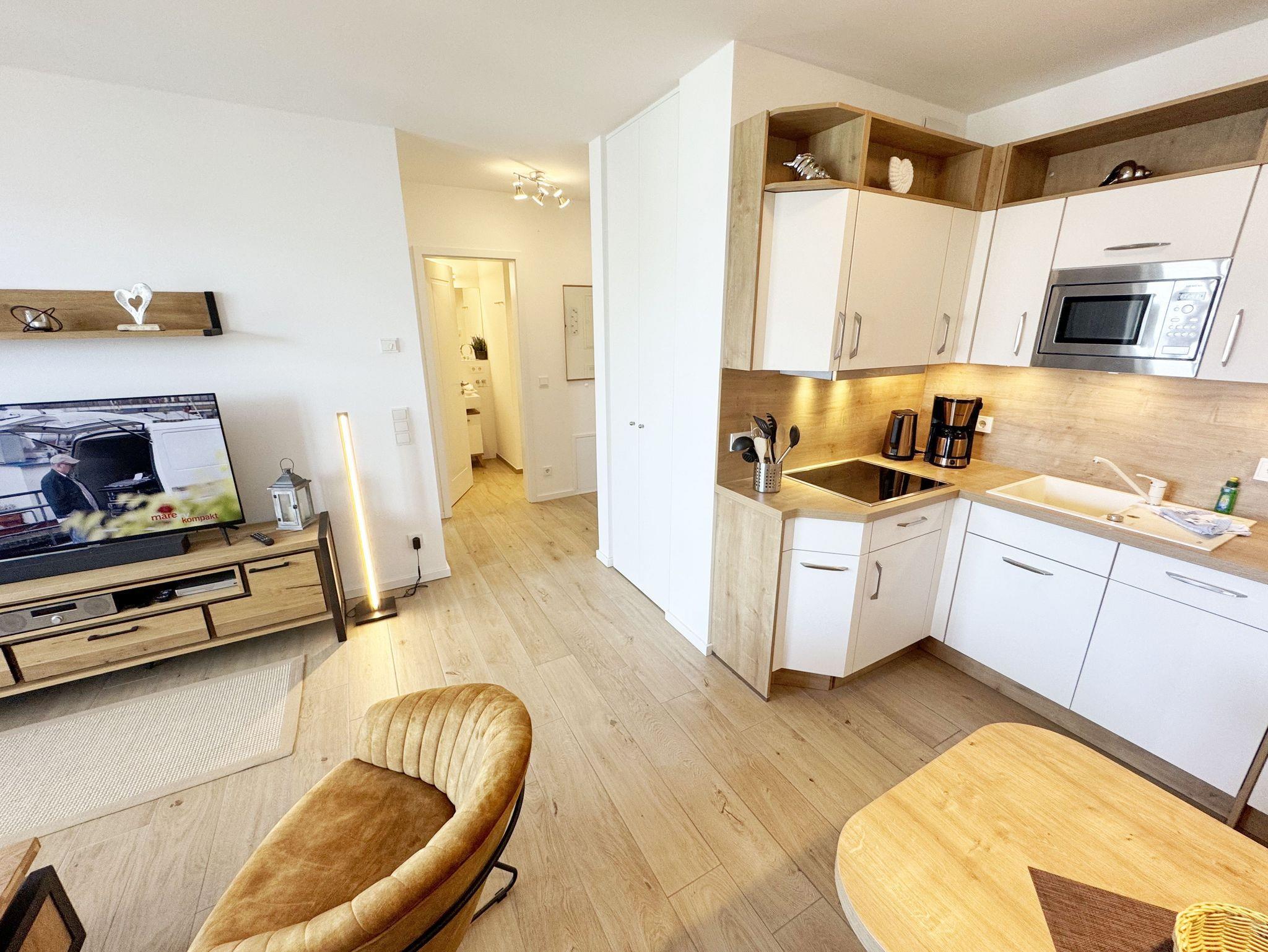 Die lichtdurchflutete Zwei-Raum-Komfort-Wohnung befindet sich mit Ihren ca. 42 m² in der 2.Etage der Villa Strandläufer und kann bequem mit dem Fahrstuhl erreicht werden. Die moderne und freundliche Nichtraucherferienwohnung ?Meerjungfrau? ist für max. 2 Personen ausgelegt. Im Wohnbereich befindet sich eine gemütliche Eck-Couch mit Couchtisch, einem Sessel, eine Stehlampe sowie einem Regal und Lowboard. Zum technischen Bereich gehören ein Smart-TV, ein Blu-Ray-Player, ein interfähiges CD-Radio sowie eine WLAN-Verbindung. Auch eine kleine Auswahl an Gesellschaftsspielen und an Literatur steht für Sie bereit. Der Küchenbereich schließt sich hier mit der modern und gut ausgestatteten Küchenzeile an. Zur hochwertigen Ausstattung gehören ein Geschirrspüler, ein autarkes Elektro-Kochfeld mit 4-Zonenceranfeld, einer Spüle, einem Kühlschrank mit Eisfach, einem Kompaktbackofen, einer Mikrowelle, einer Dunstabzugshaube, einen Mixer, einen Eierkocher, einem Wasserkocher, einem Toaster, einer Kaffeemaschine mit Thermoskanne, einer Tassimo Pad-Kaffeemaschine sowie ein Essplatz. Vom Balkon, welchen Sie vom Wohnbereich aus erreichen, haben Sie einen entspannten Ausblick auf die Kiefernbestände und seitlich auf die Ostsee. Auf Grund der Süd/West Ausrichtung können Sie die Sonne bis zum späten Nachmittag wunderbar genießen bzw. den Tag gemütlich ausklingen lassen. Das gemütliche Schlafzimmer verfügt über ein Boxspringbett (1,80m x 2,00m), mit 2 verschiedenen Härtegraden (2/3), Nachttischablagen mit Beleuchtung, ein Smart-TV und ein Kleiderschrank mit Spiegelfront. Für einen ruhigen und entspannten Schlaf sorgen entsprechende Verdunklungsvorhänge und Plissees sowie Insektenschutzgitter, die auch im Wohnbereich vorhanden sind. Das innenliegende Bad wird durch eine ebenerdige Regendusche, einen Waschtisch mit Spiegel, ein WC, ein Fön, einen Kosmetikspiegel und einem Handtuchtrockner abgerundet. Zusätzlich verfügt die Wohnung über einen kleinen Abstellraum im Eingangsbereich mit diversen Reinigungsutensilien. Zu dem Villen-Ensembles gehören ein Wellnessbereich mit einer Gemeinschaftssauna, ein Waschraum mit Waschmaschinen, Trocknern und Bügelbrett, die gegen Gebühr bei Bedarf gern von Ihnen genutzt werden können. Haustiere sind nicht erlaubt. Ein Außenstellplatz Nr. 36 ist für Sie inklusive. Ihre geliehenen der mitgebrachten Fahrräder können Sie an Fahrradständer im Außenbereich anschießen. Die Erstausstattung eines Wäschepaketes (komplette Bettwäsche, 1 Duschhandtuch, 2 kleine Handtücher) können Sie bis 14 Tage vor Anreise gegen einen Aufpreis dazu buchen oder durch eigene ergänzen. Ab 2 gebuchten Paketen erhalten Sie einmalig 1 Geschirrhandtuch und 1 Duschvorleger hinzu. Wir würden uns freuen, Sie in der Ferienwohnung ?Meerjungfrau? in der Villa Standläufer begrüßen zu dürfen.