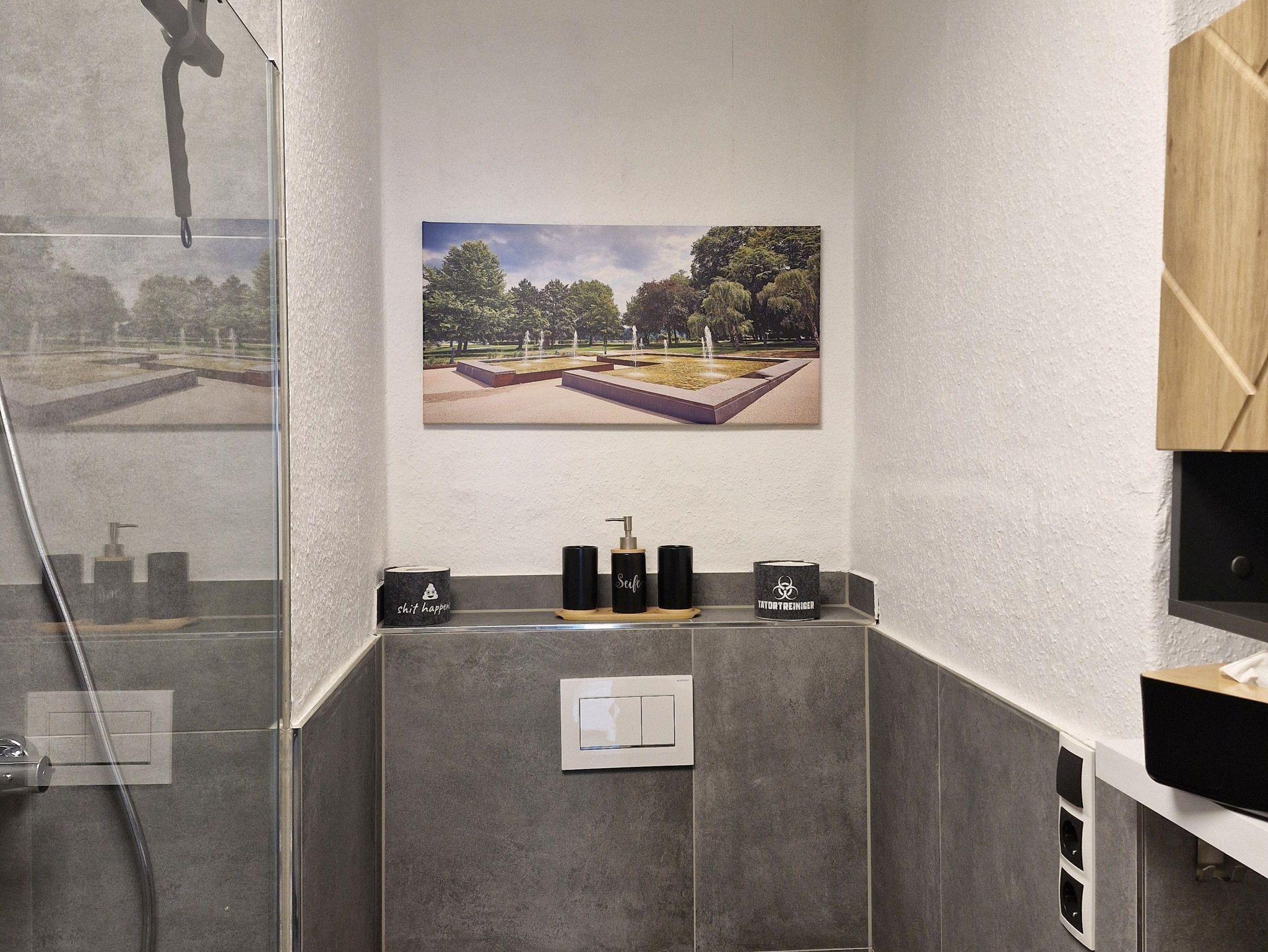 Die Wohnung befindet sich in einer ruhigen Seitenstraße, nur 100 Meter vom Rhein entfernt – ideal für Spaziergänge, Radtouren oder einfach zum Verweilen am Wasser. Trotz der naturnahen Lage erreichen Sie Einkaufsmöglichkeiten, Gastronomie und öffentliche Verkehrsmittel bequem zu Fuß.