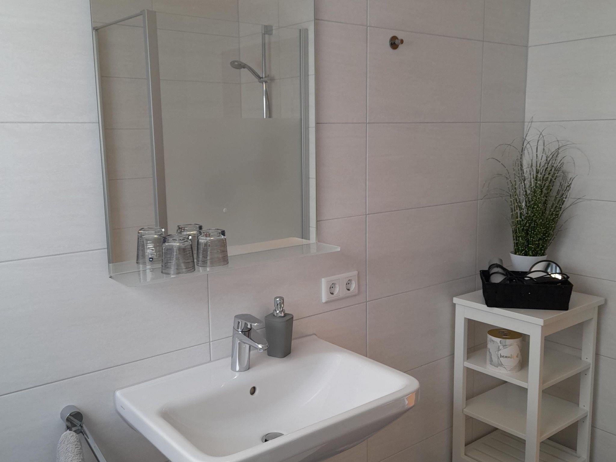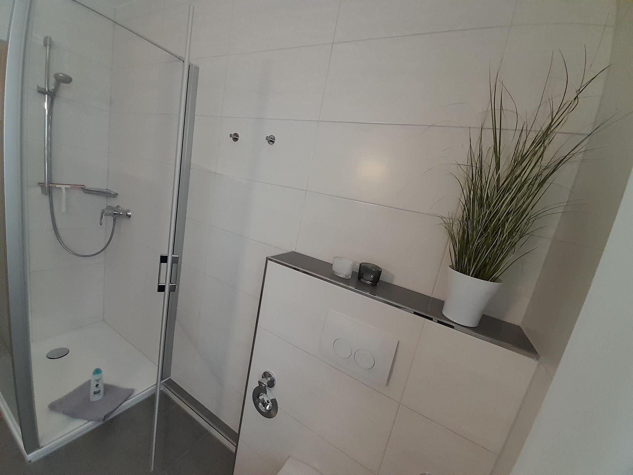 Ferienwohnung und Gästezimmer Iburgblick, Appartement/Fewo, Dusche, WC, Balkon