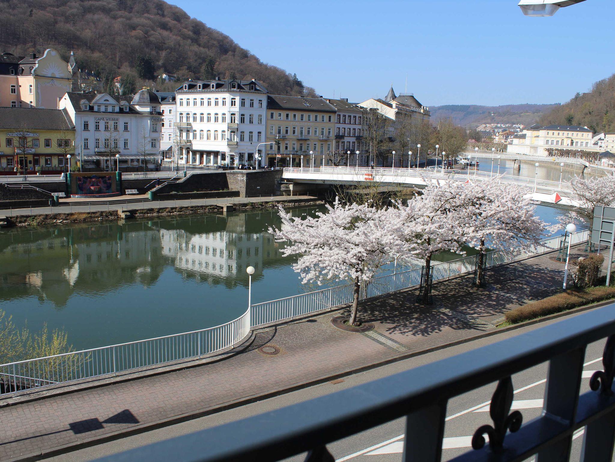 Das Logierhaus Stadt Lyon ist etwa 1830 gebaut worden und war eines von vielen Logierhäusern in Bad Ems für den europäischen Wohlstandstourismus zur damaligen Kaiserzeit. Ärzte aus Paris, Adlige aus St. Petersburg und jeder, der zum europäischen Establishment dazugehören wollte, verbrachten hier einige Wochen des Jahres, um gesehen zu werden und etwas für die Gesundheit zu tun. Zwischen 2014 und 2018 wurde das Gebäude authentisch restauriert und vermittelt jetzt unseren Gästen aus aller Welt den Glanz der Kaiserzeit verbunden mit modernem Komfort. im Zentrum von Bad Ems. Im Apartment 'Le Parterre' haben wir eine behindertengerechte Wohnung mit Schlafzimmer, Bad und Wohnzimmer eingerichtet und eigenem Zugang zum Felsenhof. Das Apartment 'Le Belle Etage' im 1. Obergeschoß und 'Le Deuxième Etage' im 2. Obergeschoß haben jeweils einen Balkon zum Fluß mit Aussicht auf das prächtige Kurzentrum und bieten mit 2 separaten Schlafzimmer, einem Wohnzimmer mit Küchenzeile und einem Luxusbad ausreichend Platz für Kleingruppen und Reisende mit Personal. Im 3. Obergeschoß befindet sich das Apartment 'Au Ciel' mit 1 Schlafzimmer, Wohnzimmer mit Loggia zum Fluß, Luxusbadezimmer und eigenem Zugang zur Felsendachterrasse mit Jacuzzi, Schaukelliege und Grilltisch - ein Aufzug bringt Sie in alle Obergeschosse. Für alle Apartments besteht die Möglichkeit, eine mitreisende Begleitperson in einem 1-Zi Apartment 'Le Service' im 3. Obergeschoß separat unterzubringen - wie zu Kaiser's Zeiten.