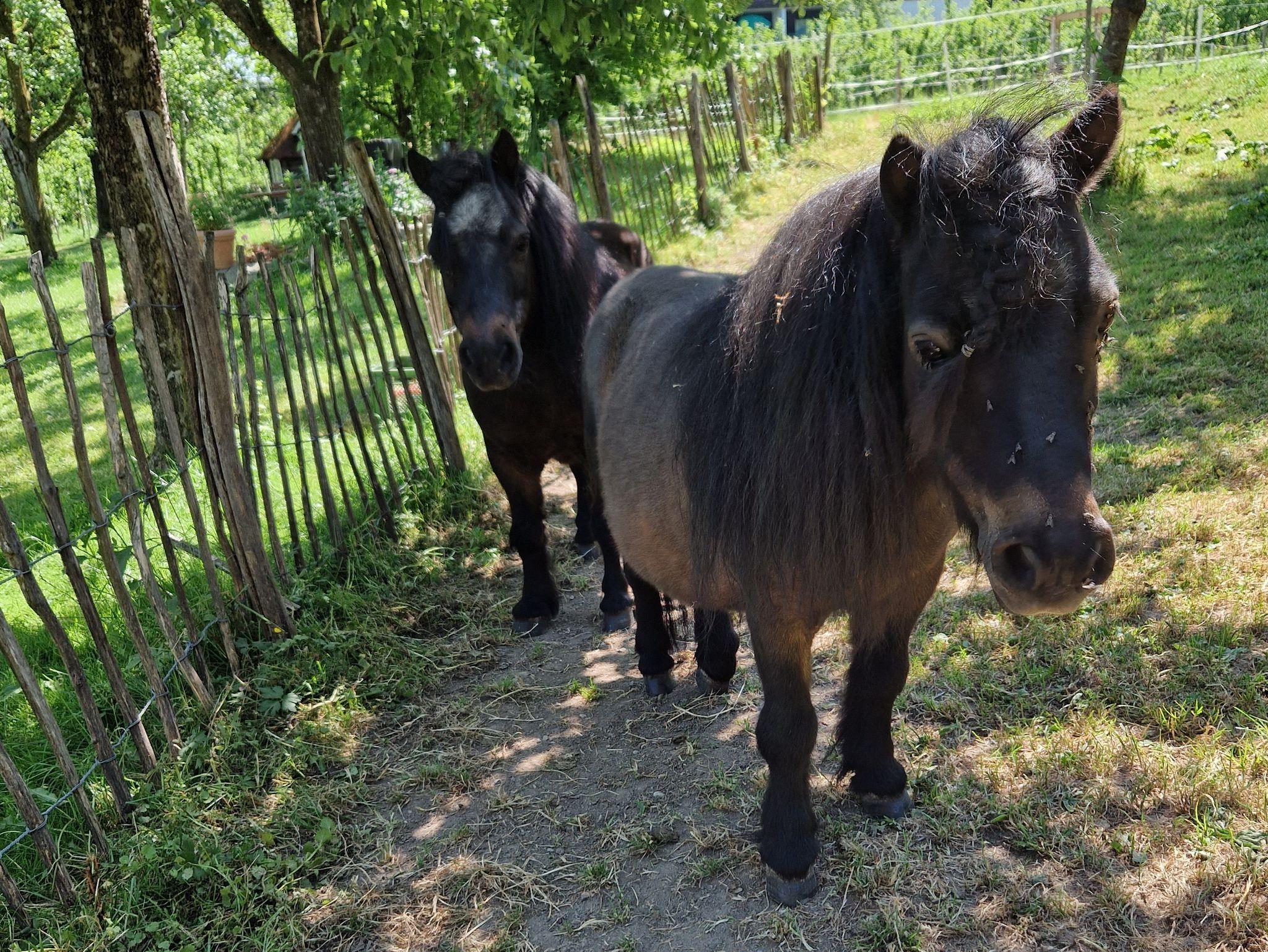 Für unsere kleinen Gäste sind unsere Mini Shettys, Hasen und Hühner sowie Hofkatzen zu bestaunen und natürlich zu streicheln.