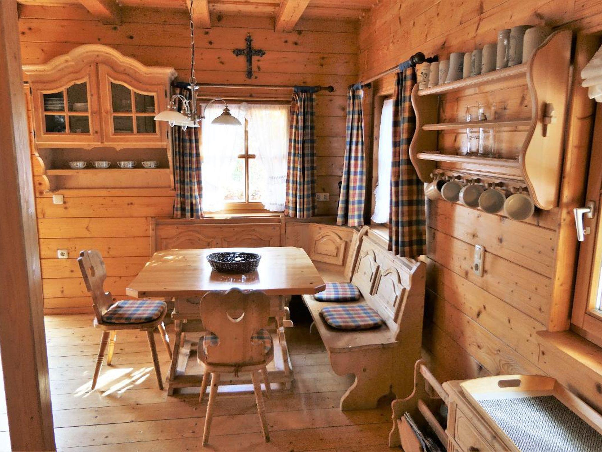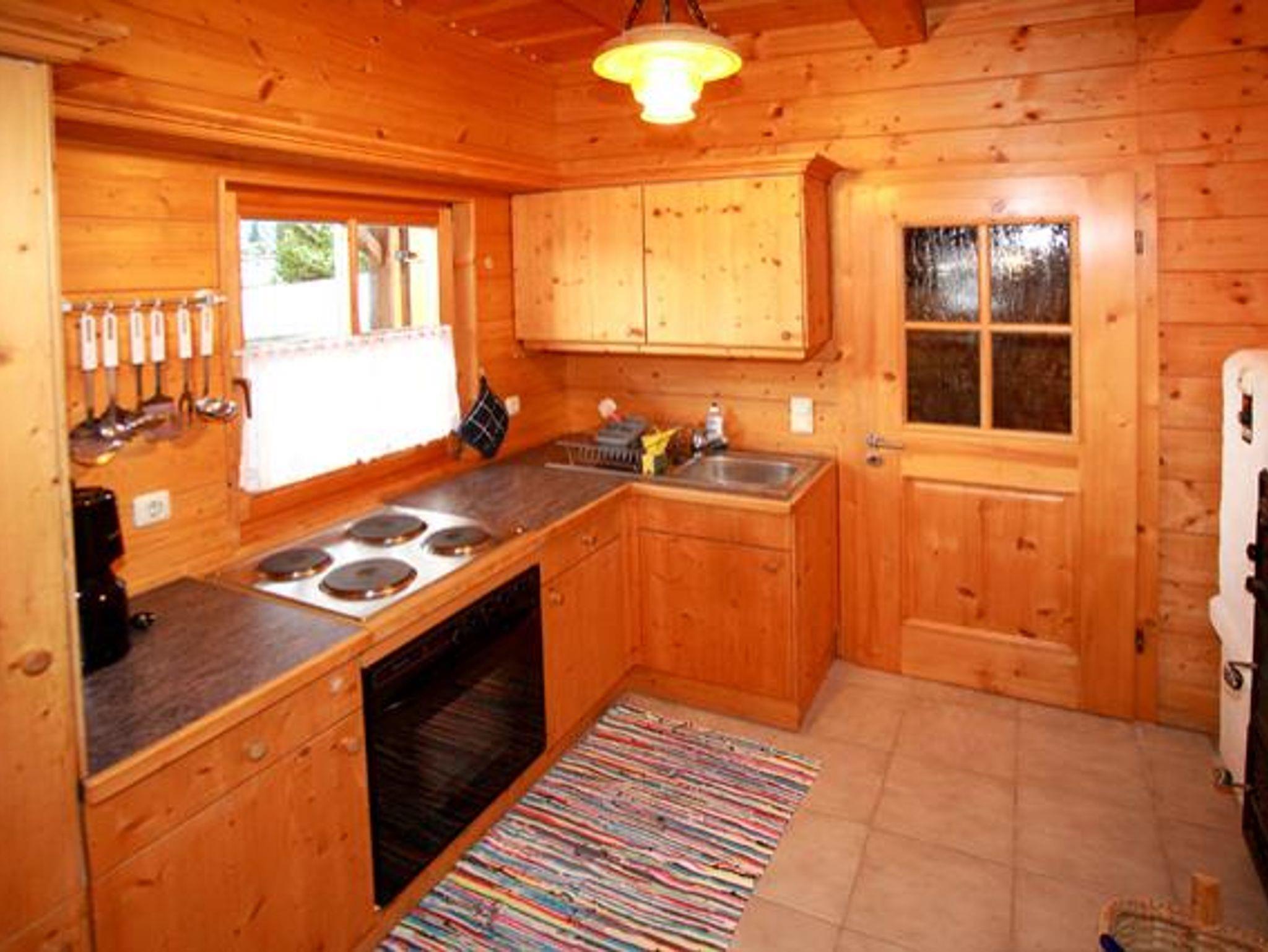 Das Holzhaus verfügt über eine voll eingerichtete Küche, eine