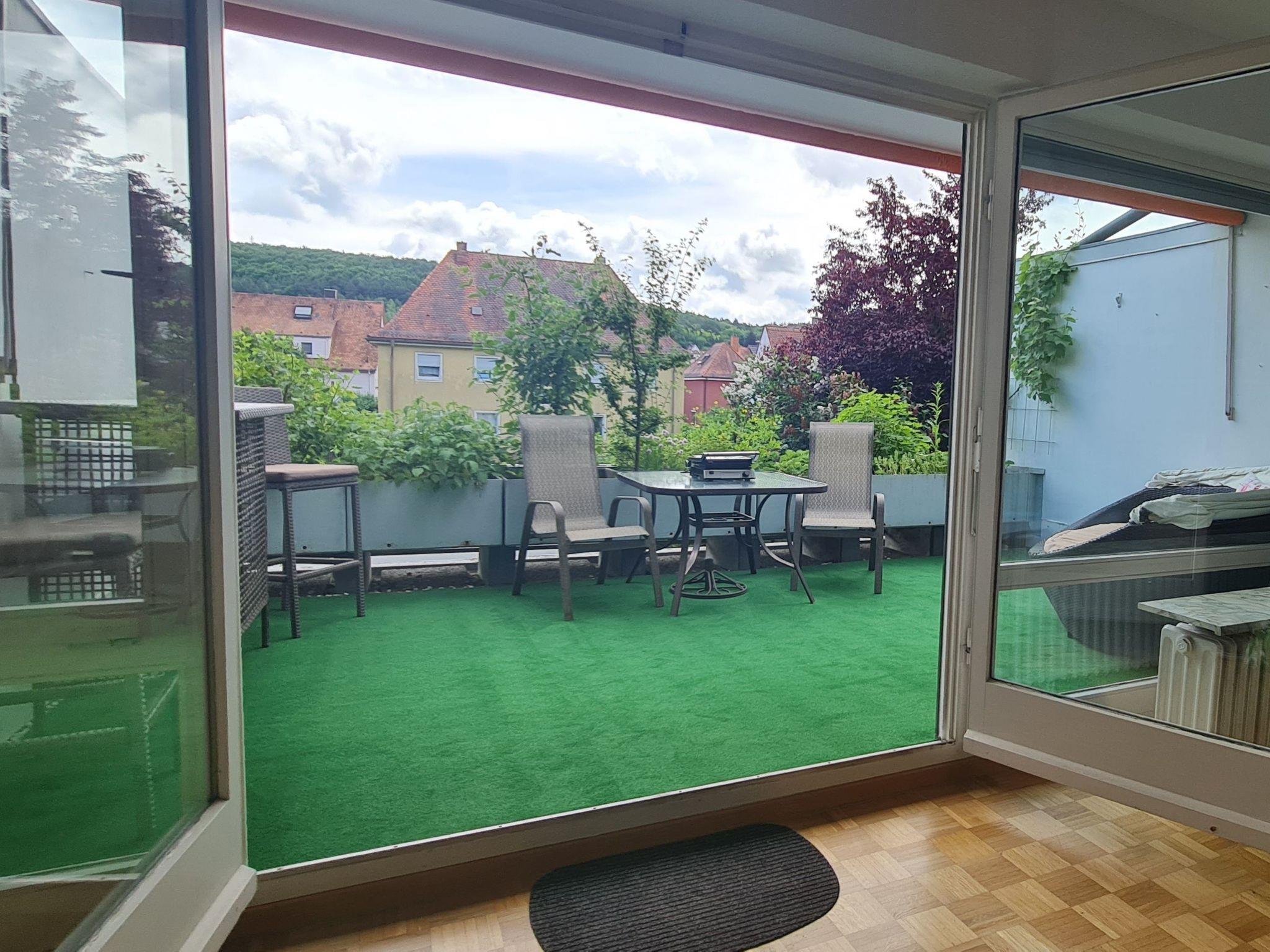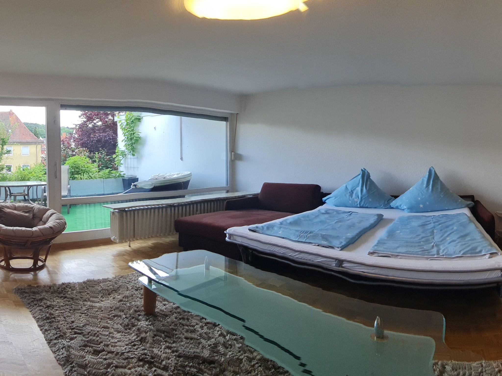 The apartment is located on the first floor and is accessed via a few steps. You can reach Bad Kissingen's town center on foot in about 10 minutes.