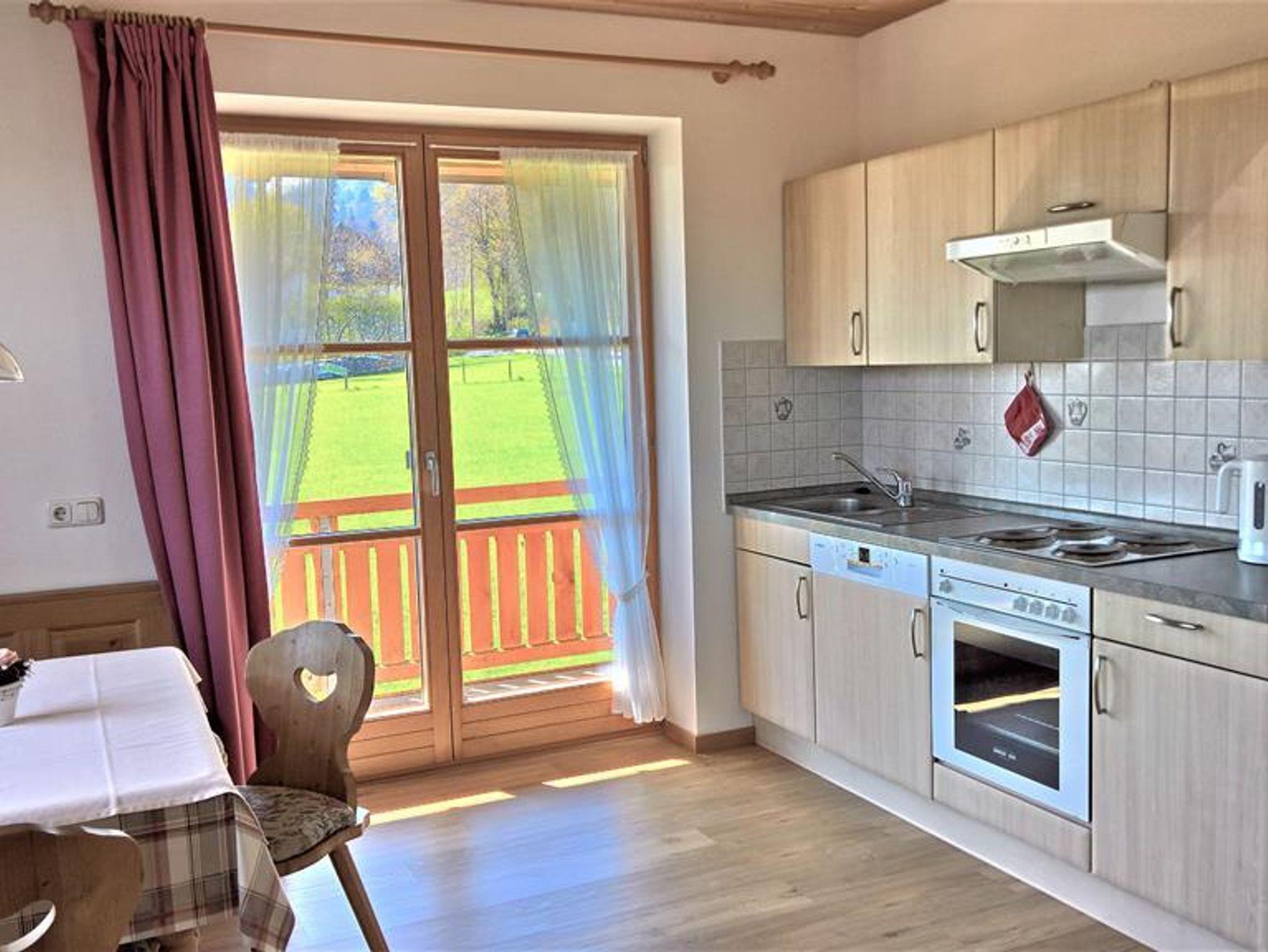 Stilvoll eingerichtete Komfort-Ferienwohnungen für 2-4 Personen. Wohnzimmer mit gemütlicher Sitzecke, Flachbild-Fernseher, komplett eingerichtete Küche mit Herd und Spülmaschine,Eckbank, Schlafzimmer, Dusche/WC, Radio, möblierter Balkon oder-Süd-Terrasse mit wunderbarer Aussicht auf die Berge und die freie Wiese vor dem Haus. Kostenloses WLAN, Große Liegewiese, Parkplätze am Haus