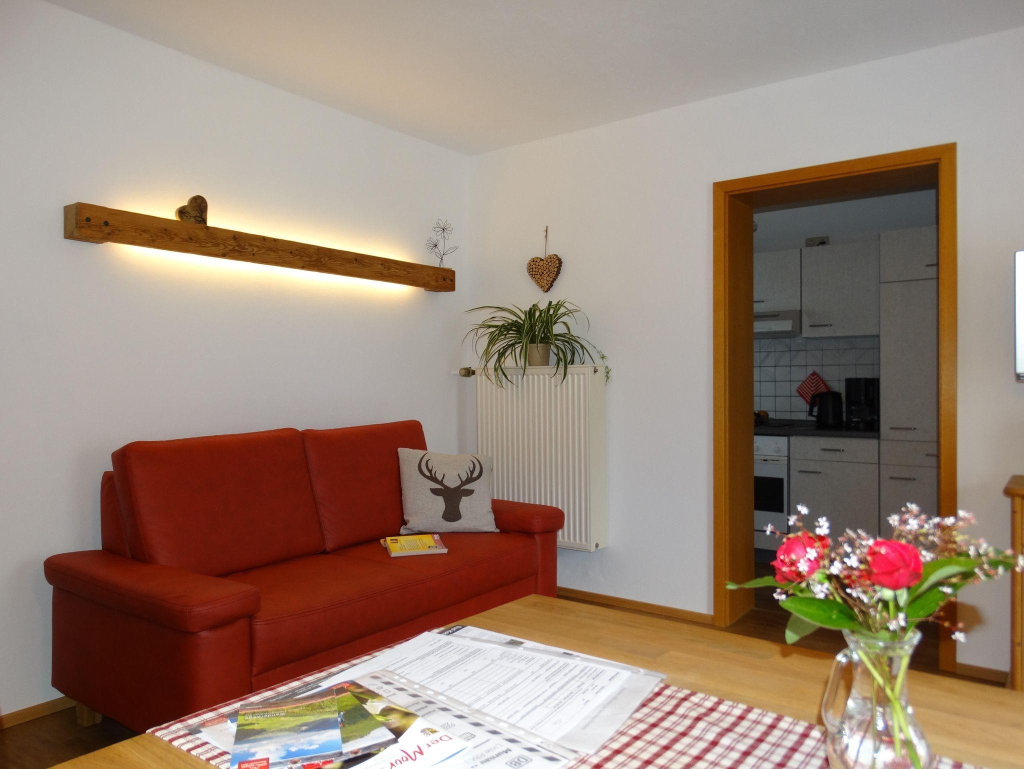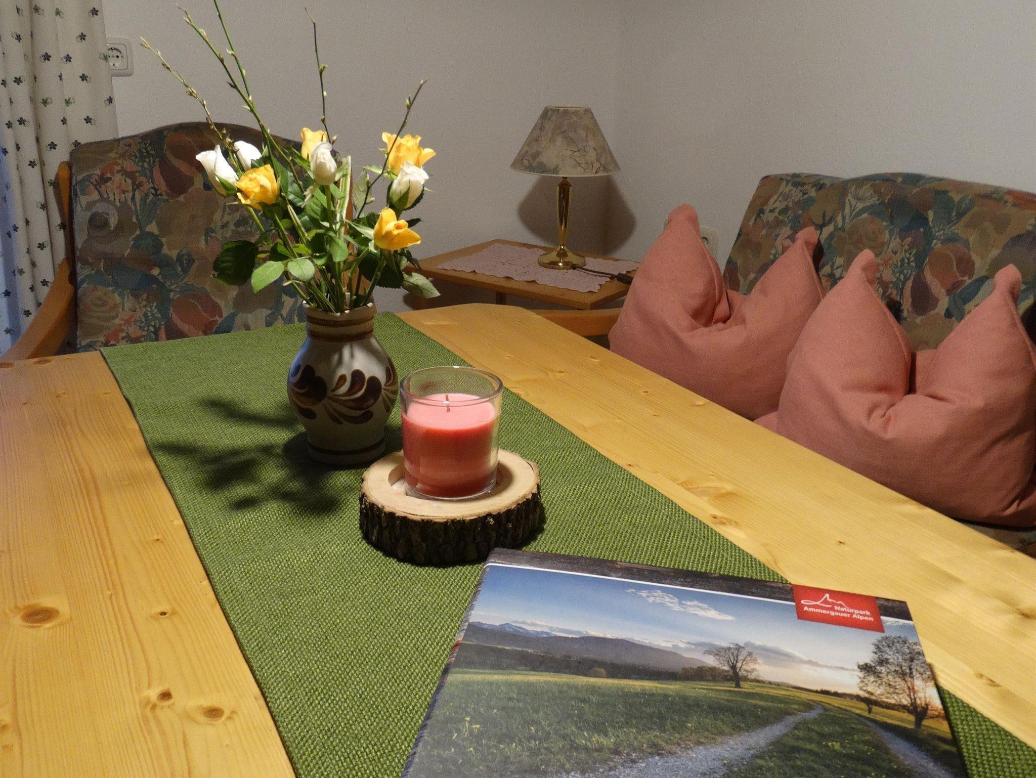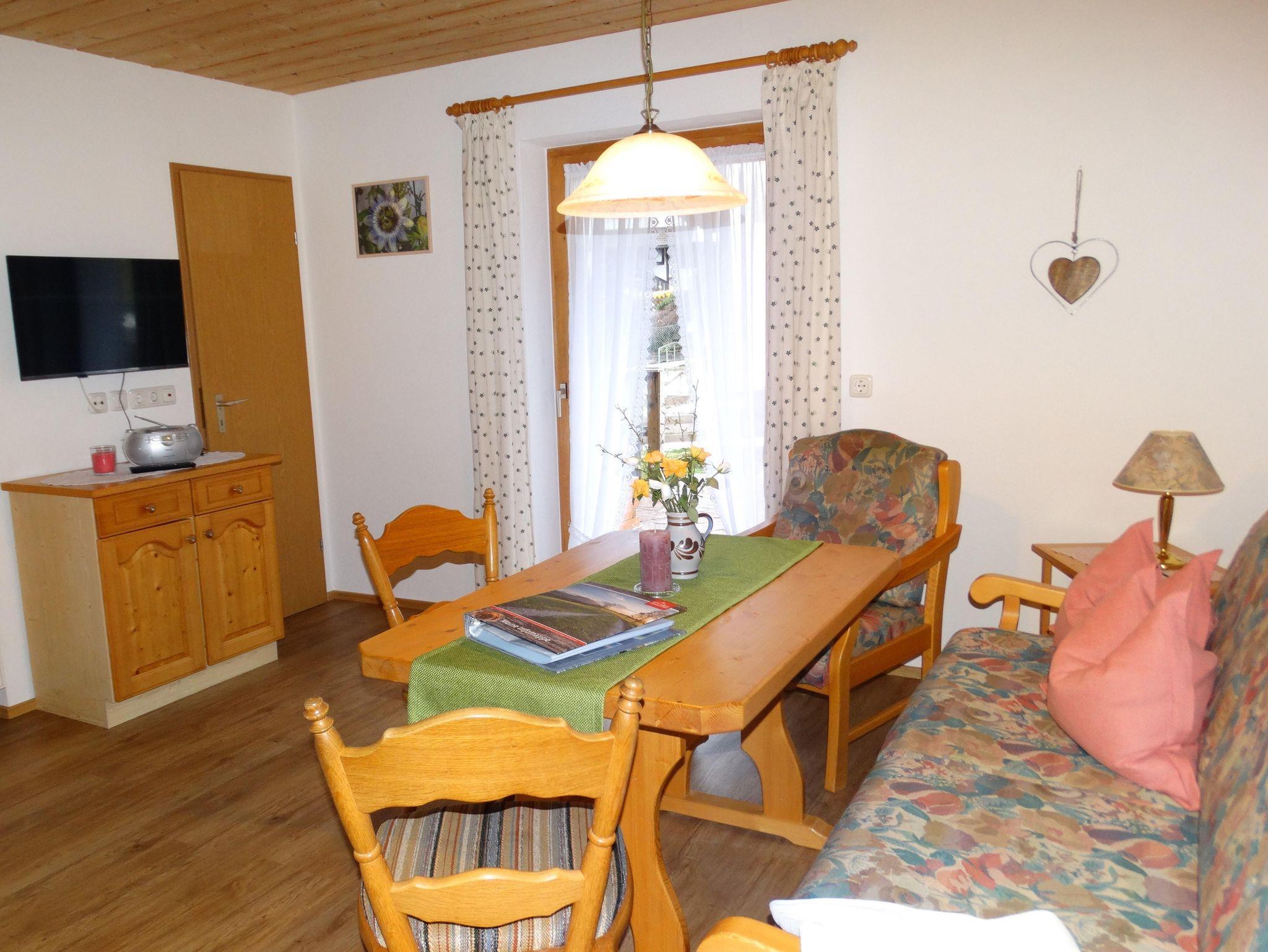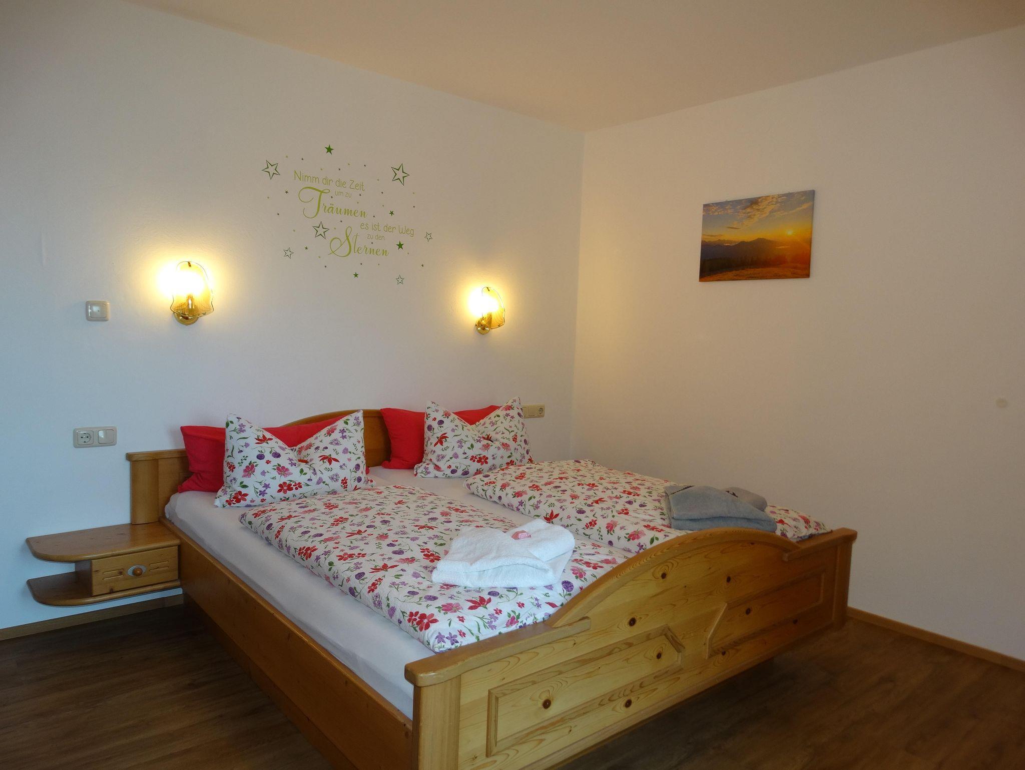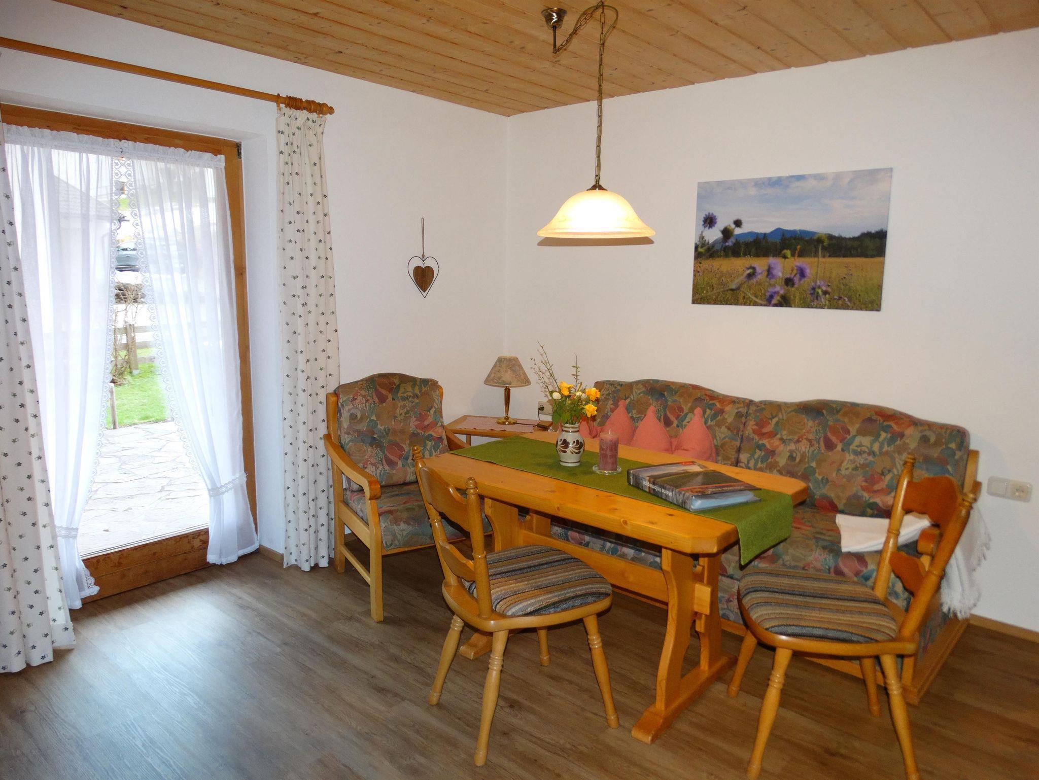 Unsere gemütlich eingerichtete Ferienwohnung verfügt über 2 Schlafzimmer, begehbarer Kleiderschrank, 1 Kinderzimmer mit Stockbett, Wohnzimmer mit gemütlicher Essecke und Couch, Radio mit CD Player, 2 Bäder, Fön, Abstellraum. Der große Südbalkon mit Bergblick lädt zum Erholen ein. Im Garten finden Sie eine kleine Kräuterecke, Grillplatz und einen kleinen Kinderspielplatz.