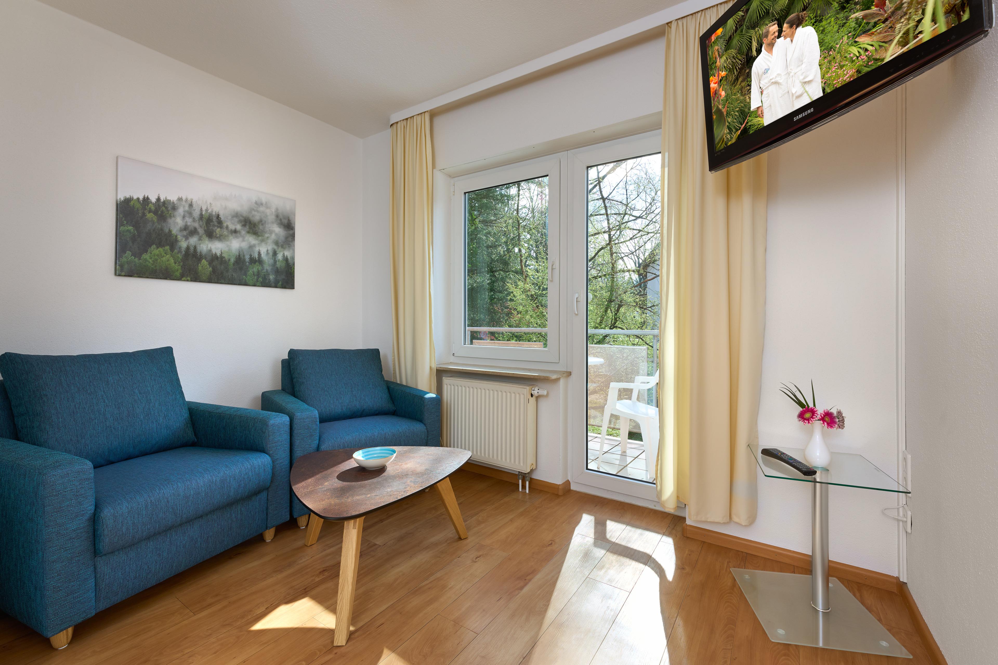 Das Appartement befindet sich im 1. OG.über die ganze Länge des Appartements gibt es einen sonnigen Balkon, der Richtung Osten situiert ist. Das Wohnzimmer ist im Schlafzimmer integriert. 2 bequeme Sessel lassen Sie sehr gut entspannen. Das Doppelbett ist ein hochwertiges Boxspringbett. Der Wohn-Schlafraum ist von der Wohnküche mit einer Tür abgetrennt. In der Küche gibt es eine Nespressokaffeemaschine, Geschirrspülmaschine, Kühlschrank mit einem Gefrierfach, Herd mit Backofen, ein Wasserkocher und ein Toaster. Die Einrichtung wie auch die Accessoires sind sehr eng mit der Destination Schwarzwald verknüpft. Diese Atmosphäre, die im Appartement zu bewundern und spüren gibt, lässt den Gast richtig entspannen. Die Holzart im Appartement ist die Asteiche.