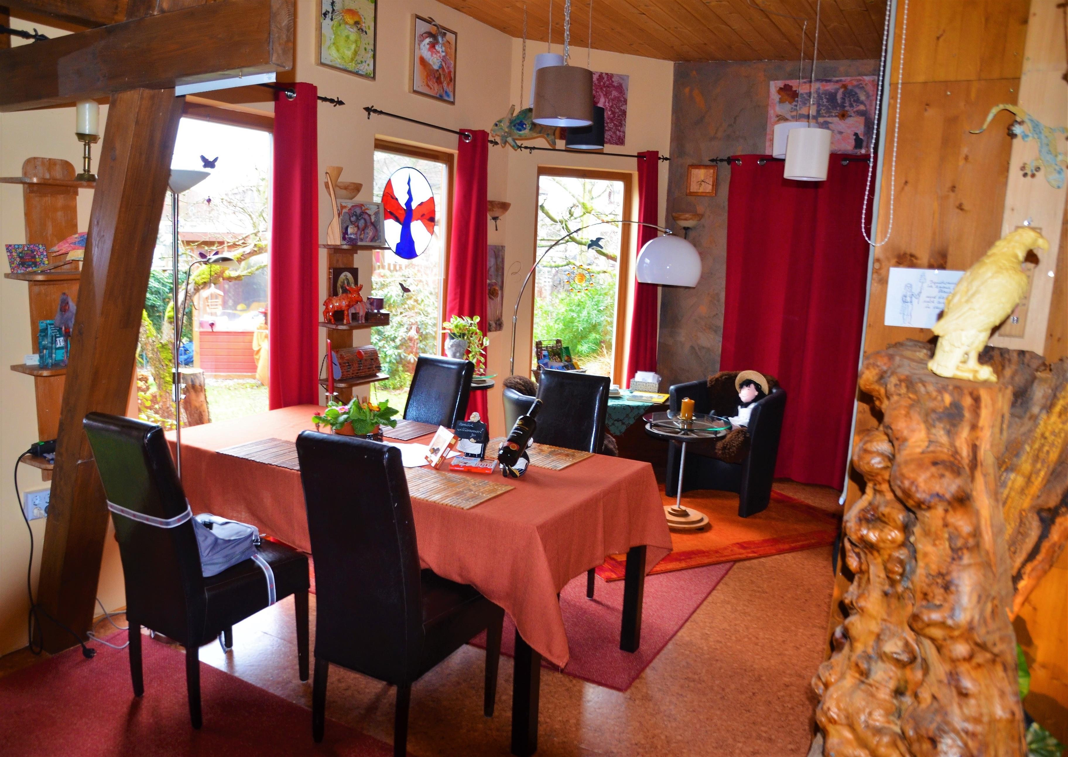 Unser Kreativ- Ferienhaus mitten im Kurviertel von Bad Lausick bietet Ihnen und Ihrem Vierbeiner Gemütlichkeit und ein ganz besonderes Ambiente. Liebevoll gestaltete Räumlichkeiten bieten eine absolute Wohlfühlatmosphäre. In unserem Werkstattlädchen direkt am Haus bieten wir in kleinem Rahmen Kreativkurse an. Schmuckgestaltungskurse mit einzigarten , marmorierten Holzplatinen und Perlen sowie Nadelfilzen können wir anbieten. Das Freizeitbad "Riff" ist in unmittelbarer Nähe. Auf Wunsch gestalten wir für Sie im Sommer in unserem direkt angrenzenden Garten einen gemütlichen Grillabend mit Lagerfeuer . Sie haben einen separaten Gartenbereich mit kleiner Terrasse, einem Pavillon für gemütliche Stunden im Freien - auch bei Regen. Der Gästegarten liegt eingebettet mitten im Grünen und hat eine Kiesfläche . Er ist abgegrenzt und die Vierbeiner können sich frei bewegen. In der Infrarotkabine können Sie sich gesundschwitzen.