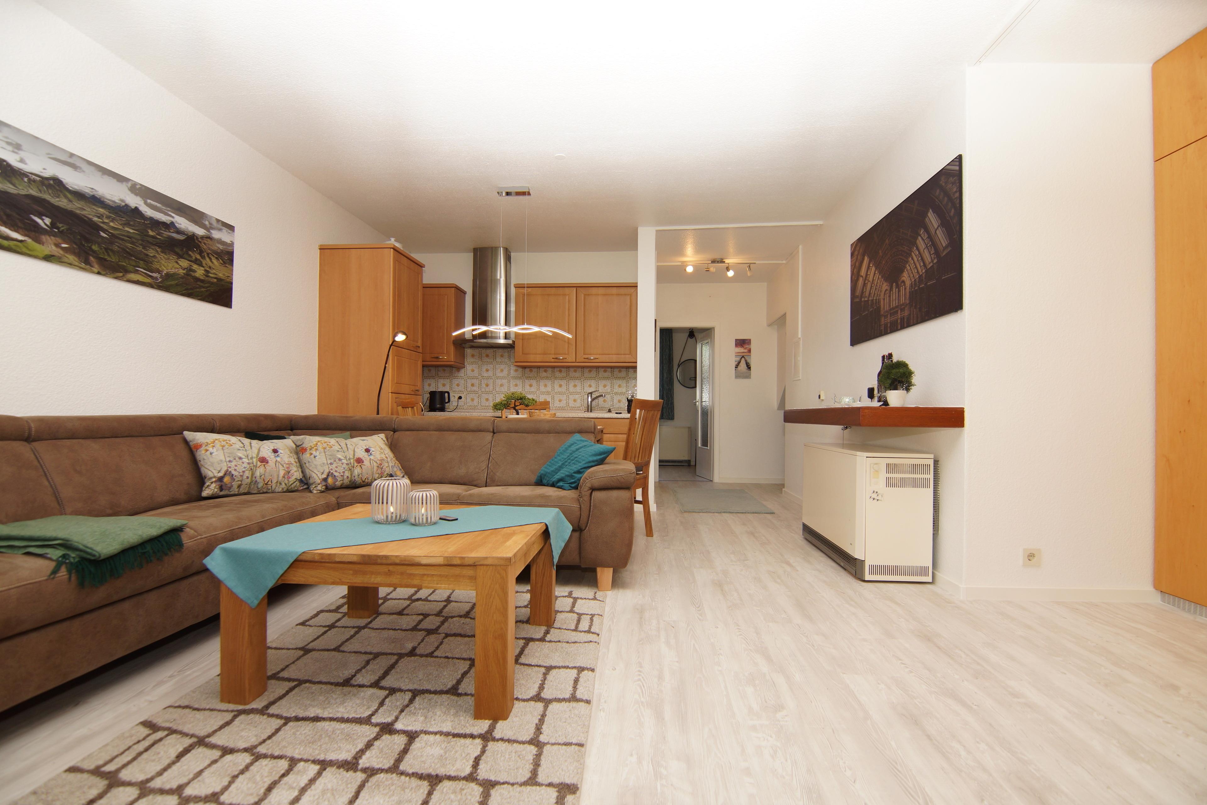 Die Wohnung verfügt über eine Terrasse mit Garten. Check in ist im Hotel, dort erhalten Sie die Gästekarte und den Wohnungsschlüssel
