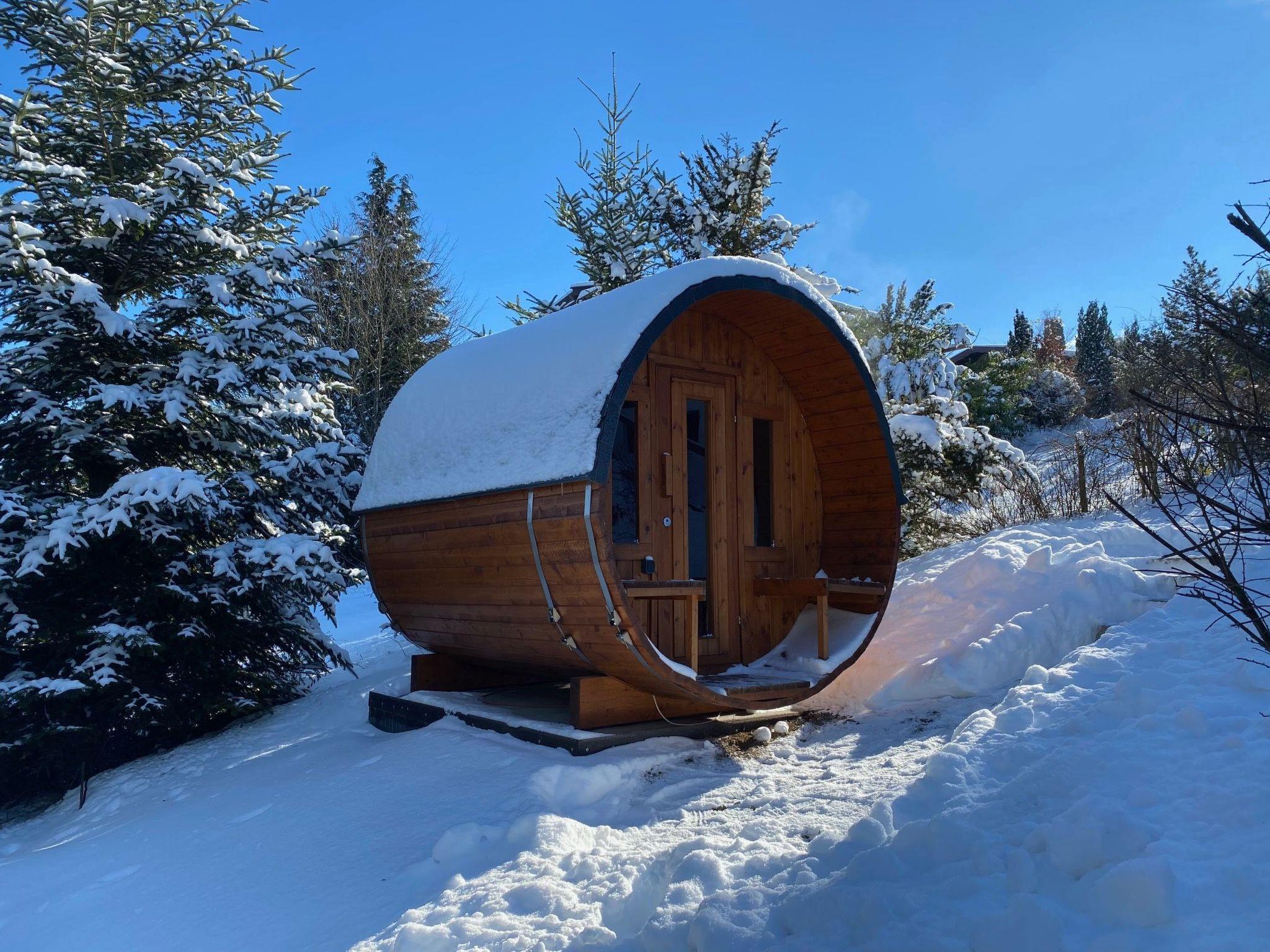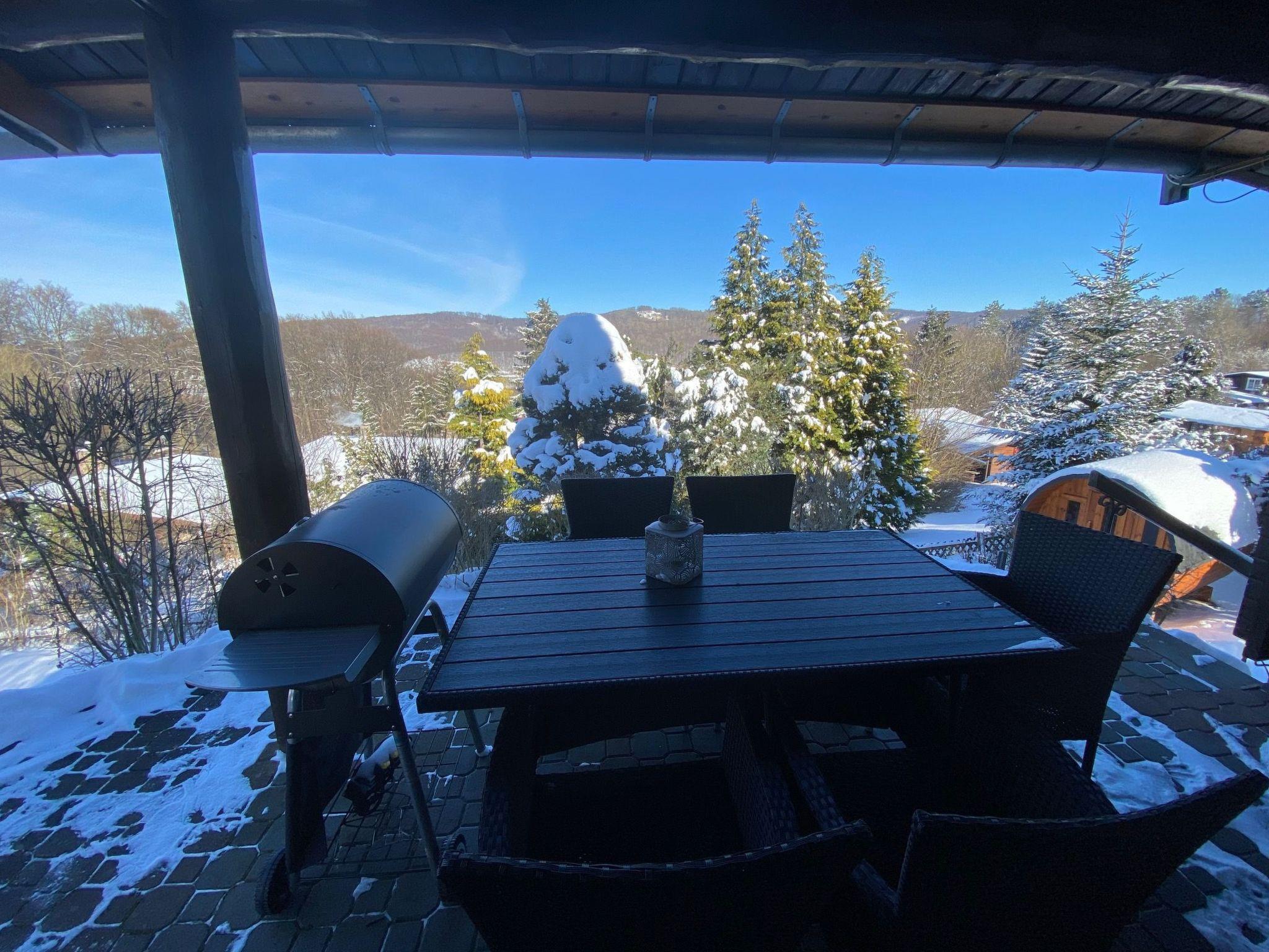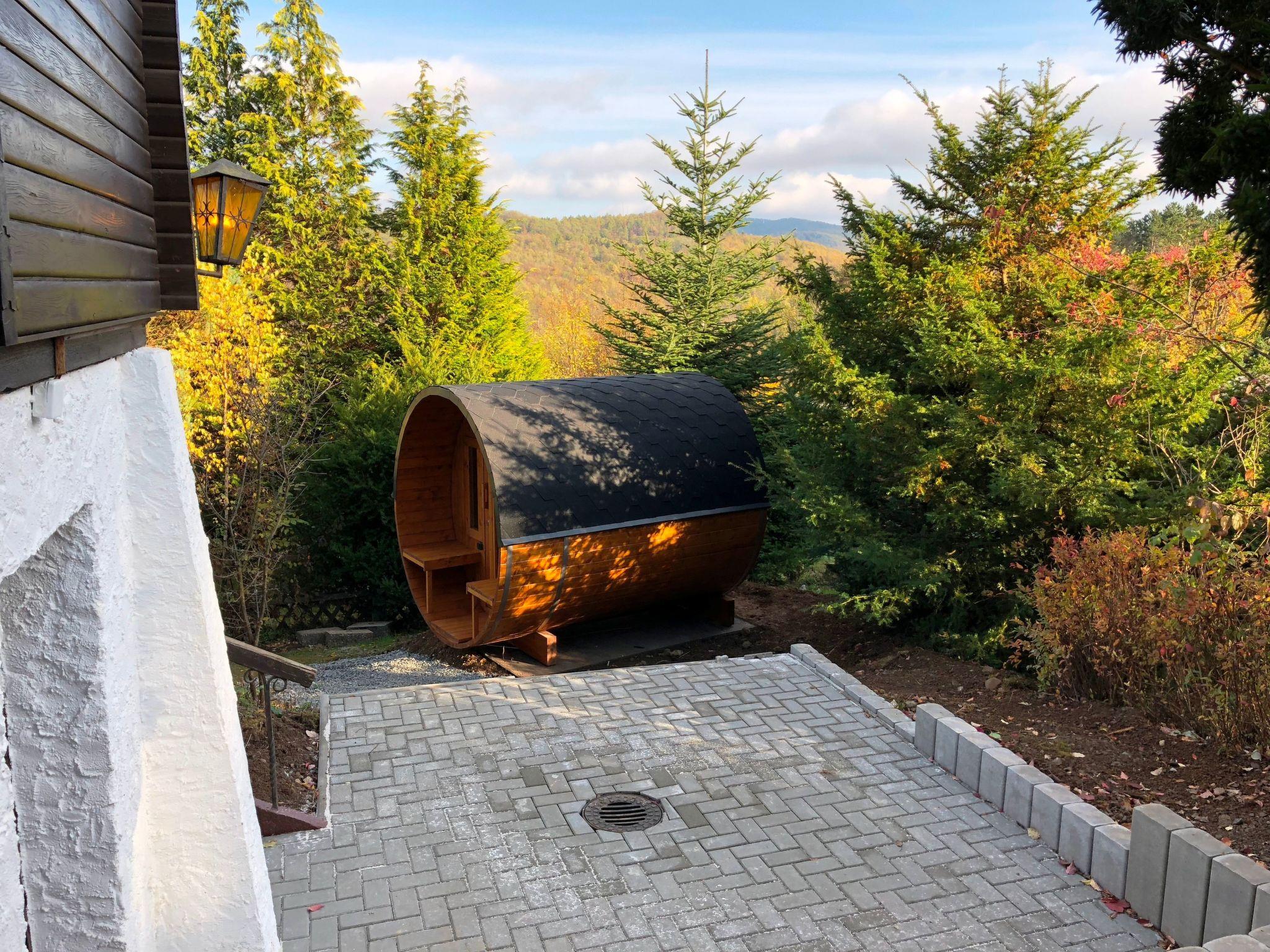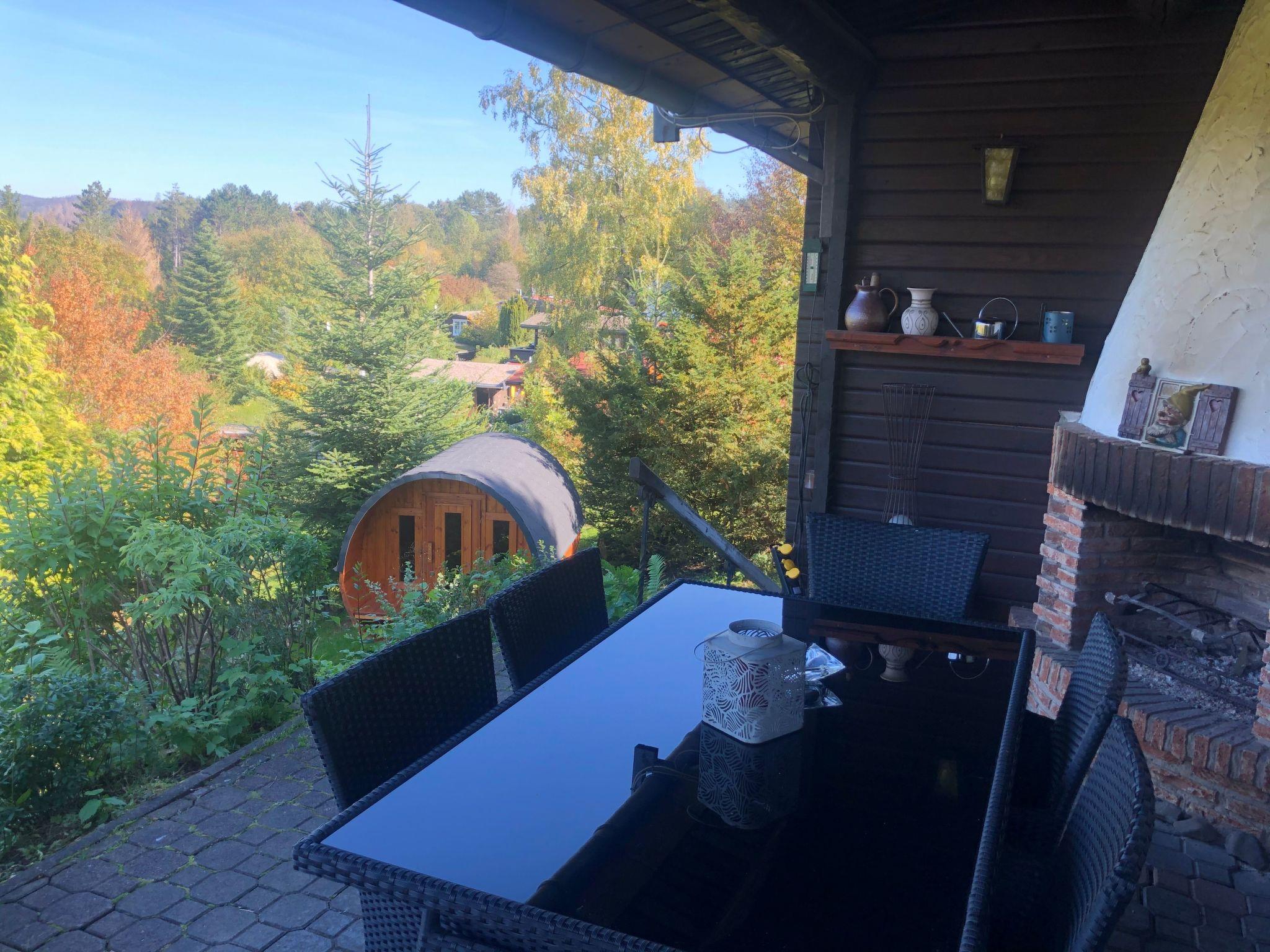 It is equipped with both an indoor and outdoor fireplace. Flat screen TVs are available in both the living room and the bedroom. 50,000 WLAN in the house! Indoor and outdoor fireplace The house is so cosy that relaxation comes naturally. The wonderful panoramic view is simply fantastic. The outdoor barrel sauna included in the price brings pure relaxation!