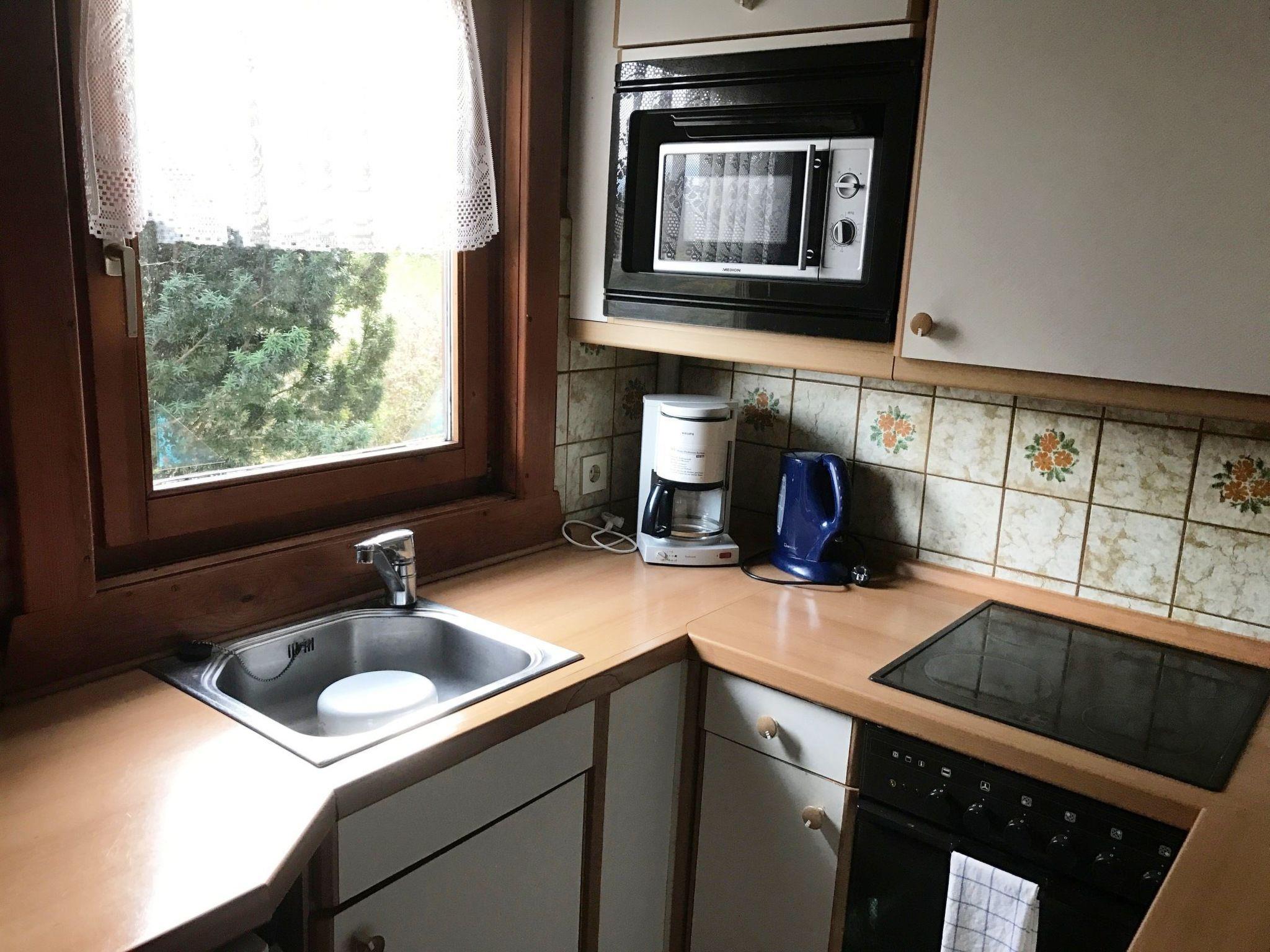 A large dining table with bench and chairs invites you to socialise or enjoy a games evening, while two large, comfortable wing chairs are perfect for relaxing and unwinding. From the large window you can enjoy the view of the beautiful landscape panorama. Various board games and books are waiting for you. The kitchen is newly equipped with all useful utensils.