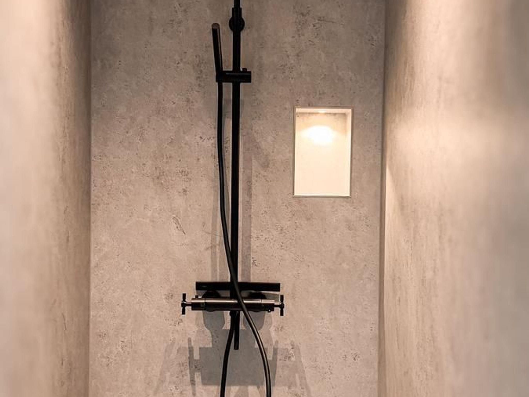 Direkt neben den Schlafzimmern liegt ein Dusch-Bad mit WC und einem Waschbecken aus Naturstein.