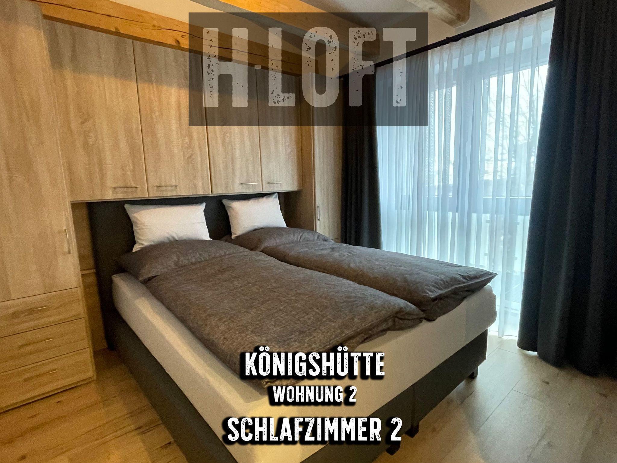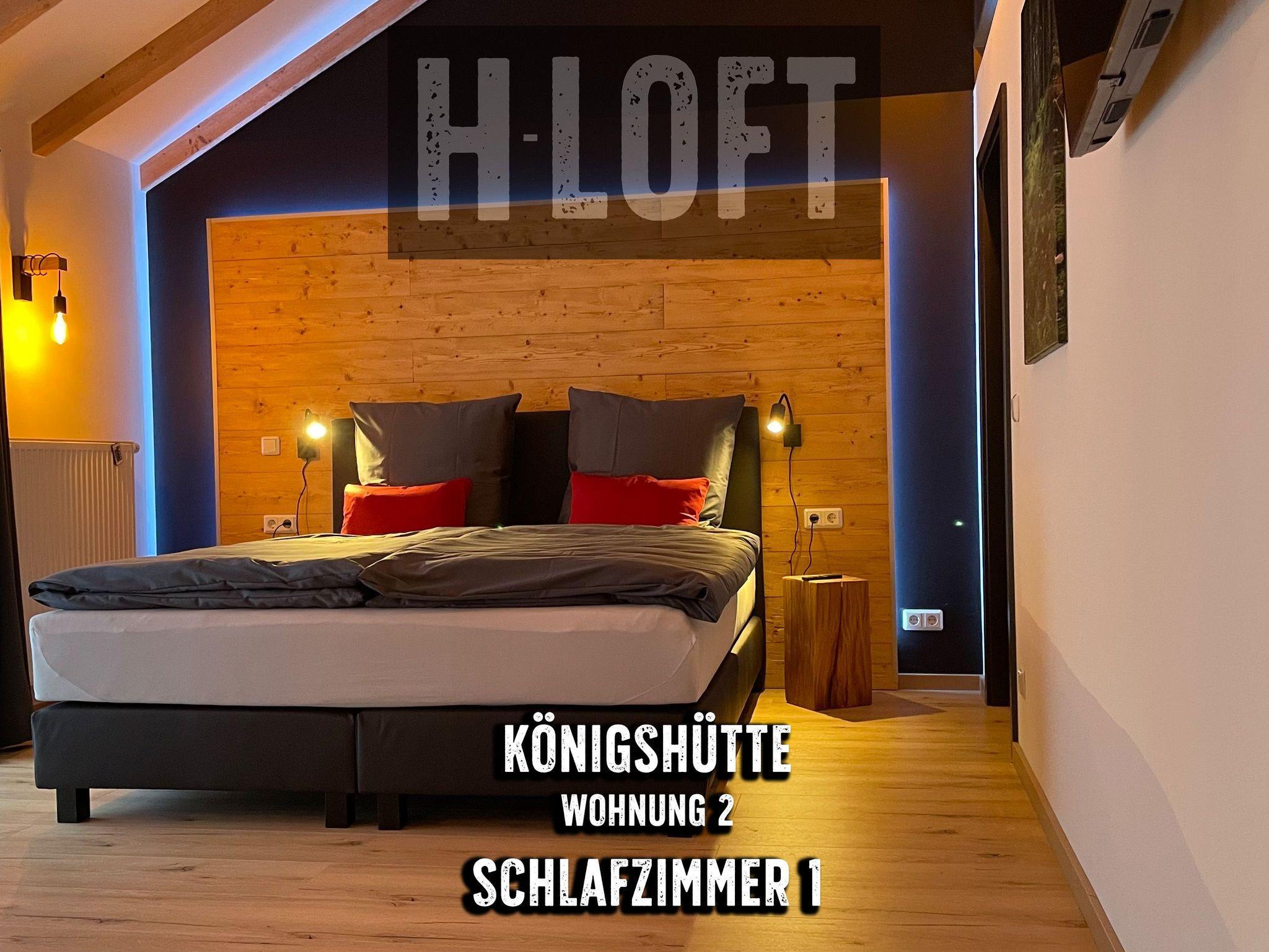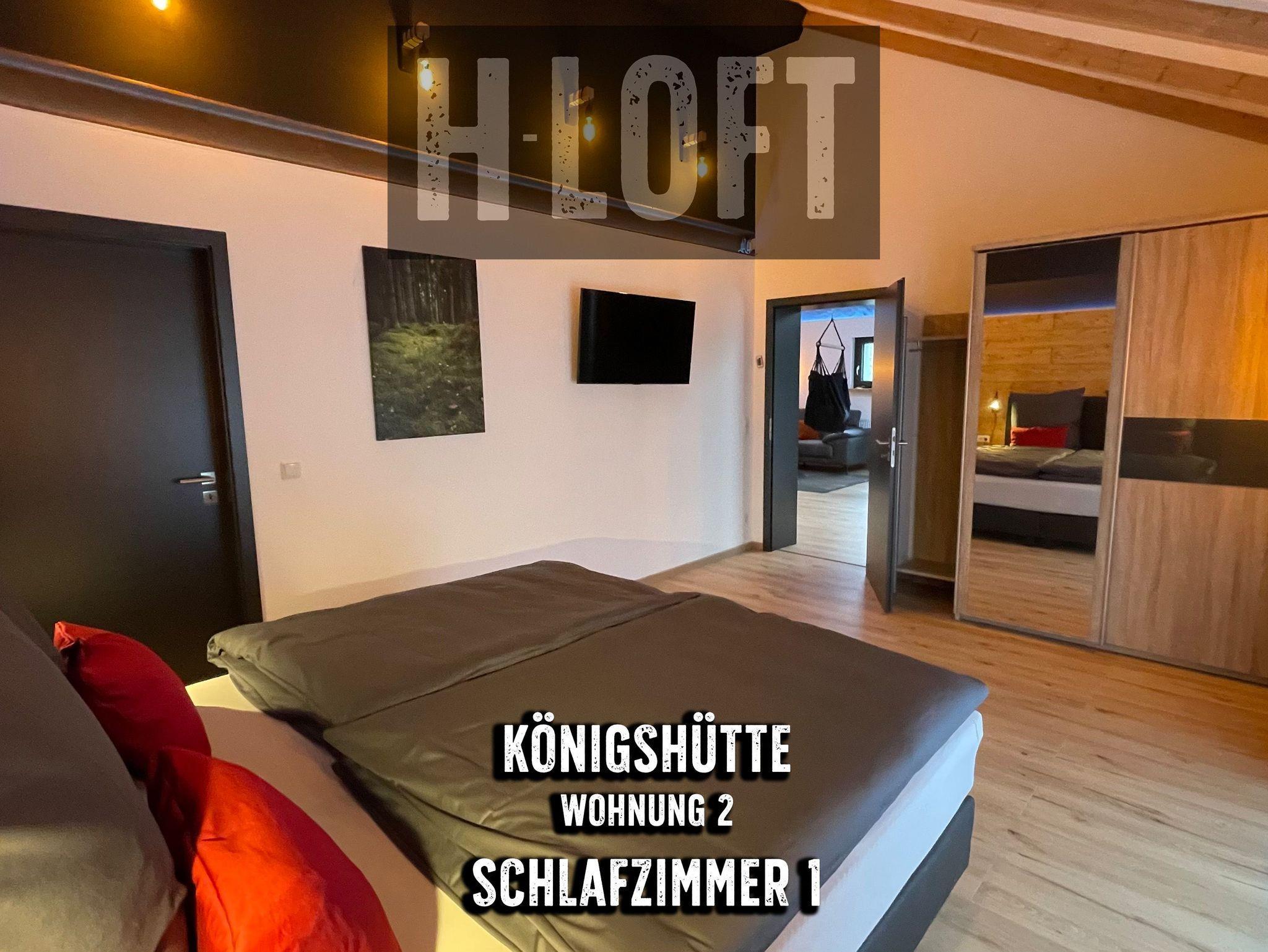 Unsere Königshütte befindet sich im Obergeschoss des Gebäudes. Sie ist ca. 90 qm groß und ist mit allem Komfort ausgestattet. Neben einem Balkon befindet sich in einem der 2 Badezimmer eine Infrarotsauna zur kostenfreien Benutzung. Die Königshütte kann mit der Kupferhütte über eine Tür verbunden werden. Im grossen Schlafzimmer stellen wir gern ein Baby- oder Gästebett für ein Kind zur Verfügung.