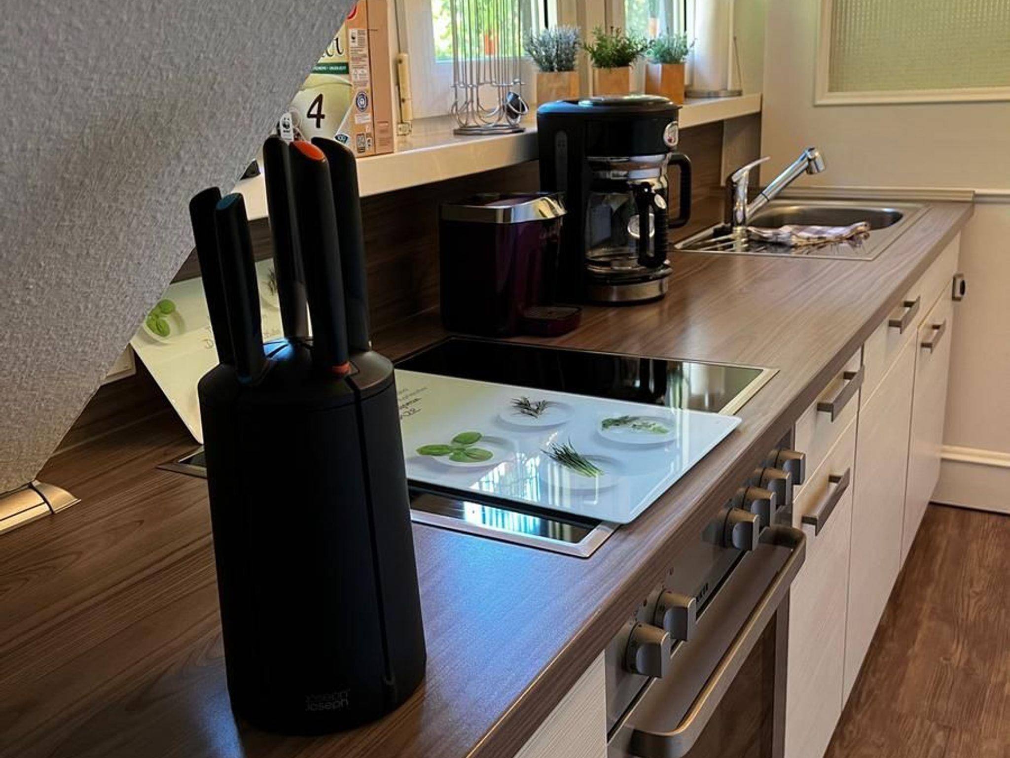 In der modernen Küche mit Spülmaschine, Cerankochfeld, Backofen, Mikrowelle, Wasserkocher, Gewürzen und modernen Küchenutensilien können Sie einfach und schnell Ihr Lieblingsessen zaubern. Für Ihren Kaffeegenuss stehen Ihnen eine Filterkaffee- sowie eine Kapselmaschine zur Verfügung.