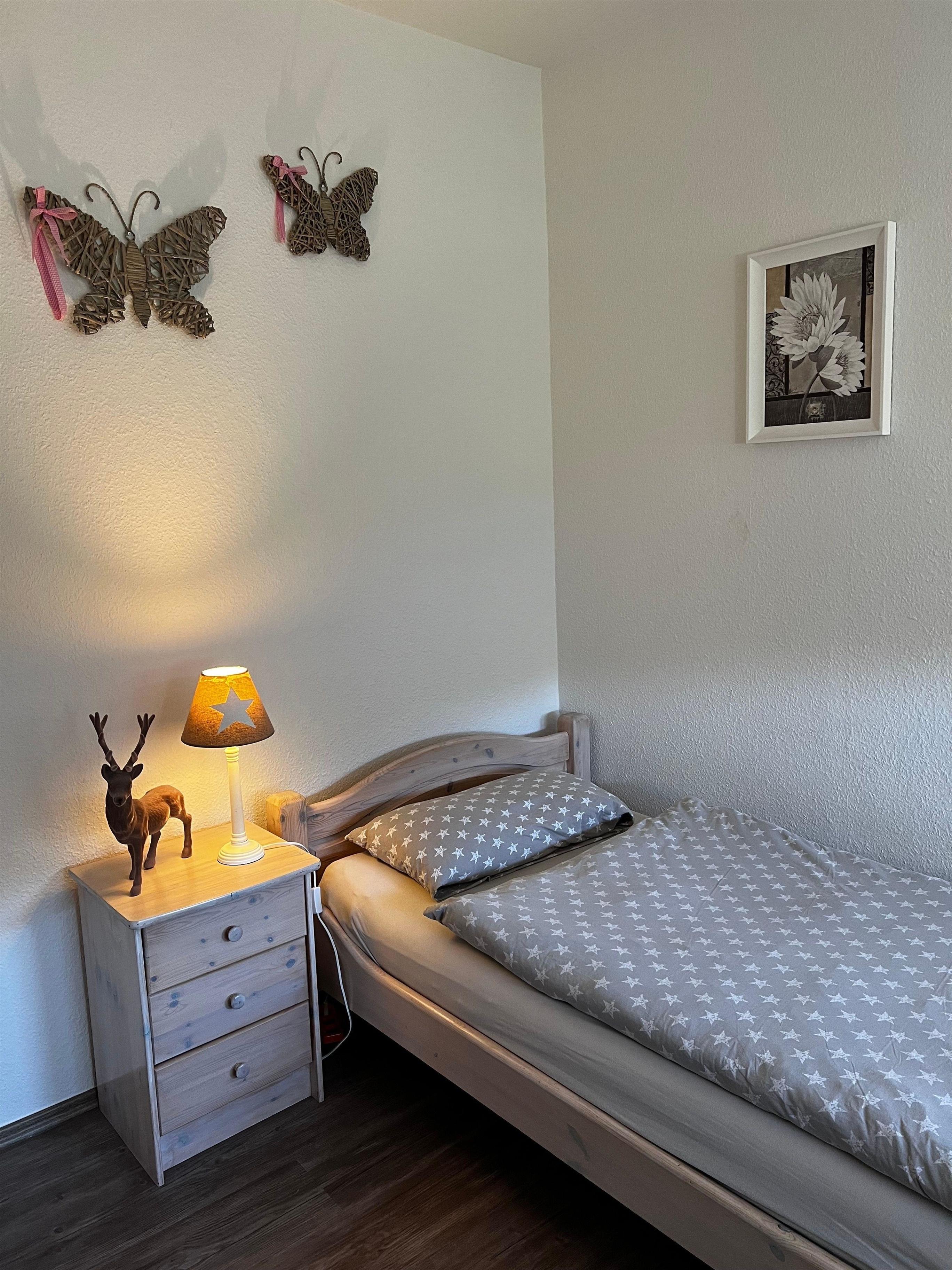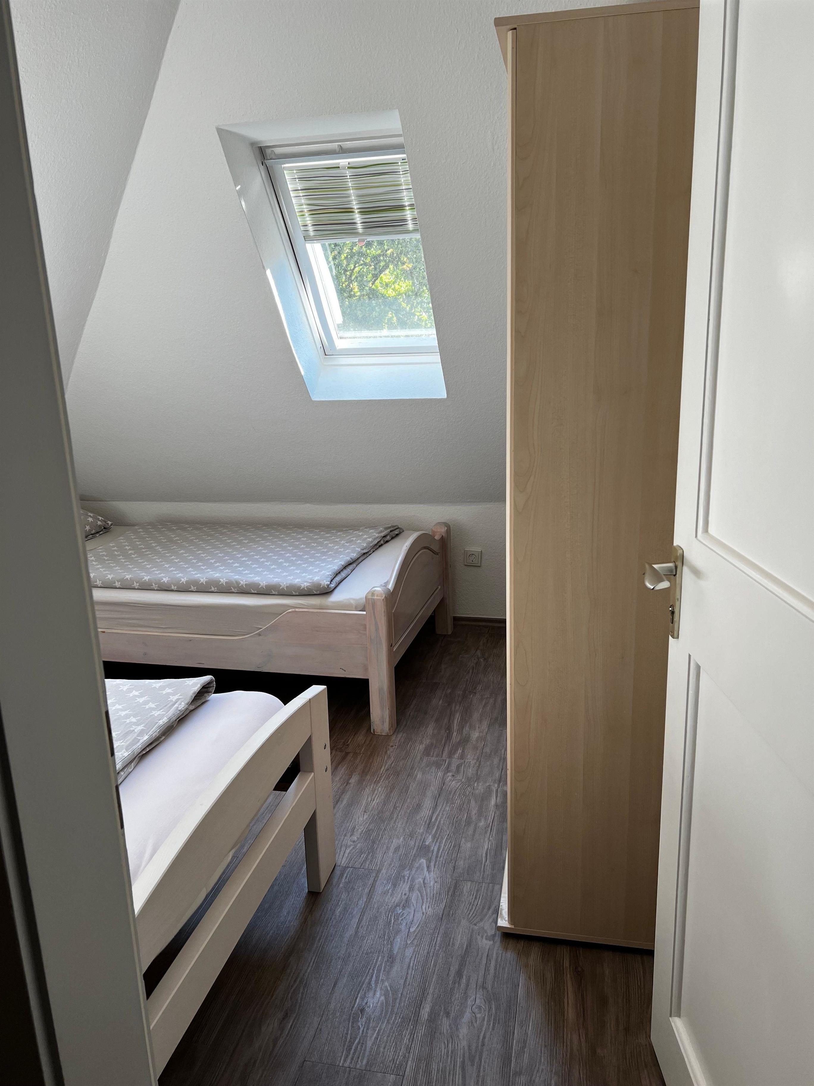 Alle 3 Schlafzimmer verfügen über jeweils zwei Einzelbetten. Diese können bei Bedarf in einem Zimmer auch zusammengeschoben werden. Die Schlafzimmer sind mit einem geräumigen Schrank, Standspiegel und teilweise mit einem Sideboard mit abschließbarem Schubfach ausgestattet. Auf Anfrage stellen wir Ihnen gern kostenlos ein Kinderbettchen und Hochstuhl zur Verfügung