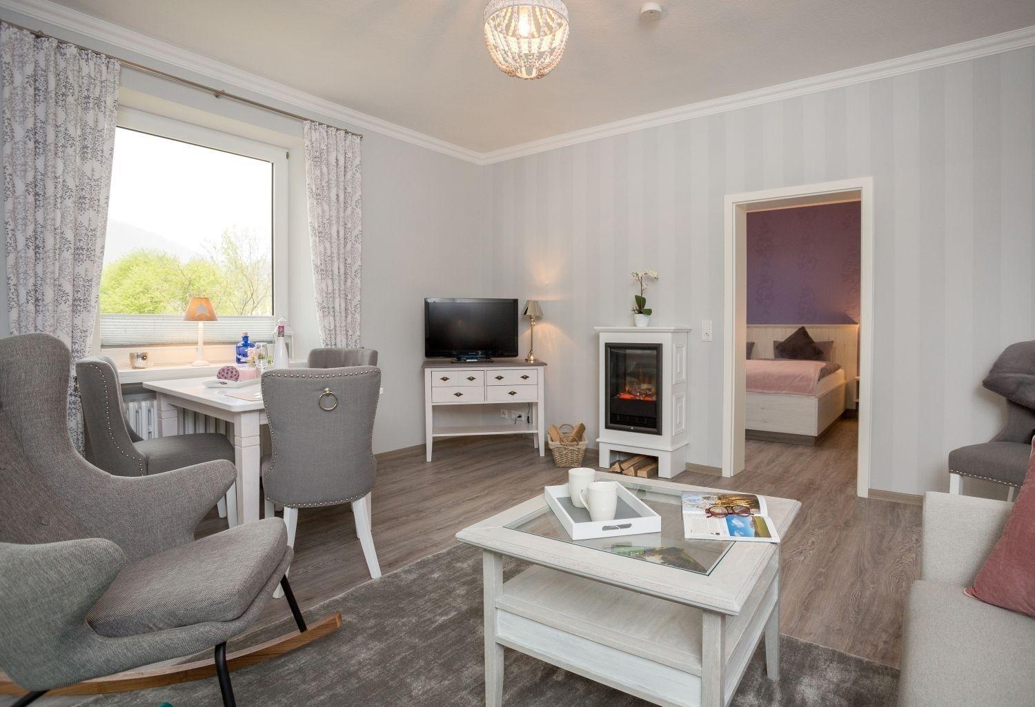 Ein herrlicher Wohnbereich mit schöner Sitzecke, Flachbild-Sat-TV , CD-Player lädt zum Verweilen ein.