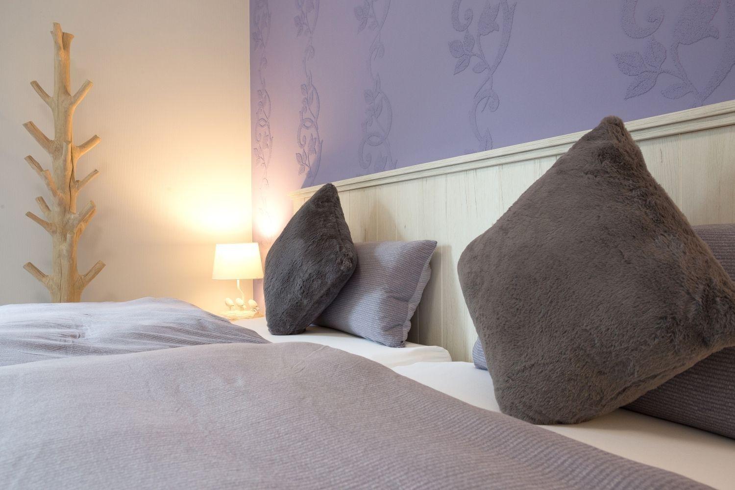 Im angrenzenden Schlafzimmer befindet sich ein Doppelbett (2.00x2.00m) mit integriertem Bewegungsnachtlicht und übergroßen Bettdecken (1.50x2.00). Außerdem steht Ihnen ein weiterer Flachbild-Sat-TV zur Verfügung.
