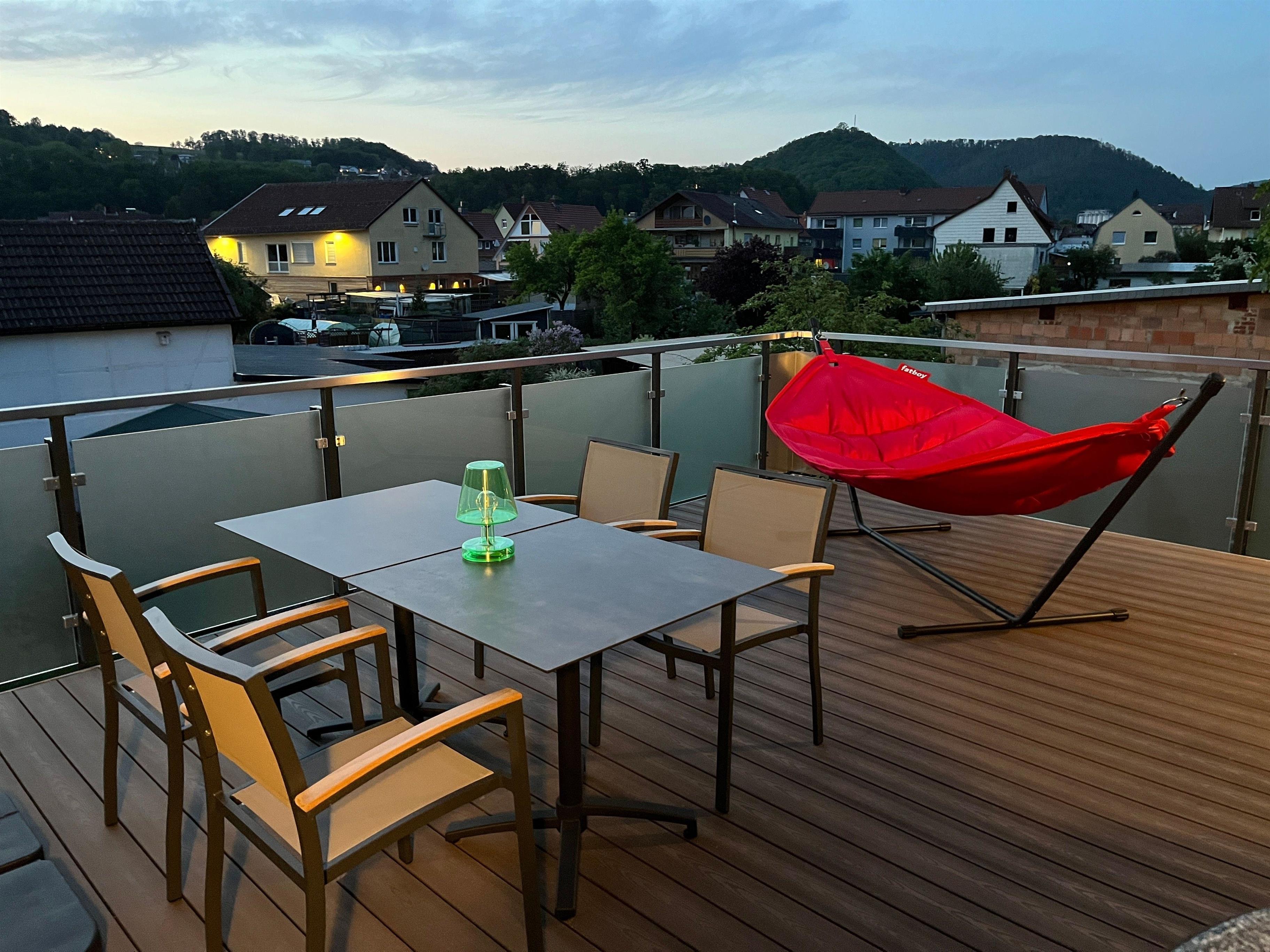 Loft Design Appartement mit großer Dachterrasse und Garten. Zwei Wallboxen zum bequemen Laden Ihrer E-Fahrzeuge stehen zur Verfügung (gegen Gebühr), Ortstaxe ist in bar vor Ort zu bezahlen. Hunde auf Anfrage (15€/Tag)