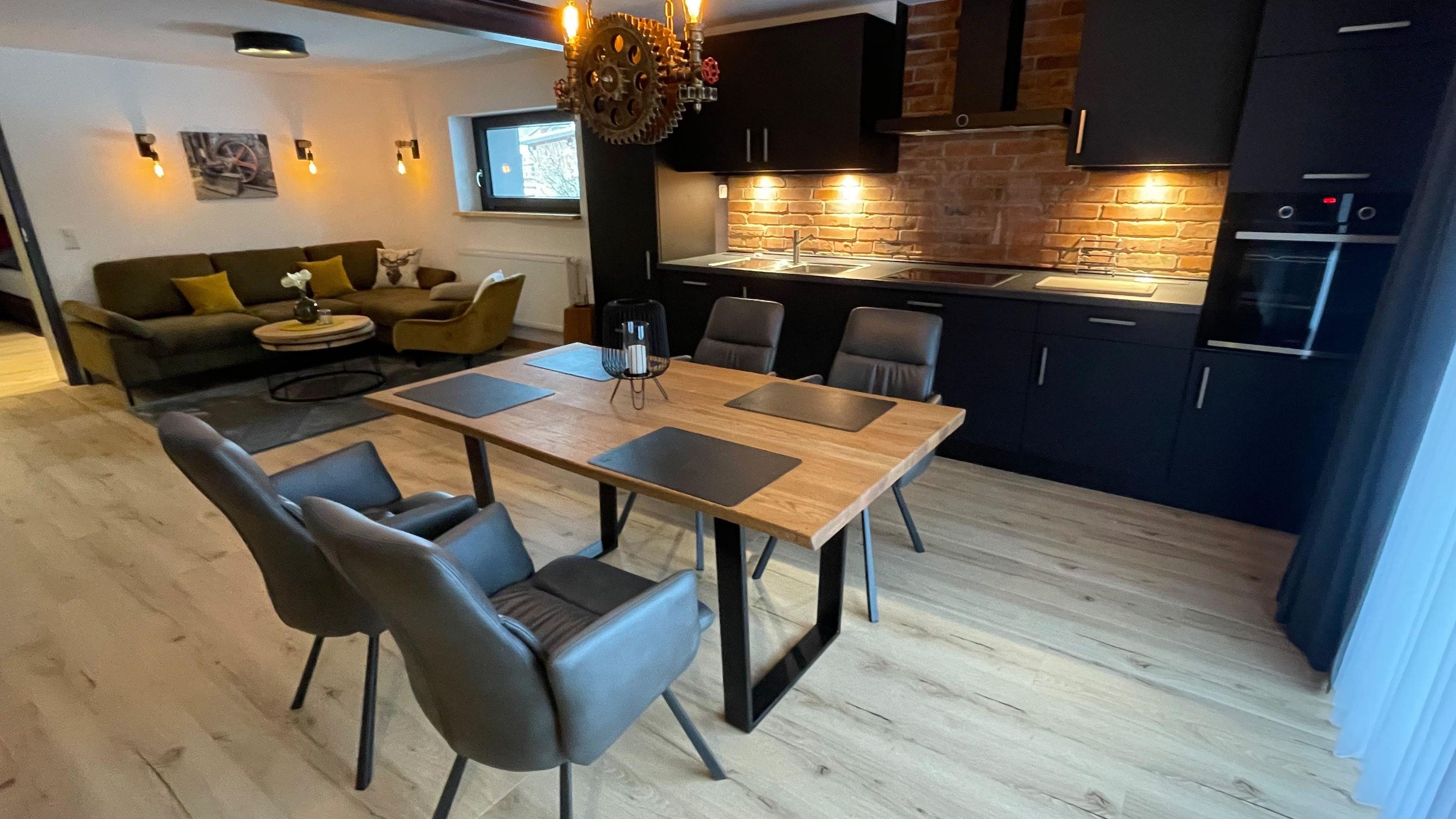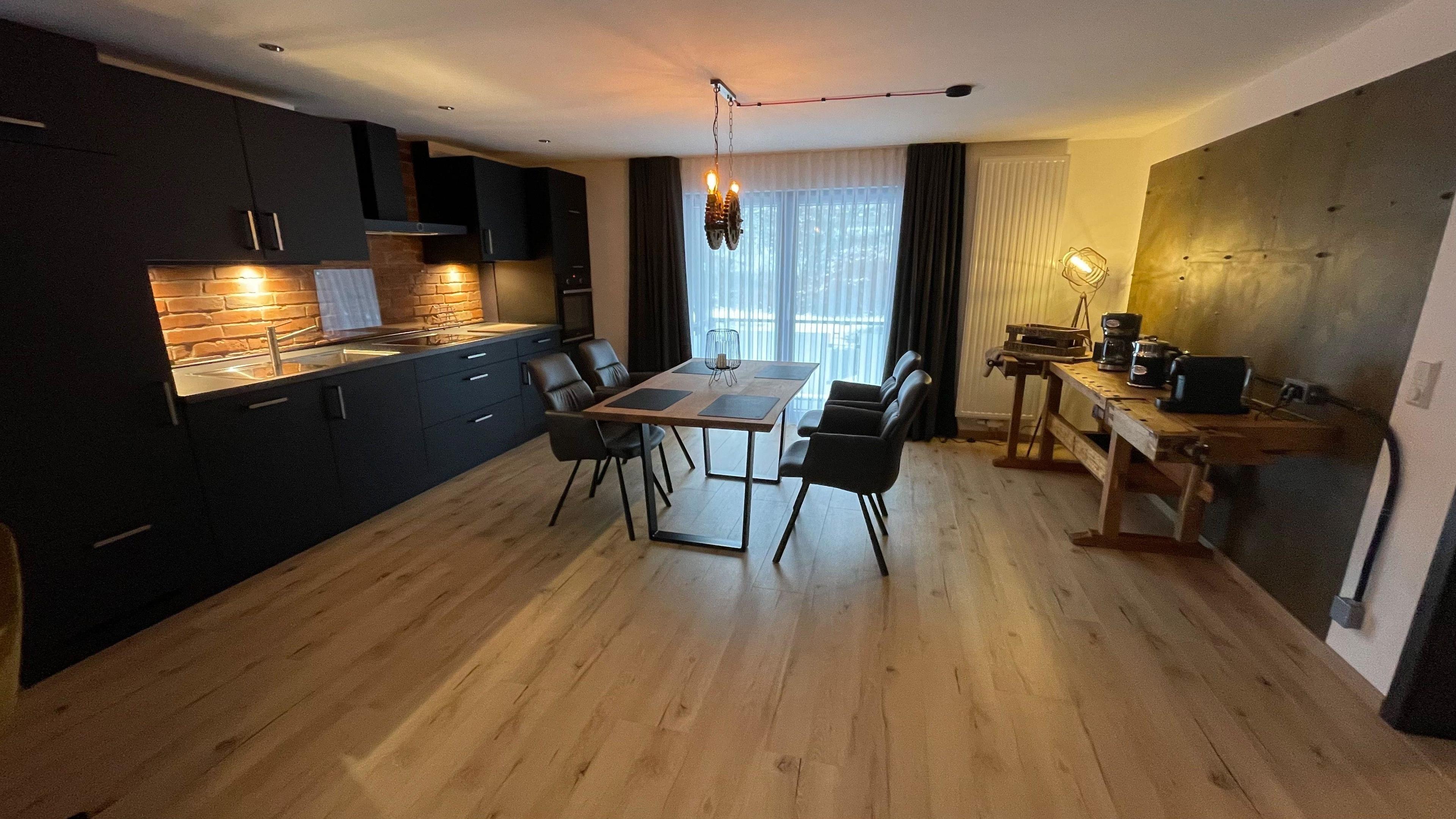 Loft Design Appartement mit Balkon und Garten, nahe dem Industriedenkmal Königshütte und dem Karstwanderweg, direkt an der Oder gelegen. InfraroSmart TV in allen Schlaf- und Wohnbereichen, moderne Küche mit Induktion. Bettwäsche und Handtücher inclusive.