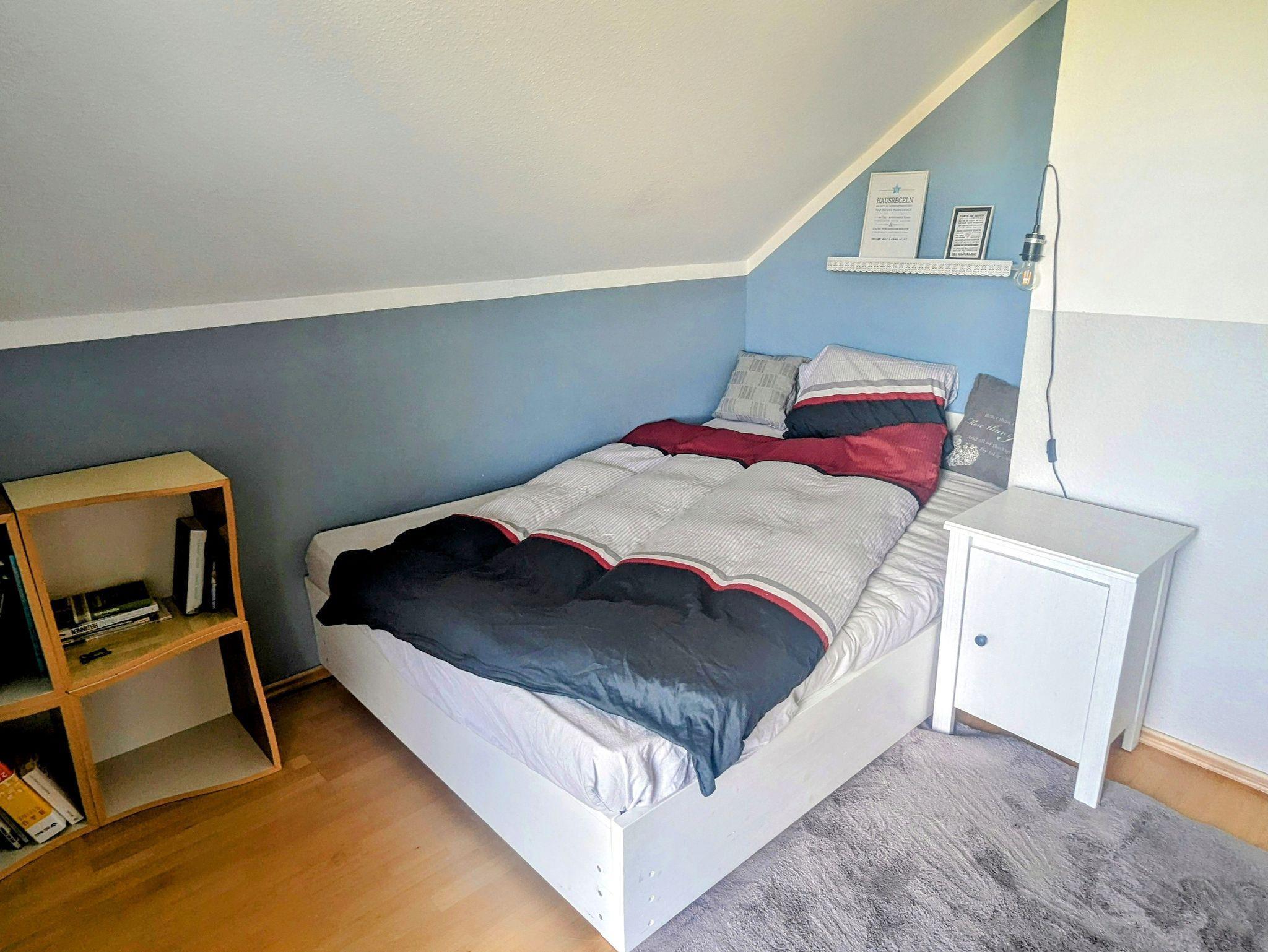 - ein Schlafzimmer (1,40 m Bett) , Einbauschrank, Kommode, Sessel , Regale