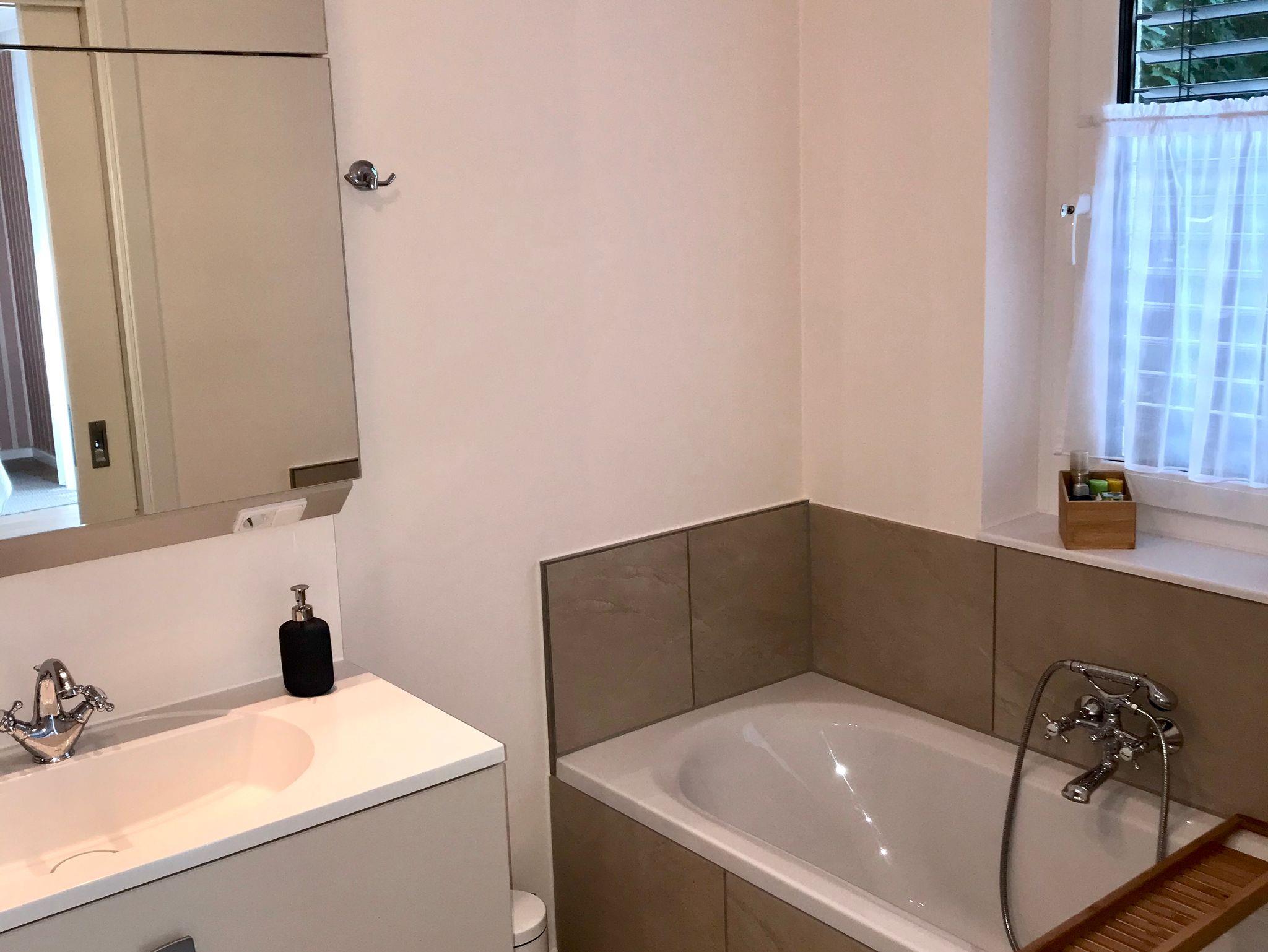 Die geräumigen Zimmer mit Balkon und Terrasse bieten Ihnen einen erholsamen Blick ins Grüne. Das Ferienhaus verfügt über 2 Schlafzimmer für insgesamt 4 Personen, welche mit einem Doppelbett beziehungsweise einem Etagenbett ausgestattet sind. Die beiden Badezimmer verfügen jeweils über Dusche/WC. Eines der beiden Badezimmer bietet zudem noch eine Badewanne.