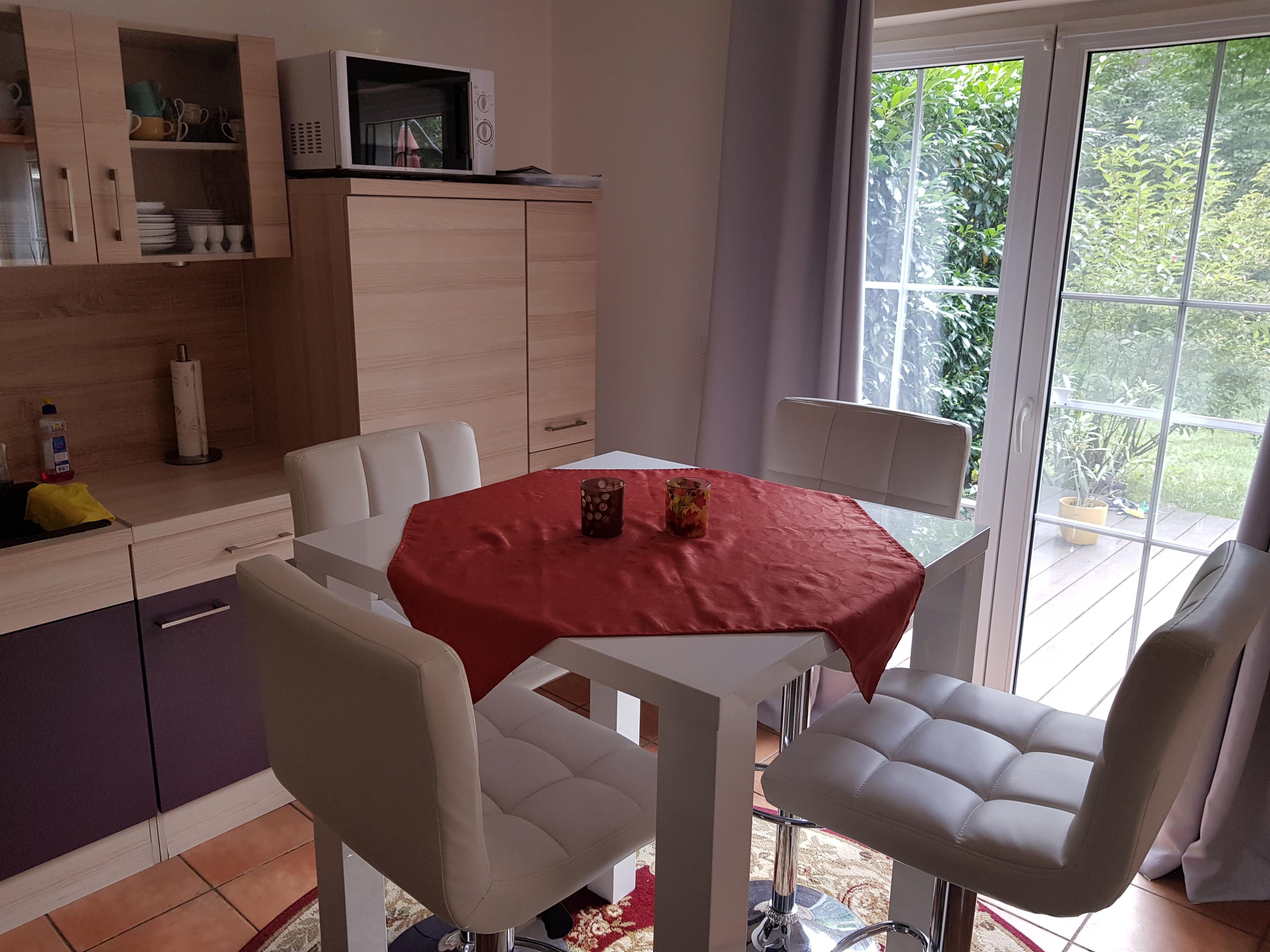WLAN für unsere IT-Gäste inklusive (50MBit), jedes Schlafzimmer als auch Wohnzimmer mit großem Flachbildschirm (Satelliten-Fernsehen), großer Eßbereich für 6 Personen, Küche mit Barhockern und Eßplatz zusätzlich, 2 Bäder, zusätzlich WC im Obergeschoß.