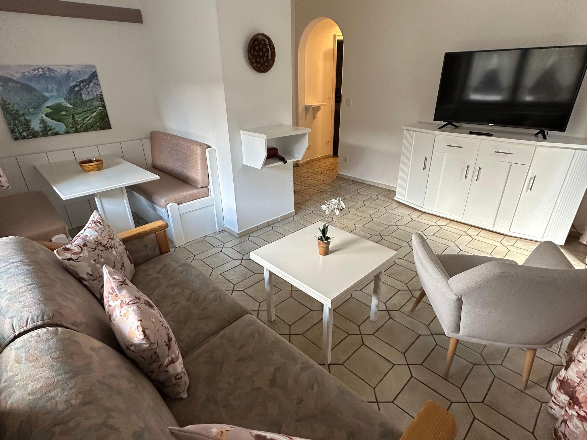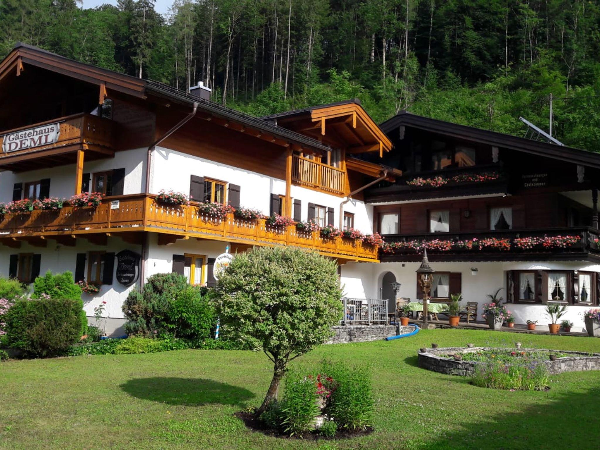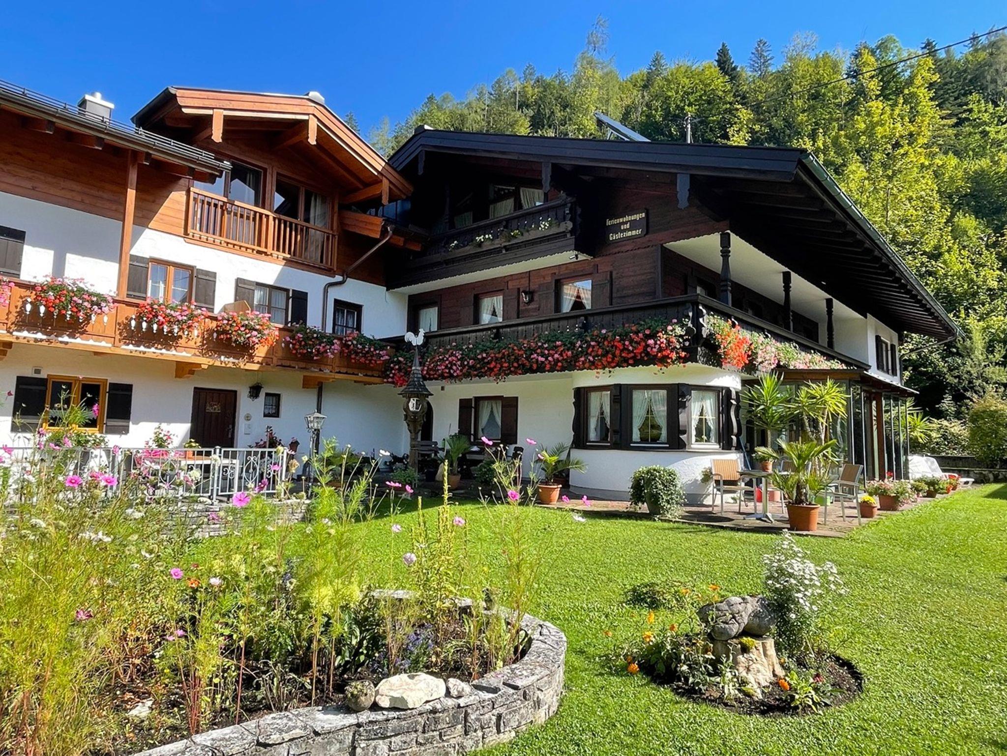 Unsere rustikale, gemütliche und privat geführte Pension wird Sie nicht nur durch unsere geräumigen Ferienappartements, sondern vor allem durch unsere hervorragende Lage überzeugen. Sportbegeisterte schätzen den Sportplatz direkt am Haus, die fussläufig in weniger als 3min erreichbare Watzmanntherme sowie die Eishalle. Wander- und Bergbegeisterte können viele Wanderungen direkt am Haus starten (Kneifelspitze,Obersalzberg usw.) aber auch alle anderen Bergziele sind in der Nähe. Junge Familien, Senioren und Kurgäste schätzen die unmittelbare Lage zu vielen Ausflugszielen, wie dem Salzbergwerk mit dem Salzheilstollen (5min. zu Fuß) der Obersalzbergbahn mit Sommerrodelbahn (10min zu Fuß) oder dem Zentrum Markt mit dem Haus der Berge, vielen Gaststätten und Einkaufsmöglichkeiten. Auch das Hofbräuhaus Berchtesgaden ist nur 5 Gehminuten entfernt, sodass man das allseits bekannt gute Bier sorglos genießen kann. Die Bushaltestelle Watzmann Therme mit direkter Anbindung an die Mozartstadt Salzburg erreichenSie in 3min. (Linie 840). Außerdem laden unsere großzügigen Terrassen und der gepflegte Garten auch jederzeit zum Nichtstun und entspannen ein. Liegen stehen kostenfrei zur Verfügung. Egal welcher Urlaubstyp Sie sind, unsere Gäste setzen sich aus allen Alters- und Gesellschaftsschichtenzusammen und diese Mischung sorgt erfahrungsgemäß für einen wohltuenden Ausgleich, Austausch und Harmonie. Erlebnisreiche Tage können Sie abends dann gerne noch in gemütlicher Atmosphäre im Stüberl mit Wintergarten ausklingen lassen. Eine kleine Tausch-Bücherei und der Brettspiel-Verleih sorgen auch an Regentagen für Abwechslung. Die Hausherren stehen für Wander- und Skitourentips und Tourenvorschläge gern zur Verfügung.