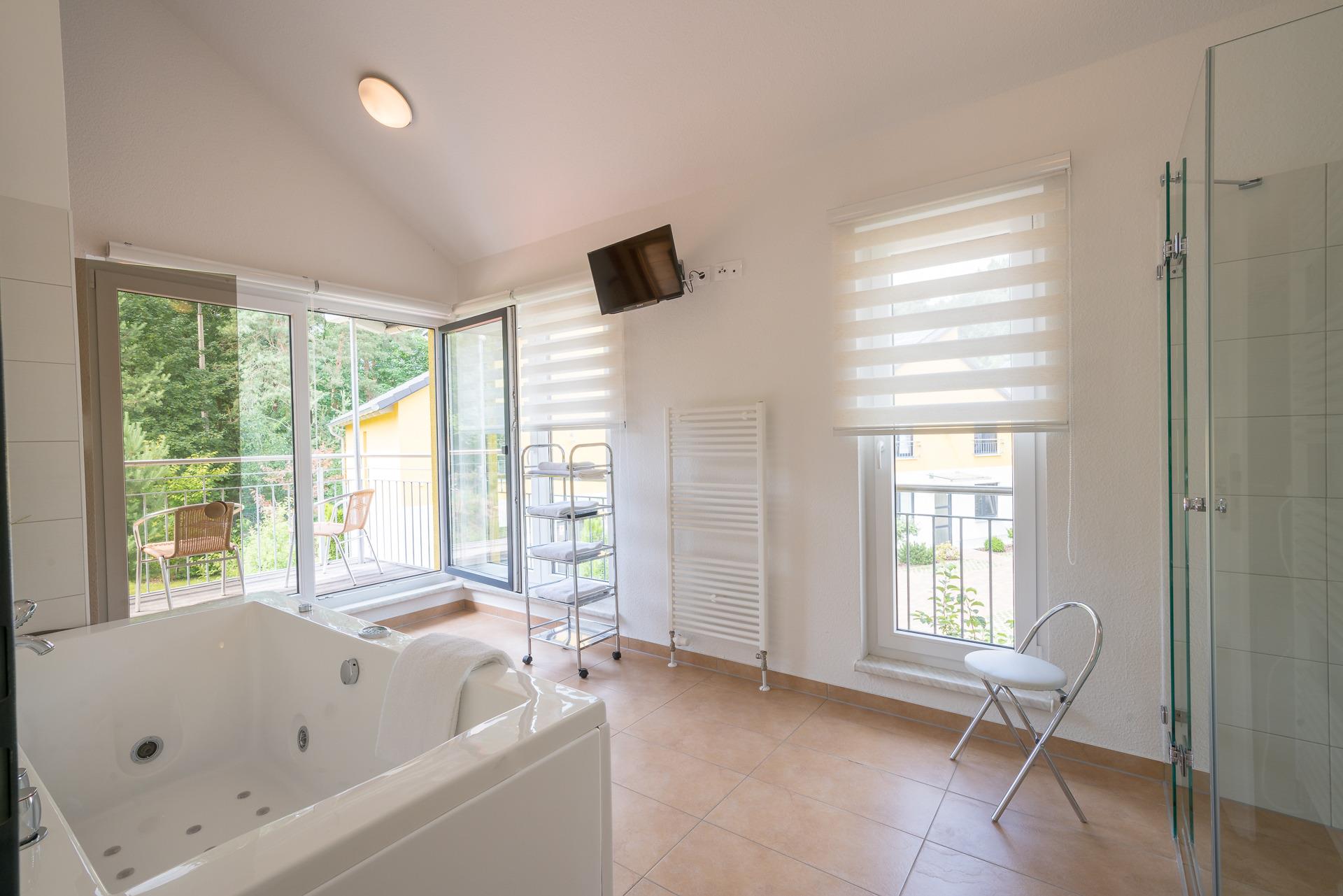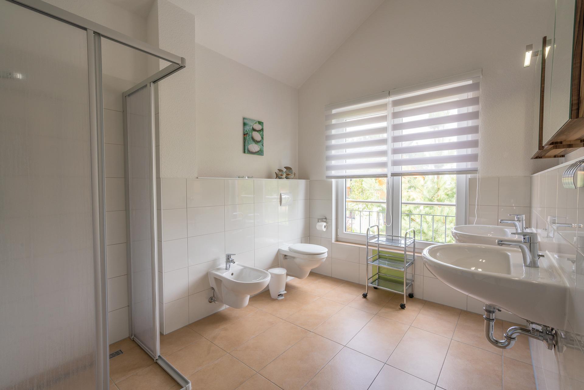 Im Obergeschoss erwartet Sie das Highlight des Hauses: Ihr ganz privater Wellnessbereich mit Sauna und Badewanne. Was gibt es nach einem aufregenden Tag in Berlin schöneres als hier die Seele baumeln zu lassen? Passend hierzu können Sie auf Anfrage Massagen oder sogar einen Personal Trainer buchen, um sich wirklich rundum wohl zu fühlen. Vom Wellnessraum aus haben Sie direkten Zugang zum Balkon. Das Haus ist nach den neuesten Standards ausgestattet. Dank Klimaanlage und Fußbodenheizung ist es bei jedem Wetter und zu jeder Jahreszeit im Haus sehr angenehm.