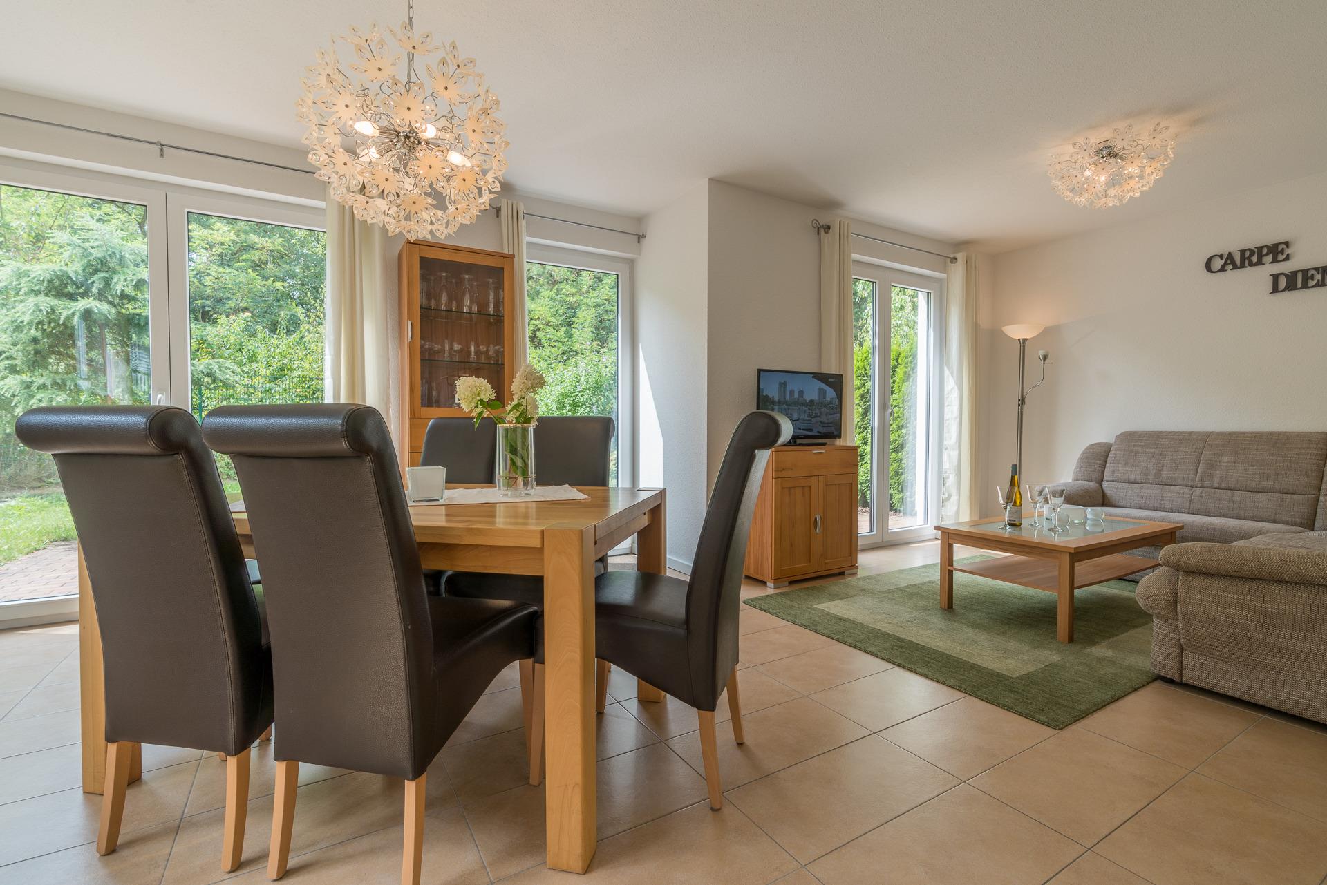 Direkt an Berlins größtem See, dem Müggelsee, liegt dieses moderne Ferienhaus mit eigenem luxuriösen Wellnessbereich. Entspannung mitten in der Natur und Abenteuer in der Metropole Berlin lassen sich in diesem Urlaub perfekt miteinander verbinden! Dank des flexiblen Tagespreis-Systems finden sich Angebote für jeden Geldbeutel und Urlaubsform, vom spontanen Kurztrip, einem verlängerten Wochenende, dem langen, erholsamen Jahresurlaub am See bis hin zu einer Auszeit im Winter, wenn es im Wellness-Ferienhaus noch gemütlicher wird und Sie nebenan auf der Eisbahn Ihre Runden drehen können. Auf weit mehr als 100 großzügig geschnittenen Quadratmetern können Sie in diesem Ferienhaus einfach mal abschalten: Der Wohnbereich ist dank der bodentiefer Fenster, lichtdurchflutet. Auf der Terrasse lässt sich herrlich gemeinsam grillen, frühstücken oder einfach nur die Sonne genießen.