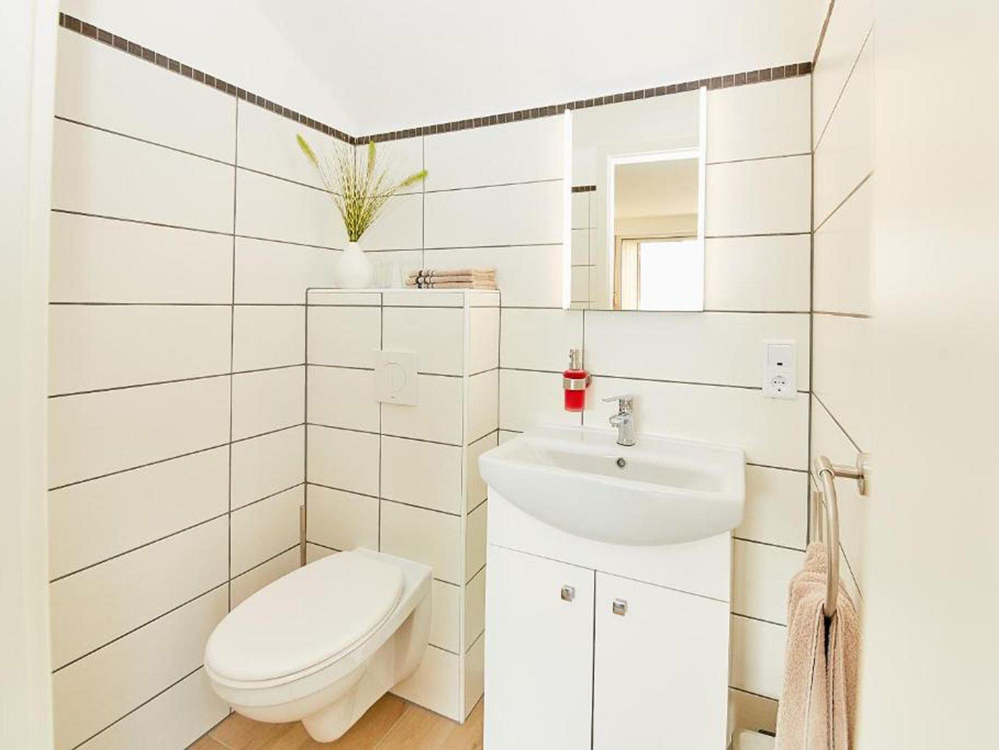 Das geräumige Duschbad mit WC und Haartrockner bietet modernen Komfort. Die gut ausgestattete Küche verfügt über ein Kochfeld, einem Kühlschrank mit kleinem Gefrierfach, einen Geschirrspüler, eine Mikrowelle, sowie alle notwendigen Küchenutensilien. Der Essbereich ist direkt in der Küche integriert und bietet einen gemütlichen Platz für gemeinsame Mahlzeiten. Zusätzlich steht Ihnen eine Senseo - Pad - Kaffeautomat, der auch für Filterkaffee genutzt werden kann zur Verfügung.