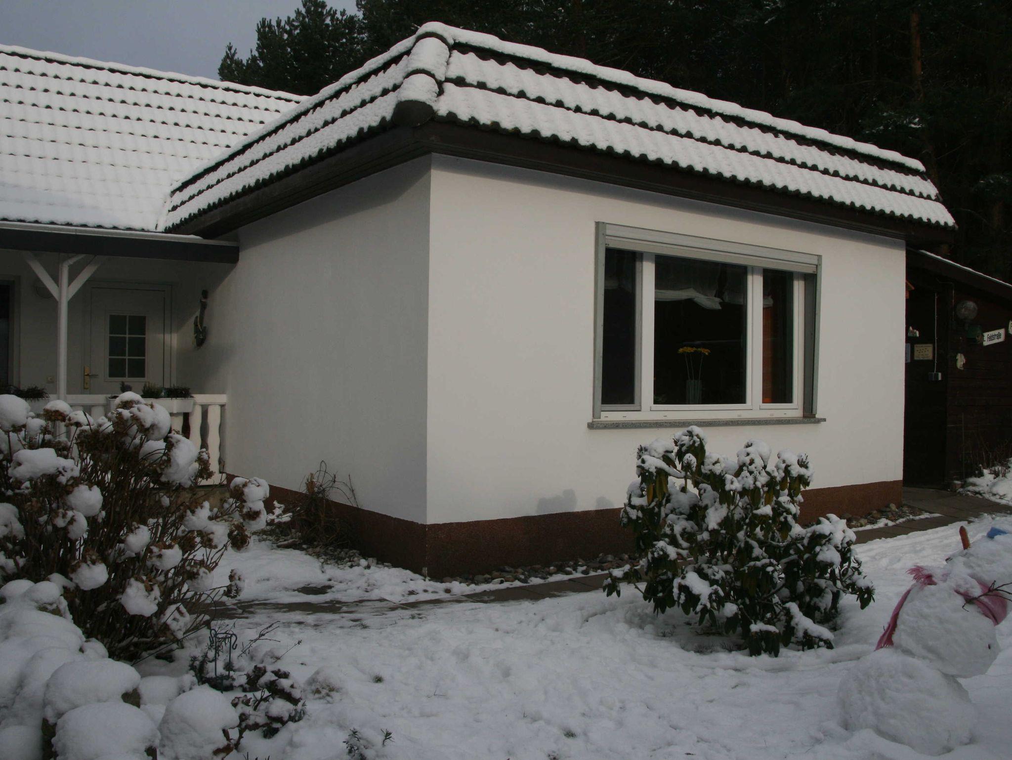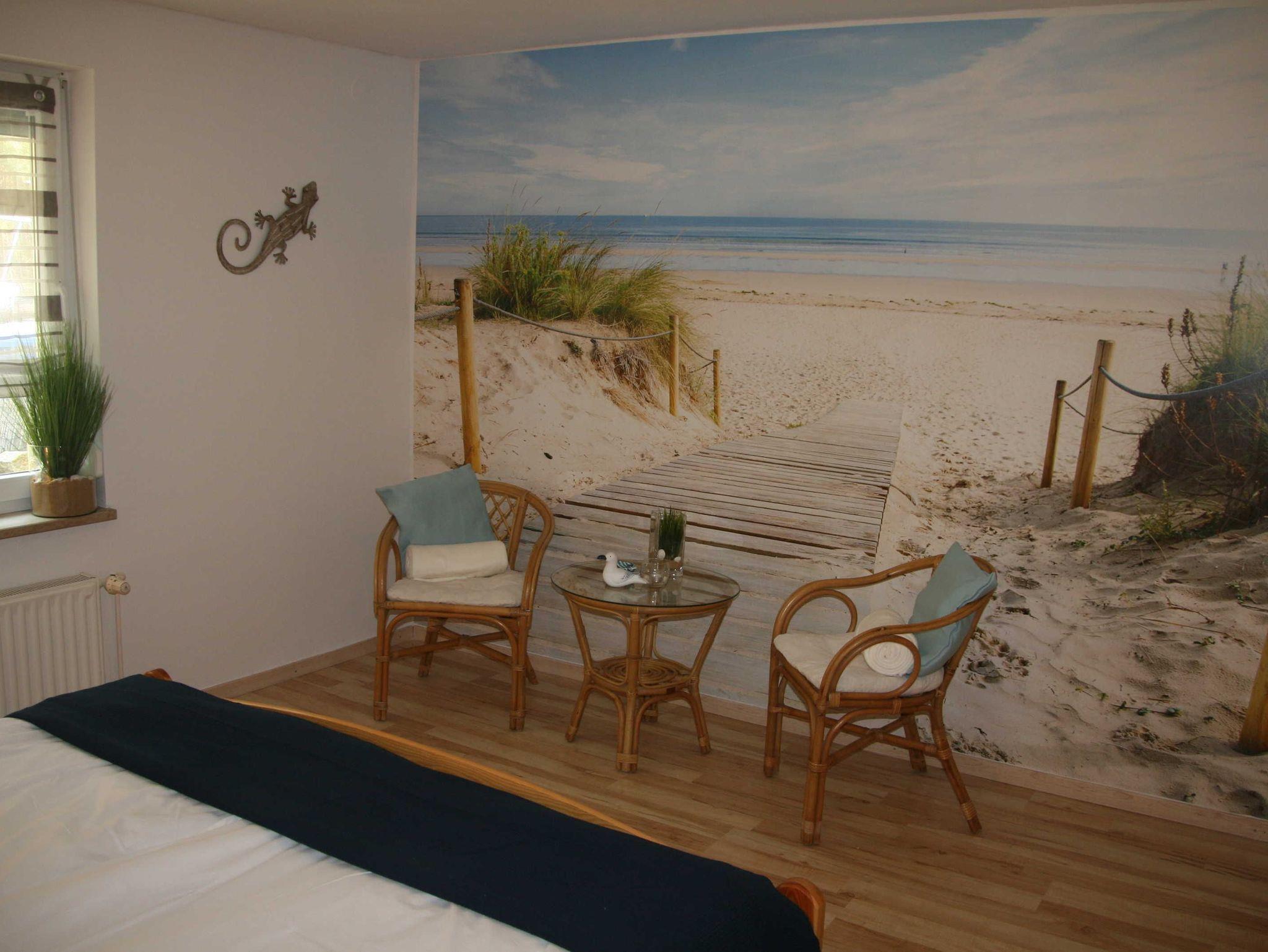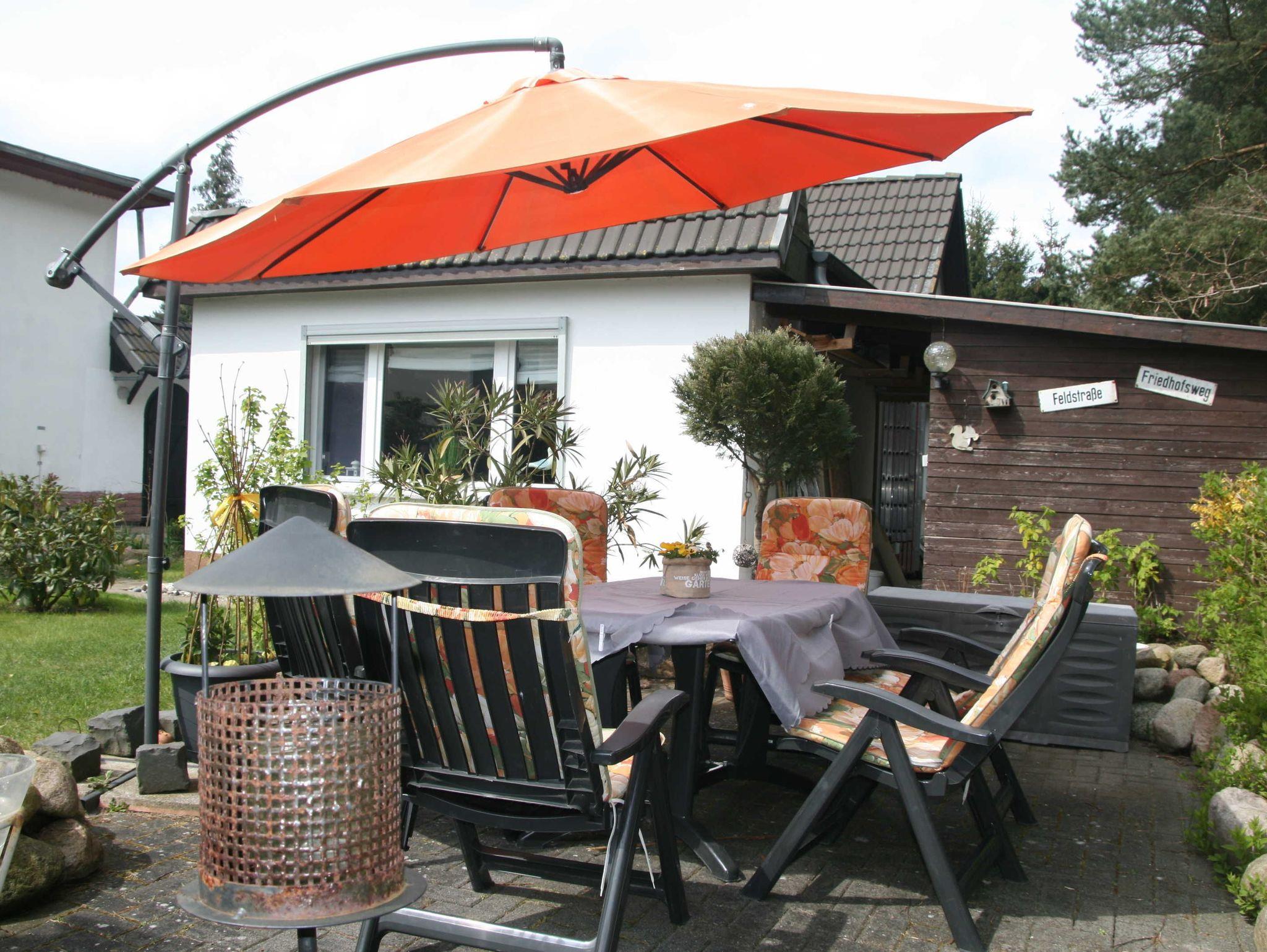 Unterkunft: 2- Raum- Ferienhaus im Garten eines gepflegten Einfamilienhaus auf 750m² komplett umzäunten Grundstück direkt am Waldrand. Ebenerdig, stufen- und schwellenlos, Laminat- und Fliesenböden. Türbreite 86 cm, Bad 68 cm, Rampe im Eingang. Freundlich und hell eingerichtet mit Naturholzmöbeln und maritimen Accessoires. 1 Schlafraum, 1 Wohn/Schlafraum plus Wohnküche. Sonnige, windgeschützte Gartenterrasse mit Gartenmöbeln und Kamingrill. Ruhige Wohnsiedlung (Sackgasse, nur Anliegerverkehr).