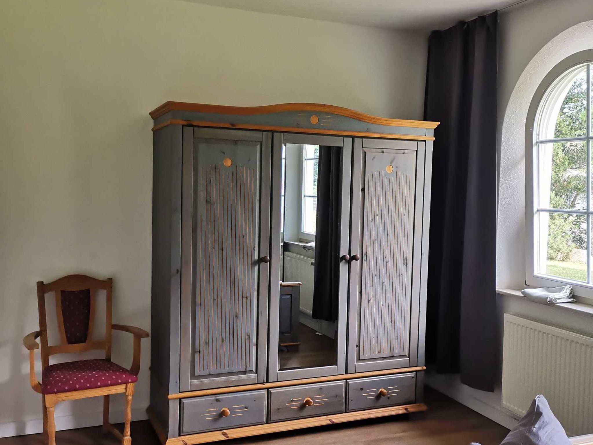 (mit getrennten Matratzen) in der Größe 1,80 x 2,00m, Nachttischen, sowie einem geräumigen Kleiderschrank