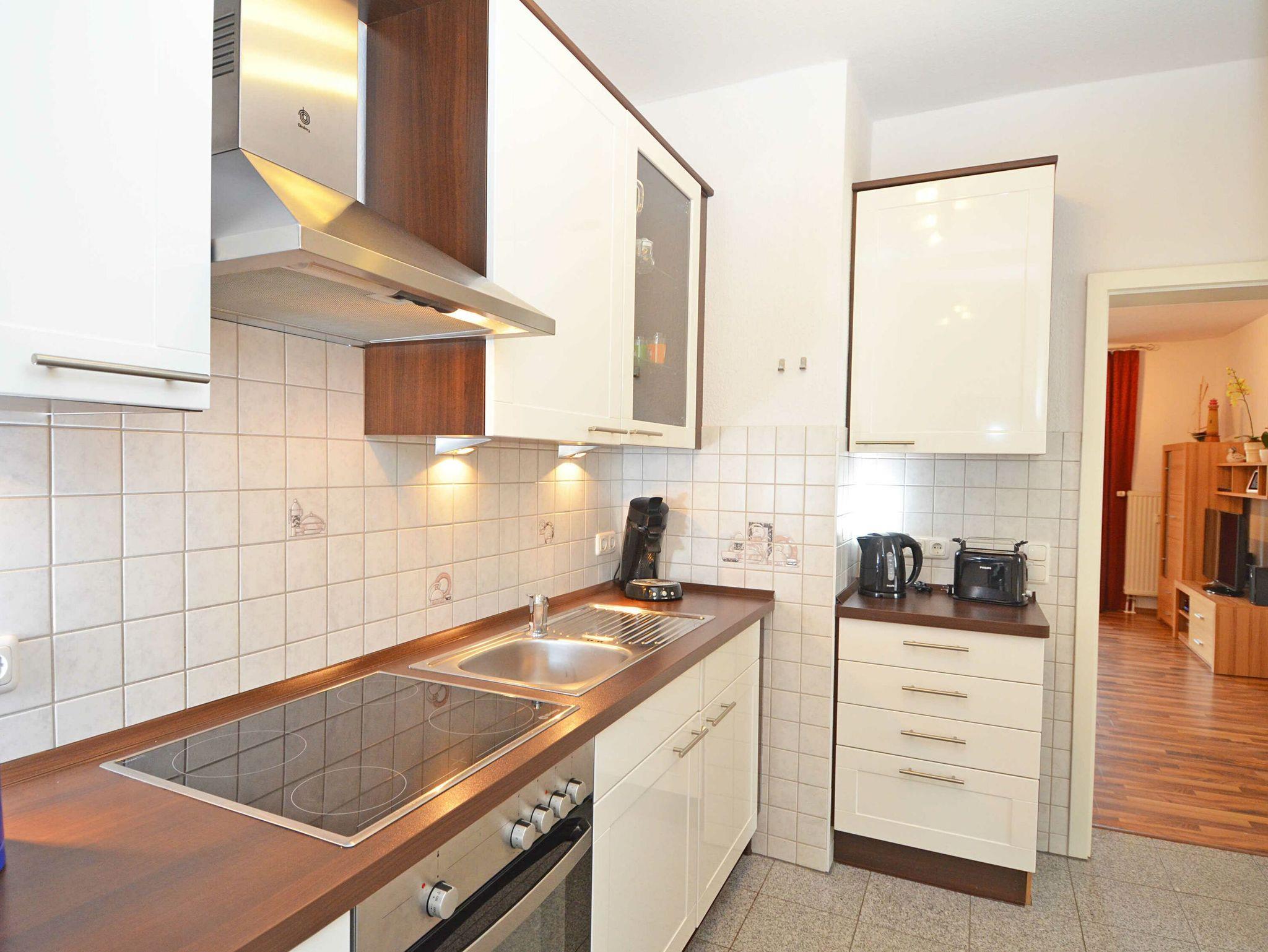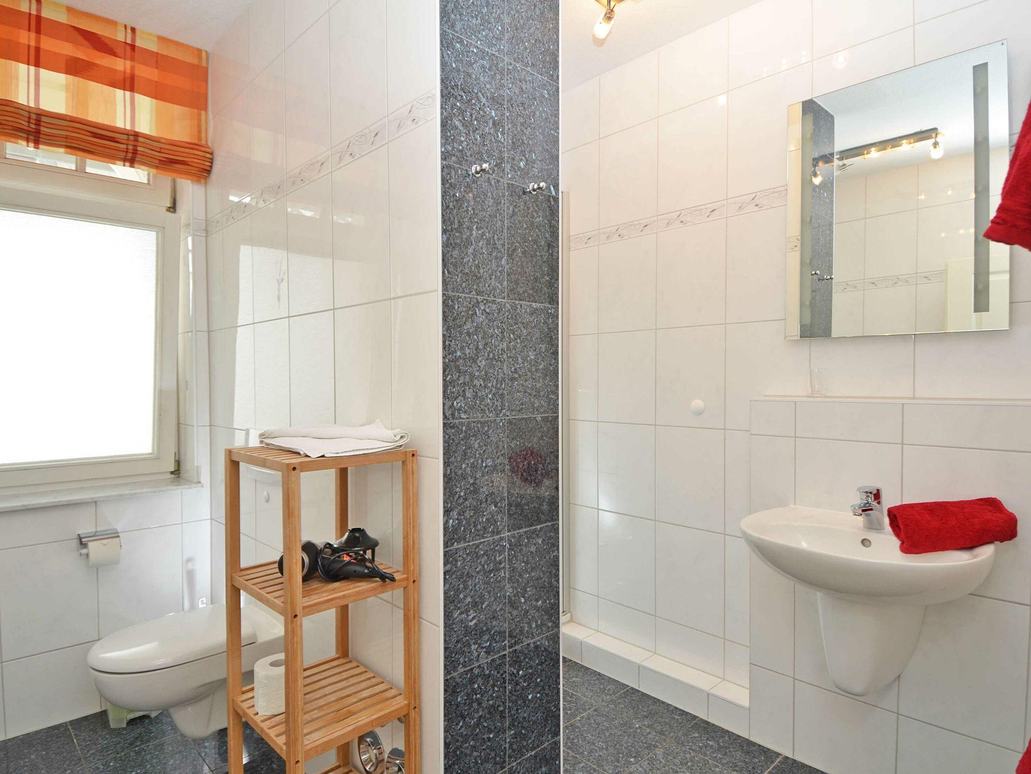 In dem modernen Tageslichtduschbad finden Sie neben einer großzügigen Dusche mit Glastür auch einen Handtuchwärmer und einen Haartrockner. Die gesamte Nichtraucherwohnung ist mit Bodenfliesen und Laminat ausgestattet.