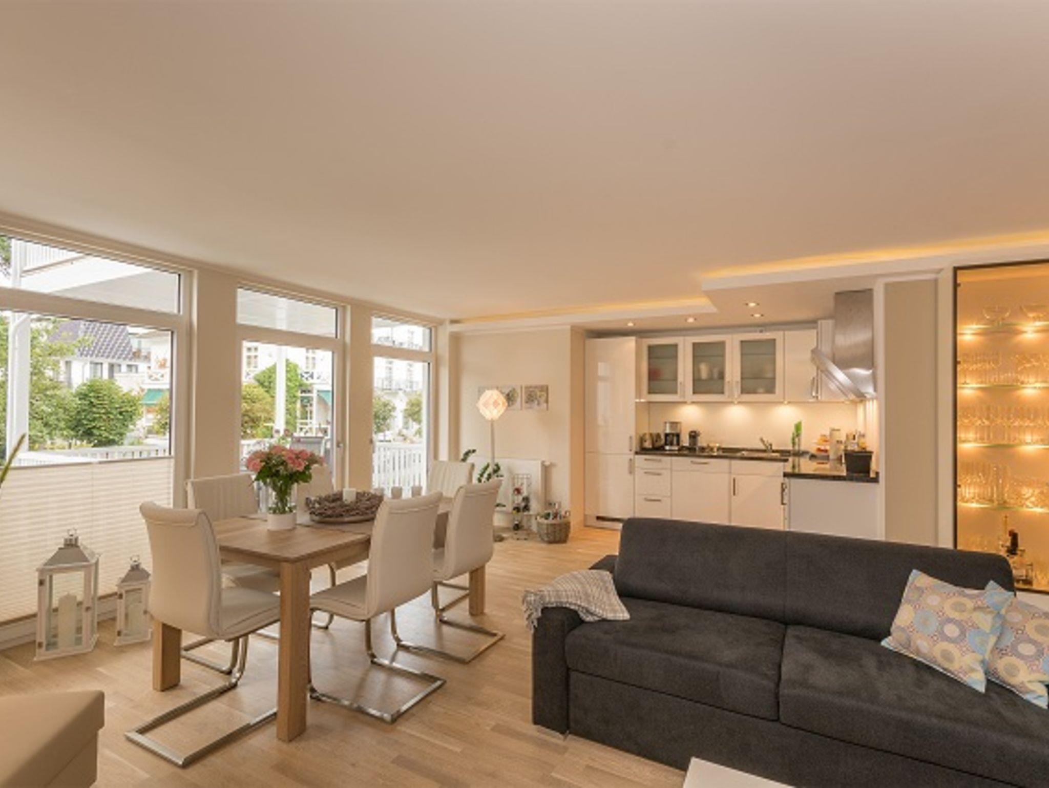 Die neue Villa Allegra im Herzen des Ostseebades Binz bietet Ihnen sehr moderne und elegant eingerichteten Zwei- und Dreiraumappartements. Die Größe der Ferienwohnungen variiert zwischen 39 und 110 m². Alle Wohnungen haben einen großzügien und hellen Wohnraum mit integrierter offener Küche. Das komfortable moderne Sofa im Wohnraum kann zum Teil als Schlafgelegenheit genutzt werden. In den separate, schön gestalteten Schlafzimmer/Schlafzimmern befinden sich ein z.T. Boxspringbetten mit Nachtkonsolen, die Fenster sind mit Verdunkelungsplissees und/ oder Verdunkelungsgardinen versehen. Die Bäder sind hochwertig mit Marmor, modern und sehr elegant ausgestattet. Jede Wohnung ist mit dem Lift erreichbar.