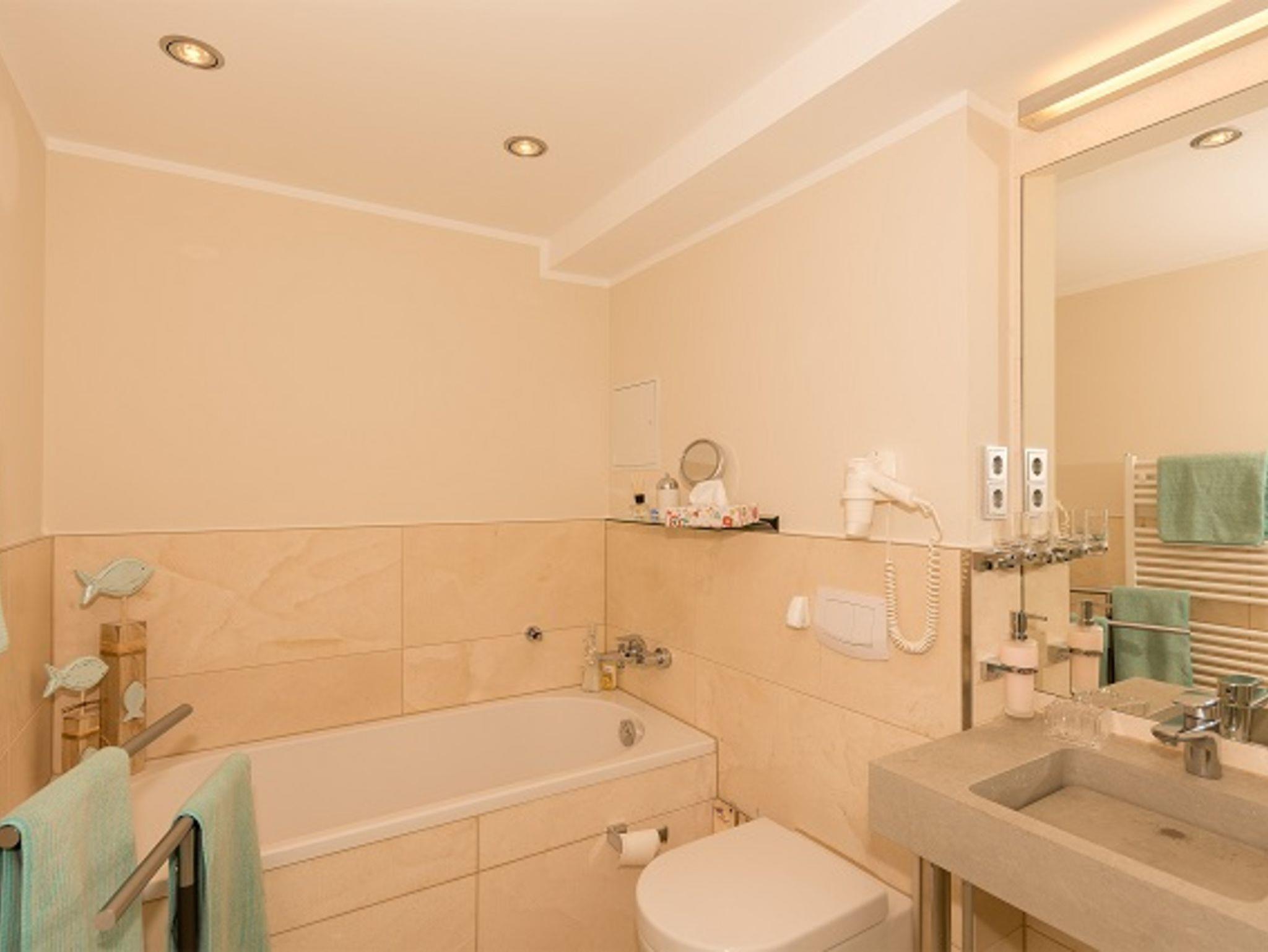 integriertem Fön und WC, sowie im großen Bad mit Badewanne.