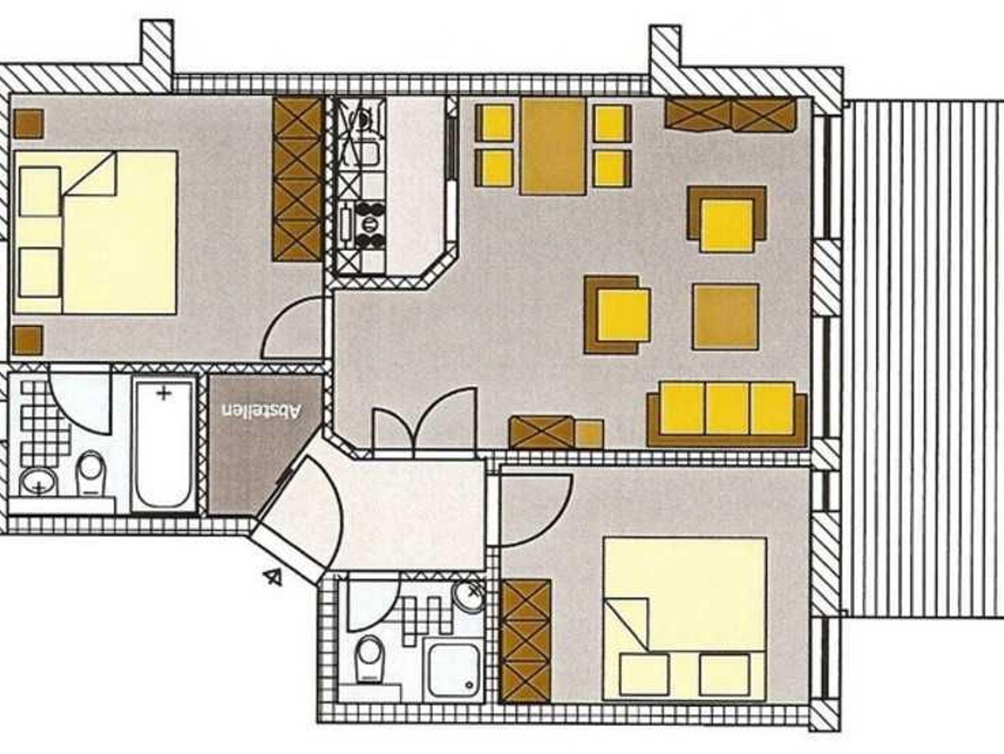 Das App. verfügt über 2 Schlafzimmer (je 1 Doppelbett 1,60 m x 2,00 m), 2 Bäder (einmal Wanne/WC und einmal DU/WC) und einen großen Wohn-/Essbereich mit integrierter Küche. Die 3 Fernseher (im Wohnbereich und in den 2 Schlafzimmern) sind internetfähig. Es gibt eine schick möblierte Terrasse.