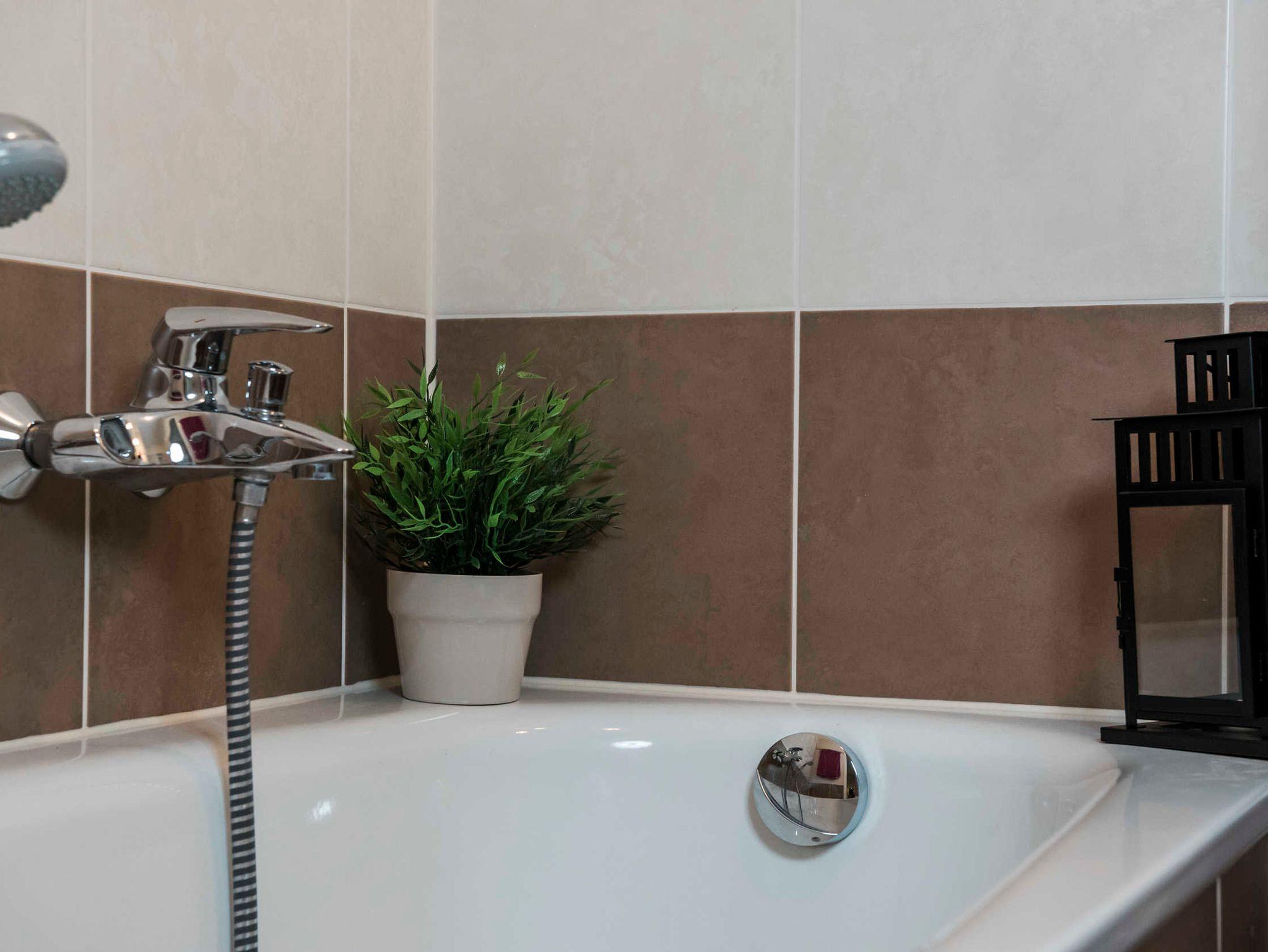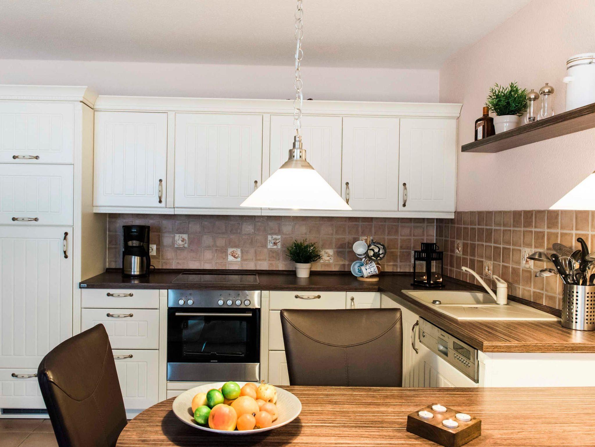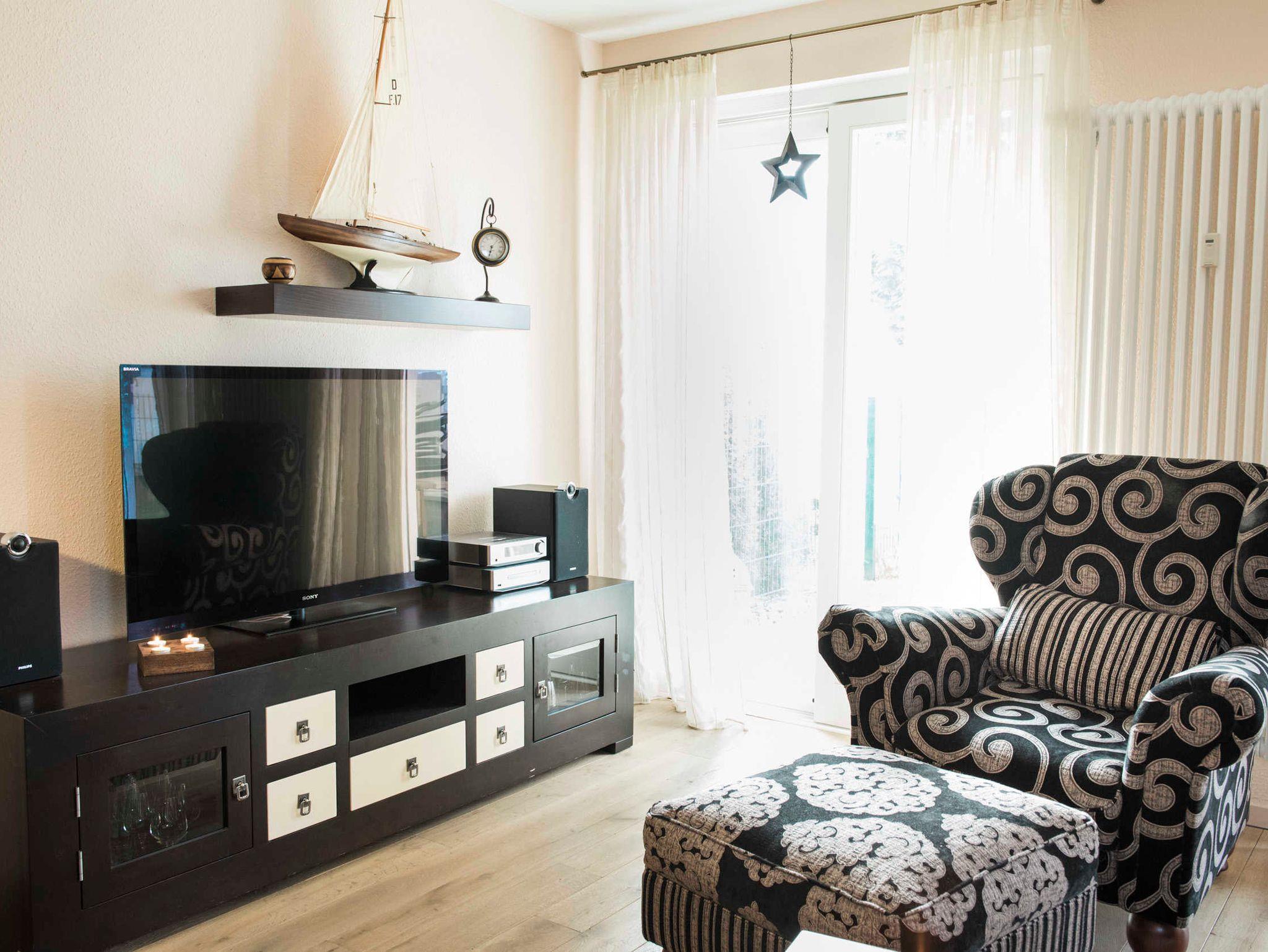 Das stilvolle Erdgeschoss-Appartement verfügt über zwei Schlafzimmer mit je einem Doppelbett (Maße jeweils 1,60 m x 2,00 m), zwei Bäder (einmal Wanne/WC und einmal DU/WC), einen großen Wohn-/Essbereich mit Kabel TV, Hifi-Anlage, Radio, CD-/ DVD- und Blu-ray-Player sowie Internetanschluss - WIFI. Die offene, in den Wohnbereich integrierte Küchenzeile verfügt u.a. über Geschirrspüler, Kühlschrank, Mikrowelle, sowie viele Küchenutensilien.