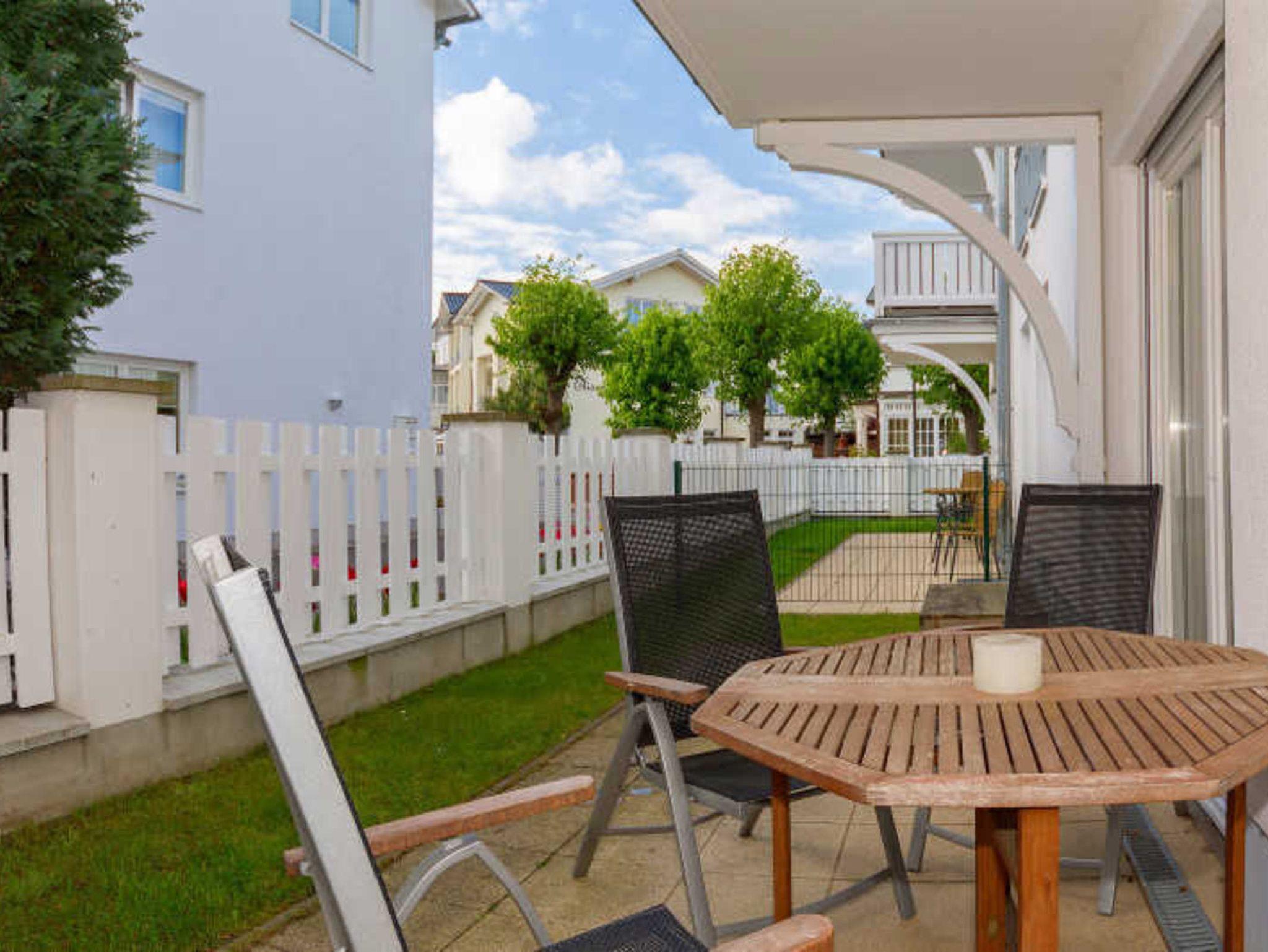 Des Weiteren gibt es eine schick möblierte Terrasse, auf der der Gast seine Urlaubszeit genießen kann.