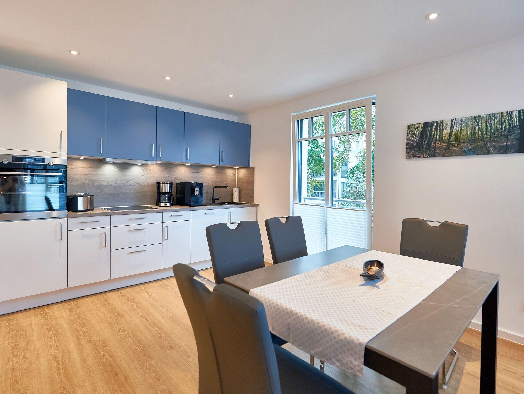 Speisen können Sie wahlweise am großen Esstisch im Wohnbereich oder draußen auf dem Balkon in der frischen Ostseeluft. Wenn Sie sich stattdessen lieber in einem Restaurant oder Café verwöhnen lassen wollen, haben Sie in fußläufiger Entfernung genügend Auswahl.