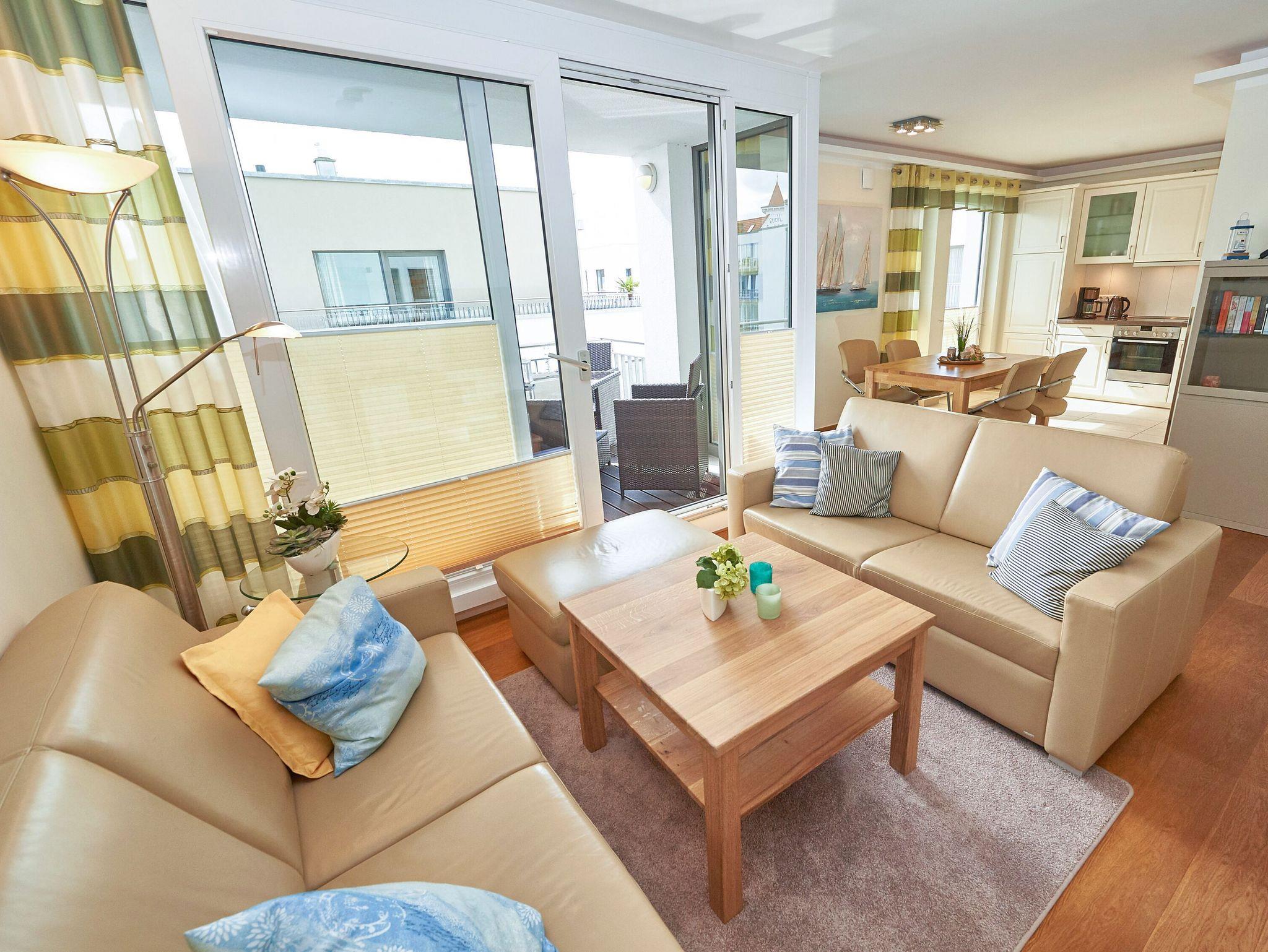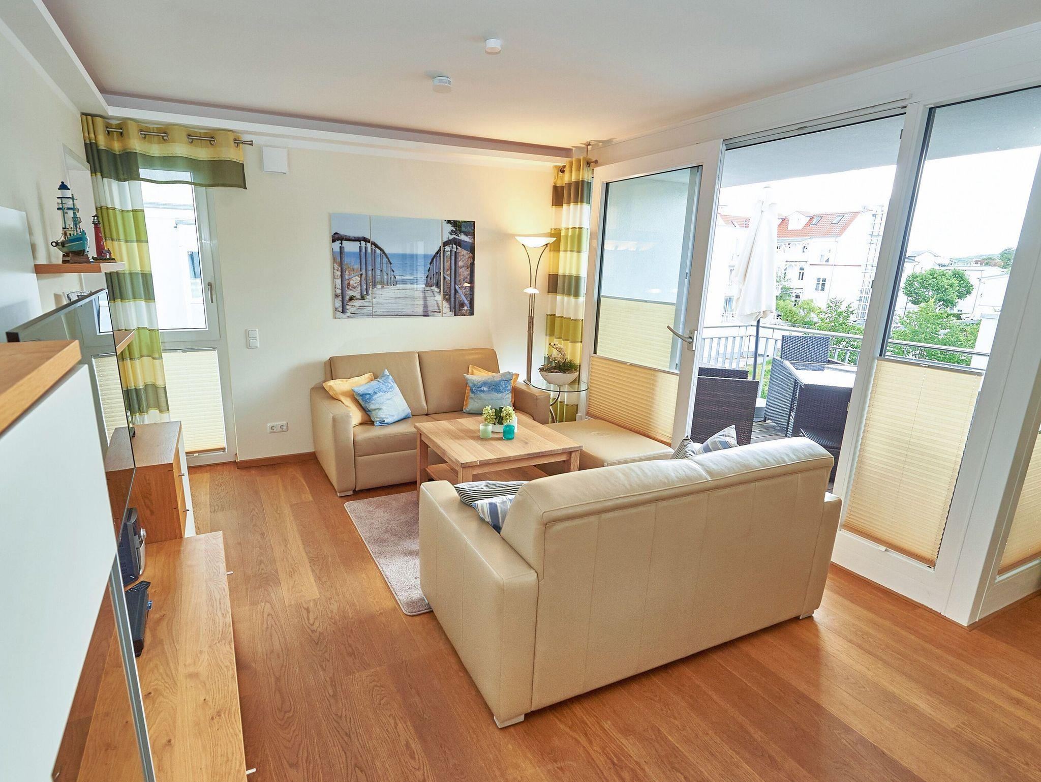 Dieses rund 68 Quadratmeter große, hochwertig und geschmackvoll eingerichtete 3-Raum-Appartement erwartet Sie im 3. Obergeschoss und ist bequem mit dem Fahrstuhl zu erreichen. Vom hell und freundlich gestalteten Wohnraum können Sie direkt auf den etwa 8 m² großen möblierten Südost-Balkon gehen und in gemütlicher Atmosphäre den Tag ausklingen lassen.