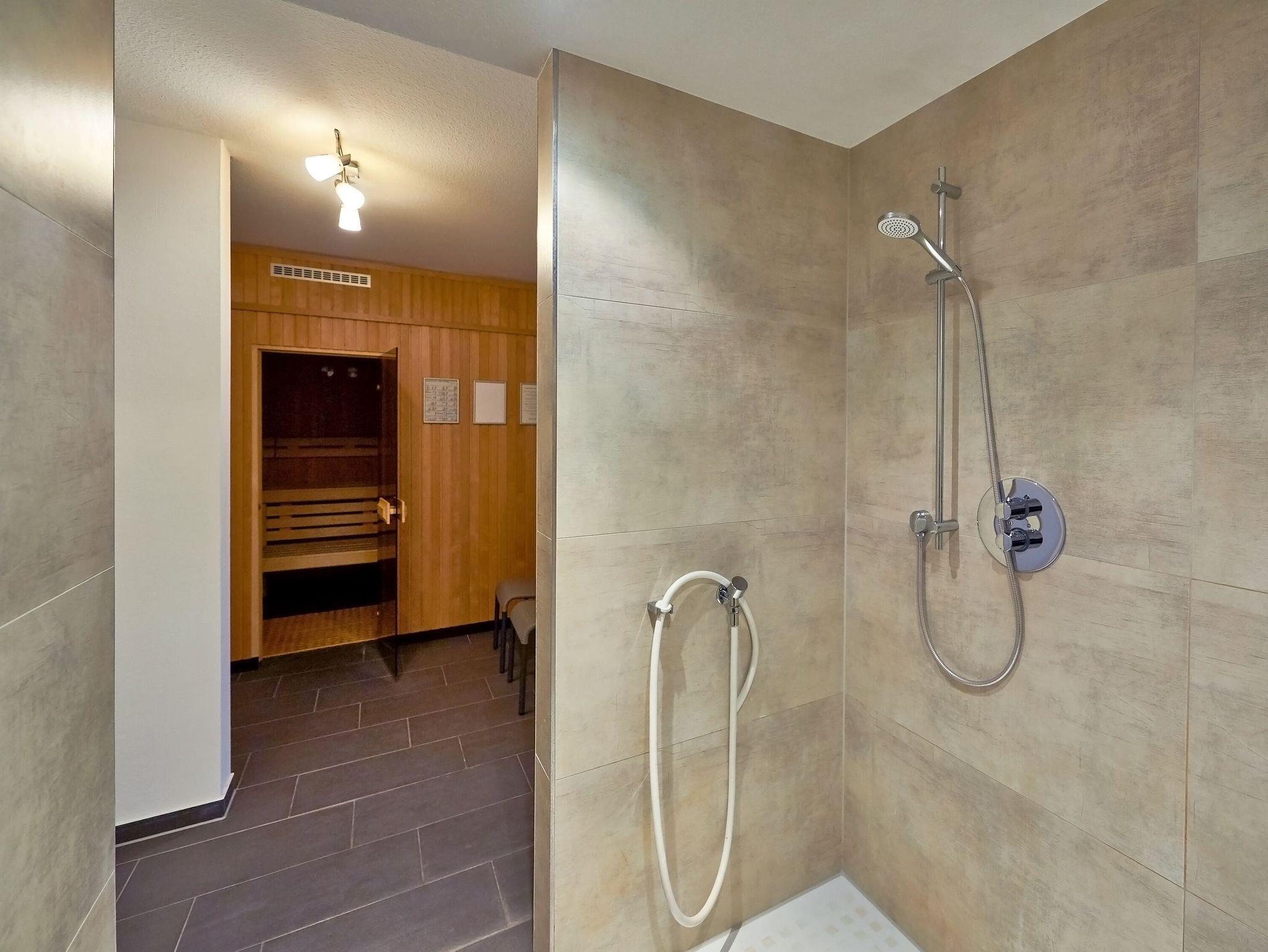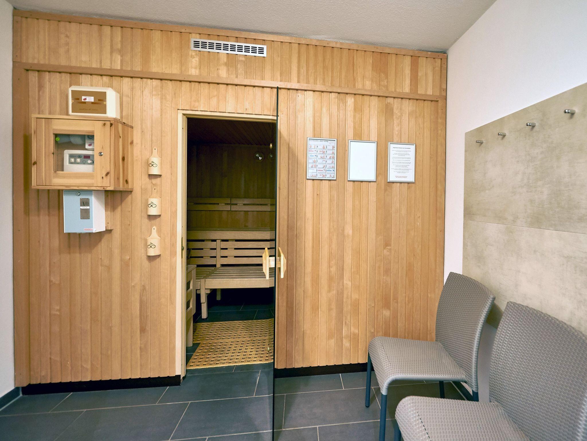 Im Erdgeschoss des Hauses befindet sich eine Sauna, die Sie kostenpflichtig nutzen können. Hier finden Sie ebenfalls Münzwaschmaschine und Münztrockner.