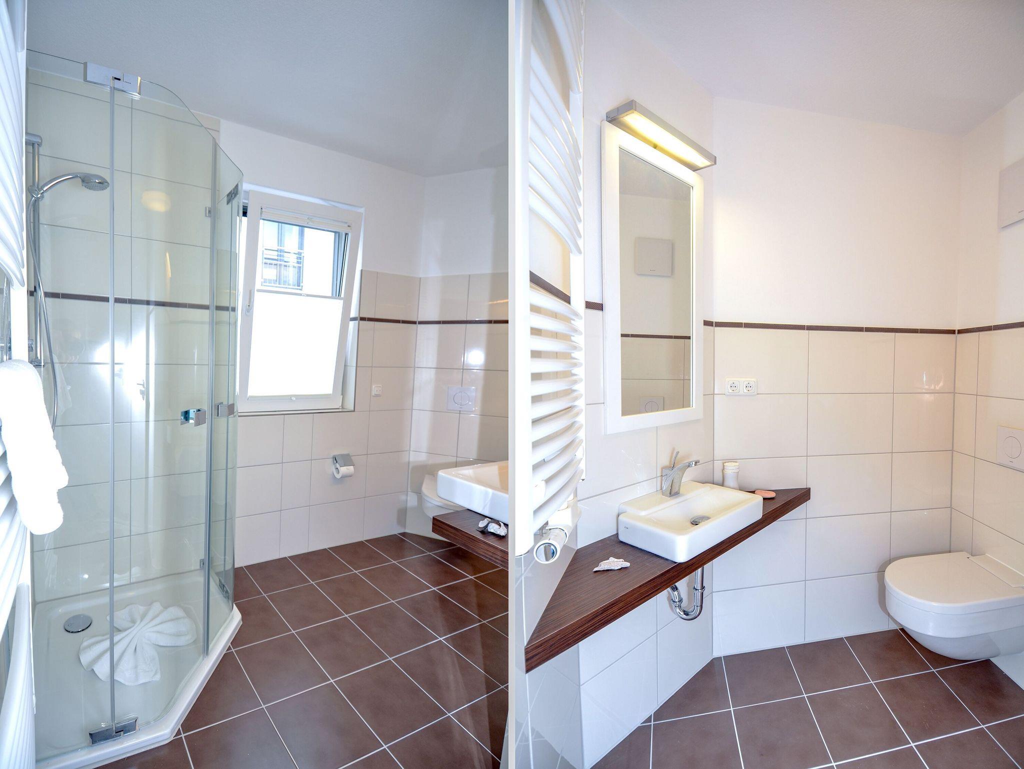 Sie haben in Ihrer Wohnung zwei exklusive Duschbäder. Beide Bäder sind mit Villeroy [&] Boch Boden- und Wandfliesen sowie mit hochwertigen Echtglasduschen ausgestattet.