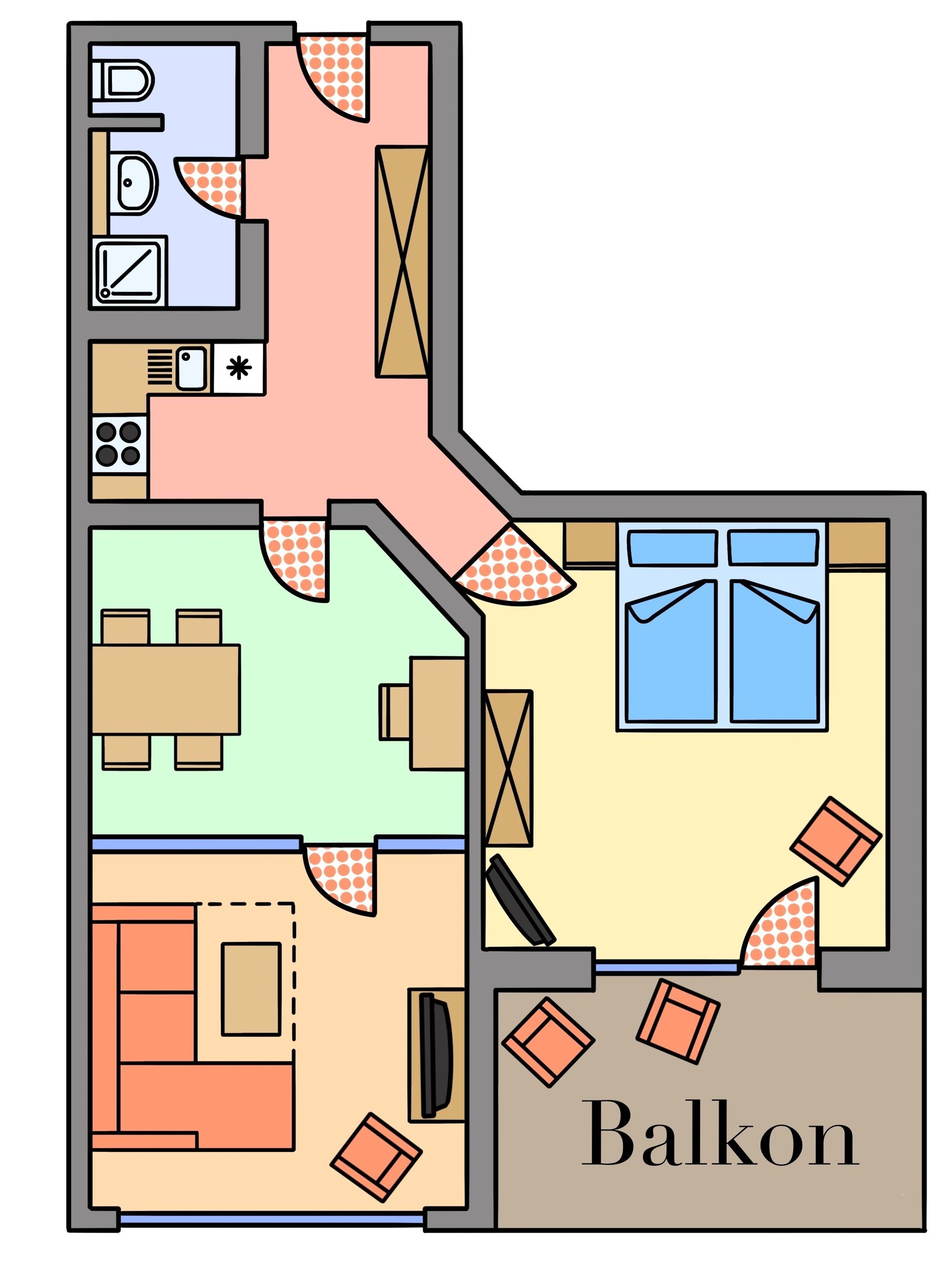 In den 45 bis 90 m² großen Ferienwohnungen bieten wir unseren Gästen hochwertig eingerichtete Wohn- und Schlafzimmer, sowie ein geräumiges Duschbad.