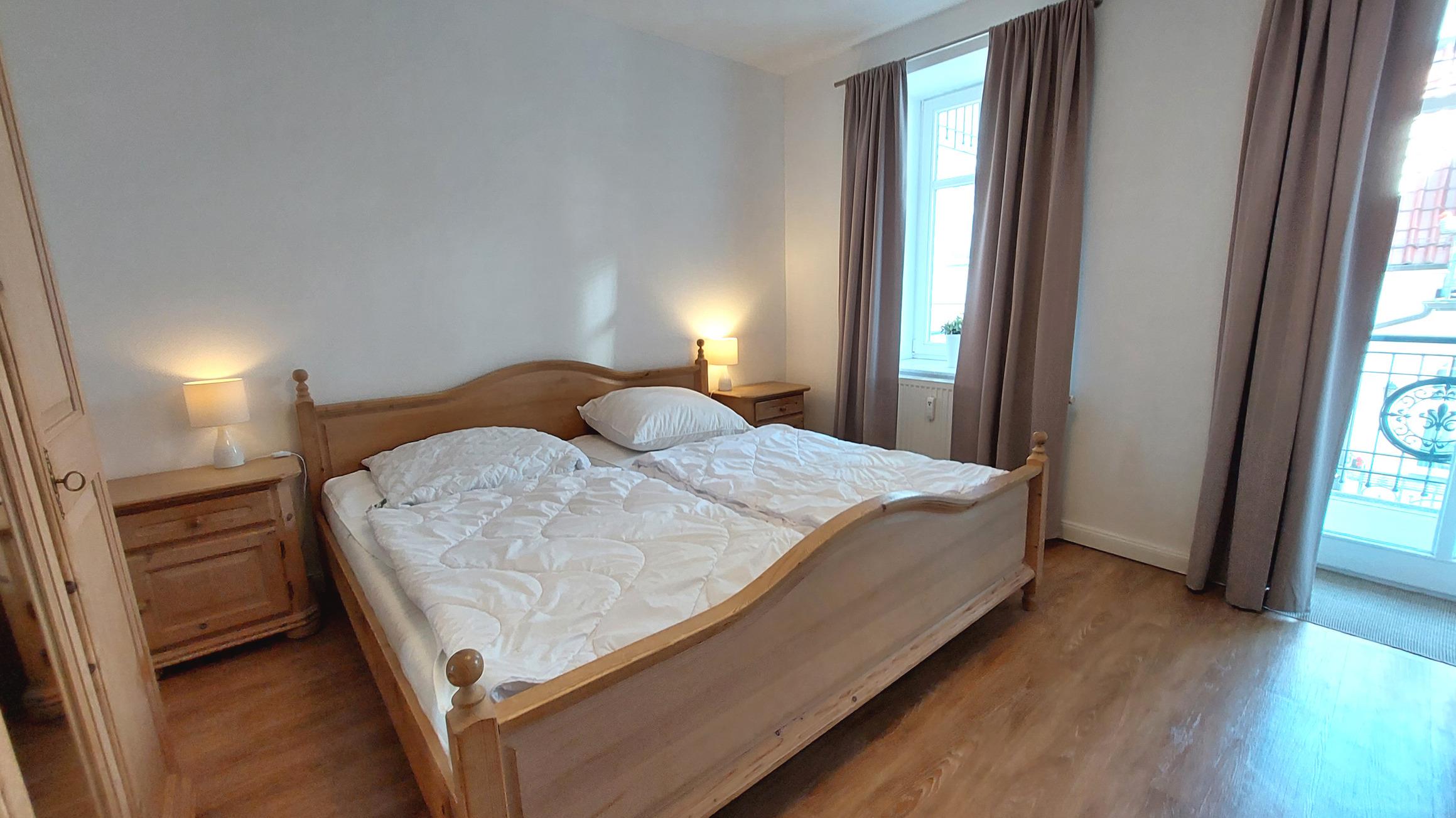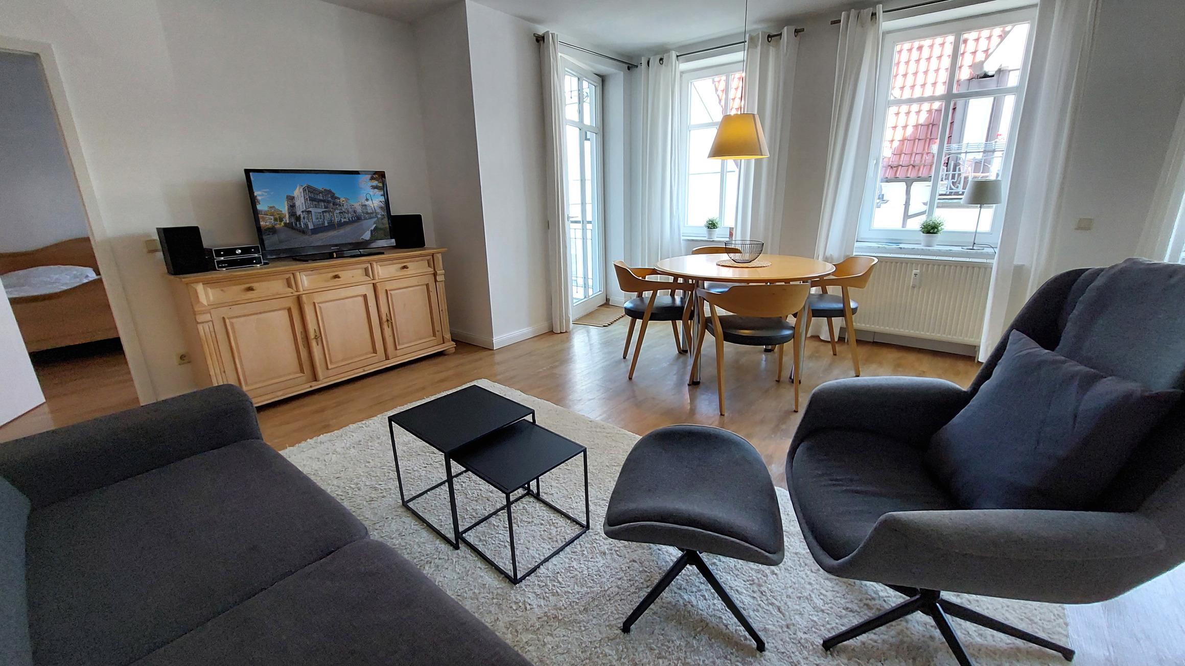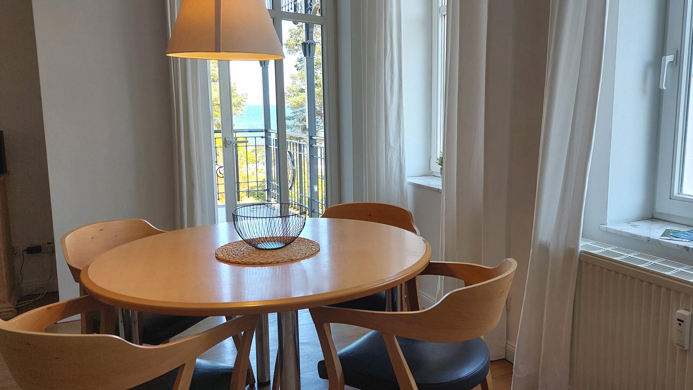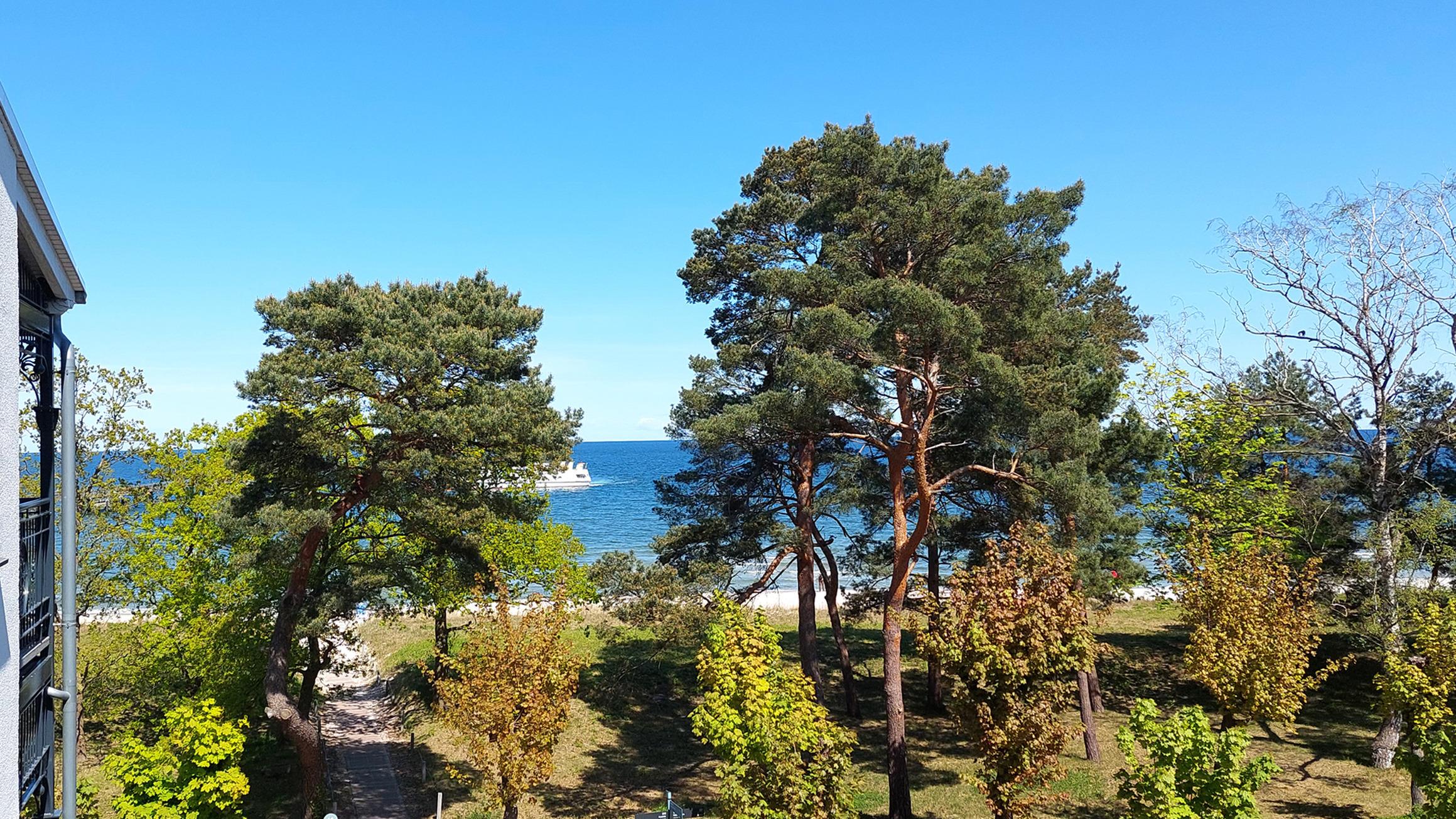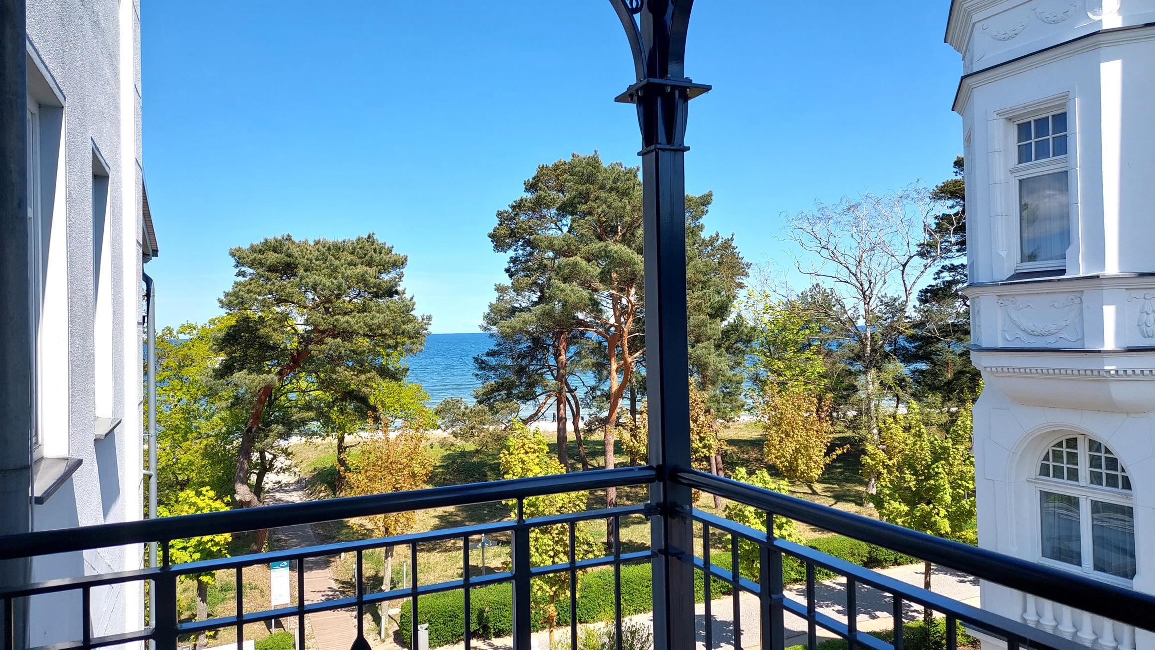 Sowohl vom Wohnbereich als auch vom Schlafzimmer gelangen Sie auf möblierten Eckbalkon, welcher wunderschönen Ausblick auf die Promenade und die Ostsee bietet.