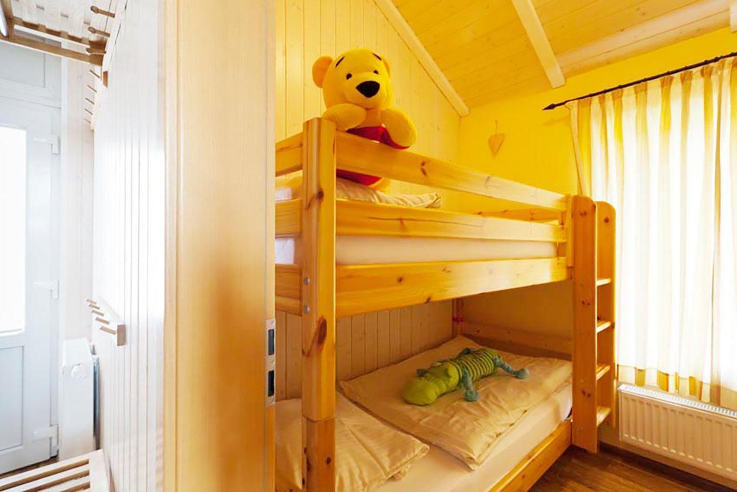 Es ist sehr luxuriös ausgestattet mit Sauna, Whirlbadewanne und Dusche im großen Badezimmer. Zudem gibt es ein separates WC. Das Elternschlafzimmer mit je einem Doppelbett, sowie das Kinderzimmer mit Etagenbett, laden zum gemütlichen Schlafen ein.