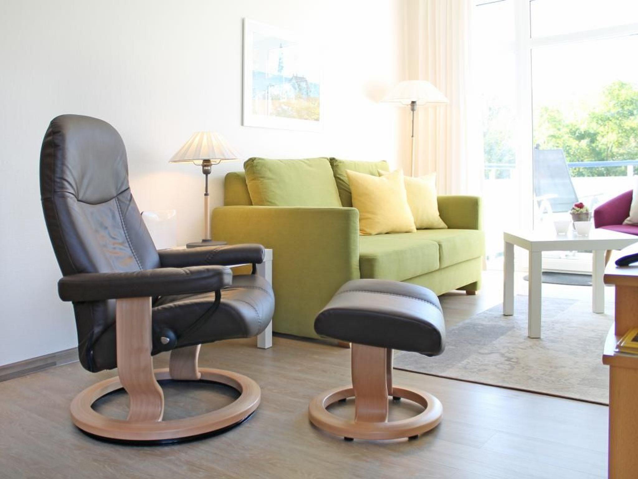 Die Residenz Haffblick ist eine zentral, dennoch ruhig gelegene Appartementanlage bestehend aus vier Häusern mit jeweils 17 Wohneinheiten. In nur 200 Meter befindet sich der Ostseestrand. Das Ortszentrum ist in wenigen Schritten erreicht. Die beliebte Ferienanlage liegt gleichzeitig nah zum Naturschutzgebiet an den Haffwiesen auch nah dem Tarnewitzer Urwald. Ganzjährig bietet der hauseigene Wellnessbereich Sauna sowie Infrarot-Wärmekabinen gegen Gebühr. Ein Fitnessraum steht kostenfrei zur Verfügung. Ebenfalls kostenlos sind WLAN sowie Sky Programme Fußball Bundesliga -Sport- Cinema- Disney. Jeder der Wohneinheiten ist individuell ausgestattet, komfortabel möbliert und verfügt über Terrasse oder Balkon, teilweise zwei Balkone. Zudem gibt es auf dem Grundstück Pavillons mit Blick auf die Pferdewiesen. In jedem der Häuser befinden sich Waschmaschine und Wäschetrockner mit Münzeinwurf. Zugehörig ist ein PKW -Außenstellplatz pro Ferienwohnung. Teilweise sind Haustiere gestattet. Gäste der Residenz Haffblick verbringen einen entspannten Aufenthalt und genießen gleichzeitig die nahe Lage zu vielen Annehmlichkeiten des Ostseebades. Restaurants sowie Cafe´s und Geschäfte sind in Kürze erreicht. Die hier beschriebene, mit 3 Sternen klassifizierte 2-Zimmer-Ferienwohnung Haffblick 9 mit Balkon, liegt im 1. Obergeschoss und bietet eine Wohnfläche von 50qm. Mit maximal 2 Personen ist eine Belegung möglich. Die schick möblierte Wohnung mit Wohn-/Essbereich und integrierter Wohnküche verspricht einen erholsamen Urlaub. Ein separates Schlafzimmer mit Doppelbett und Kleiderschrank ist vorhanden. Ein modernes Duschbad gehört zur Ausstattung. Es handelt sich um ein für Allergiker geeignetes Nichtraucher Appartement. Haustiere sind nicht gestattet.