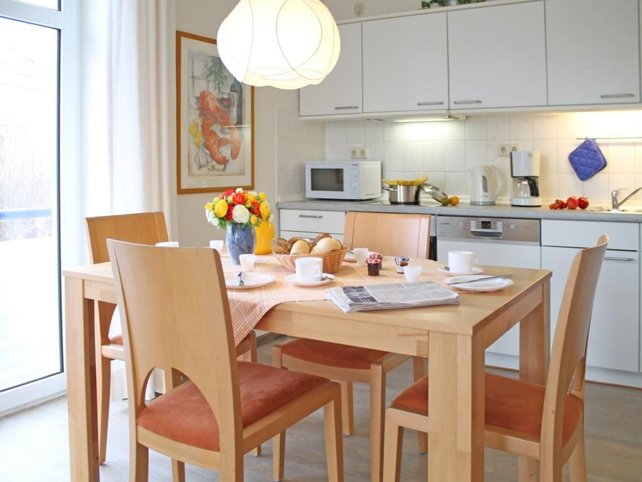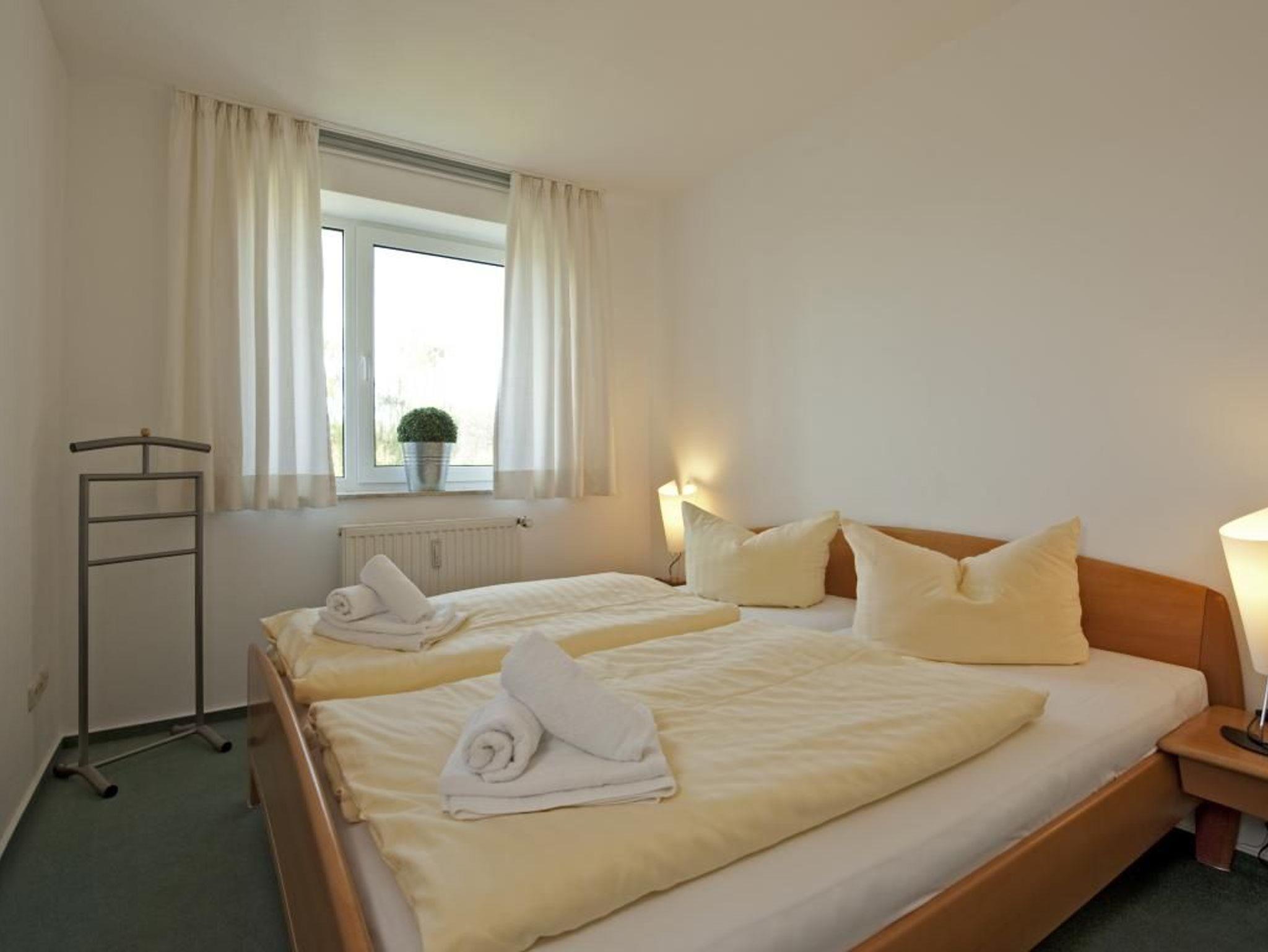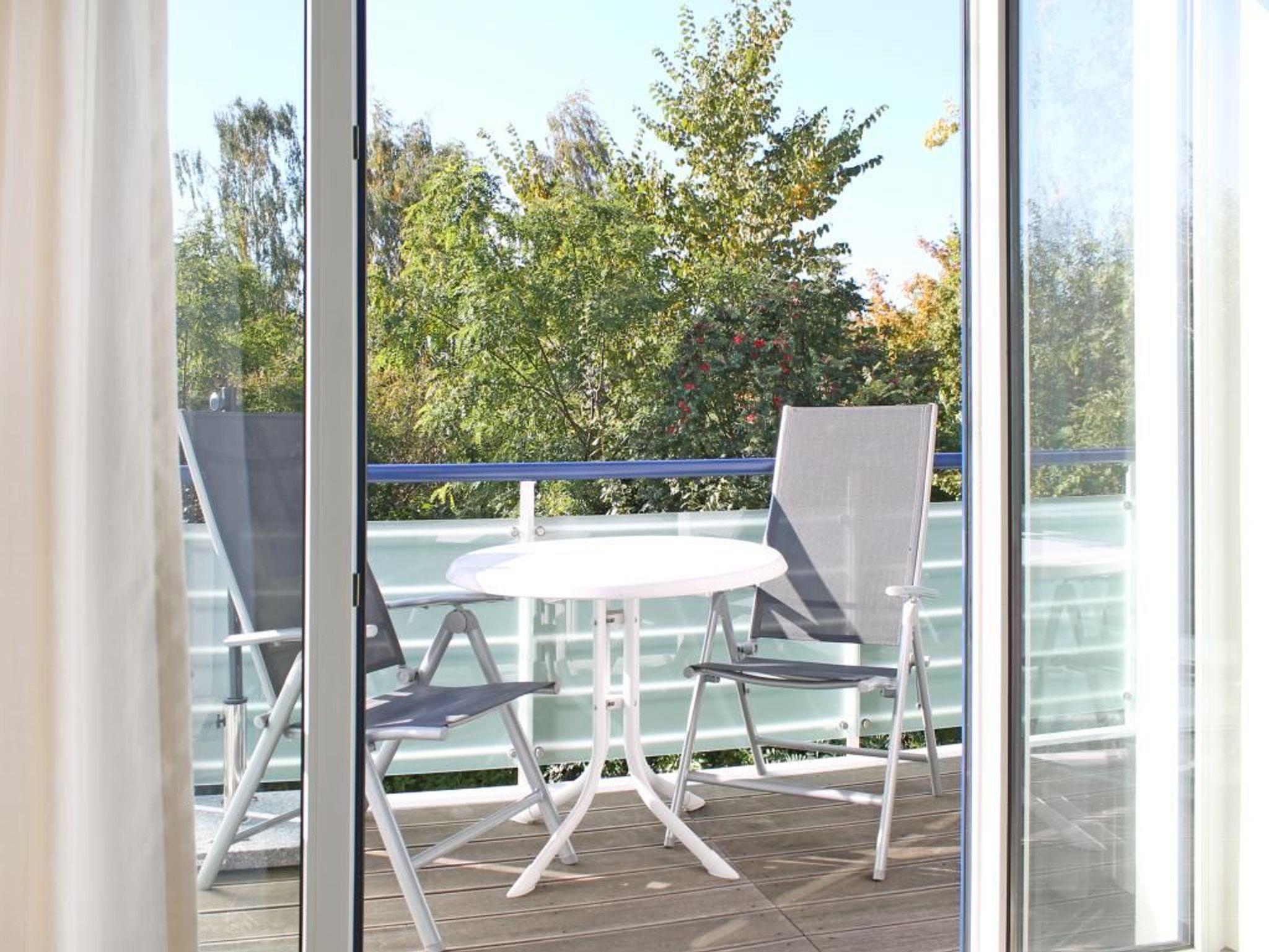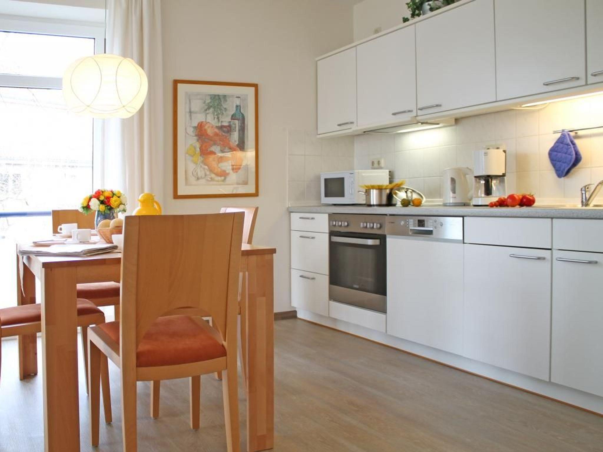 Die 2-Zimmer-Ferienwohnung mit Balkon, bietet auch Allergikern einen entspannten Aufenthalt und befindet sich in der 1. Etage des Hauses. Es empfängt Sie ein modernes Appartement mit einer Wohnfläche von 50qm, in dem Sie mit 2 Personen Ihren Ostseeurlaub verbringen können. Der saisonal möblierte Balkon ist umlaufend und lädt zum Sonnenbad ein. Im Wohn-/Essbereich mit bequemer Sitzgarnitur und Relax-Sessel, befindet sich auch eine offene Wohnküchenzeile, in der Herd, Backofen, Mikrowelle, Spülmaschine ebenso vorhanden sind, wie Toaster, Wasserkocher und Kaffeemaschine usw. Für technische Unterhaltung sorgen ein Fernseher mit SKY Progarammen, DVD-Player, Musikanlage sowie ein gebührenfreier Internetzugang über WLAN. Ihre Nächte verbringen Sie in einem separaten Schlafzimmer mit Doppelbett und Kleiderschrank. Die Wohneinheit besitzt ein innenliegendes Duschbad. Allen Hausgästen stehen Waschmaschine und Wäschetrockner gegen Münzeinwurf zur Verfügung. Für Ihren PKW ist ein kostenfreier Außenstellplatz am Haus reserviert. Da das Ferienappartement für Allergiker geeignet ist, darf in der Wohnung nicht geraucht werden. Auch Haustiere sind nicht erlaubt. Optional sind Bettwäsche sowie Handtücher gegen Gebühr zu buchbar. Für das beziehen der Betten wird eine gesonderte Gebühr erhoben.